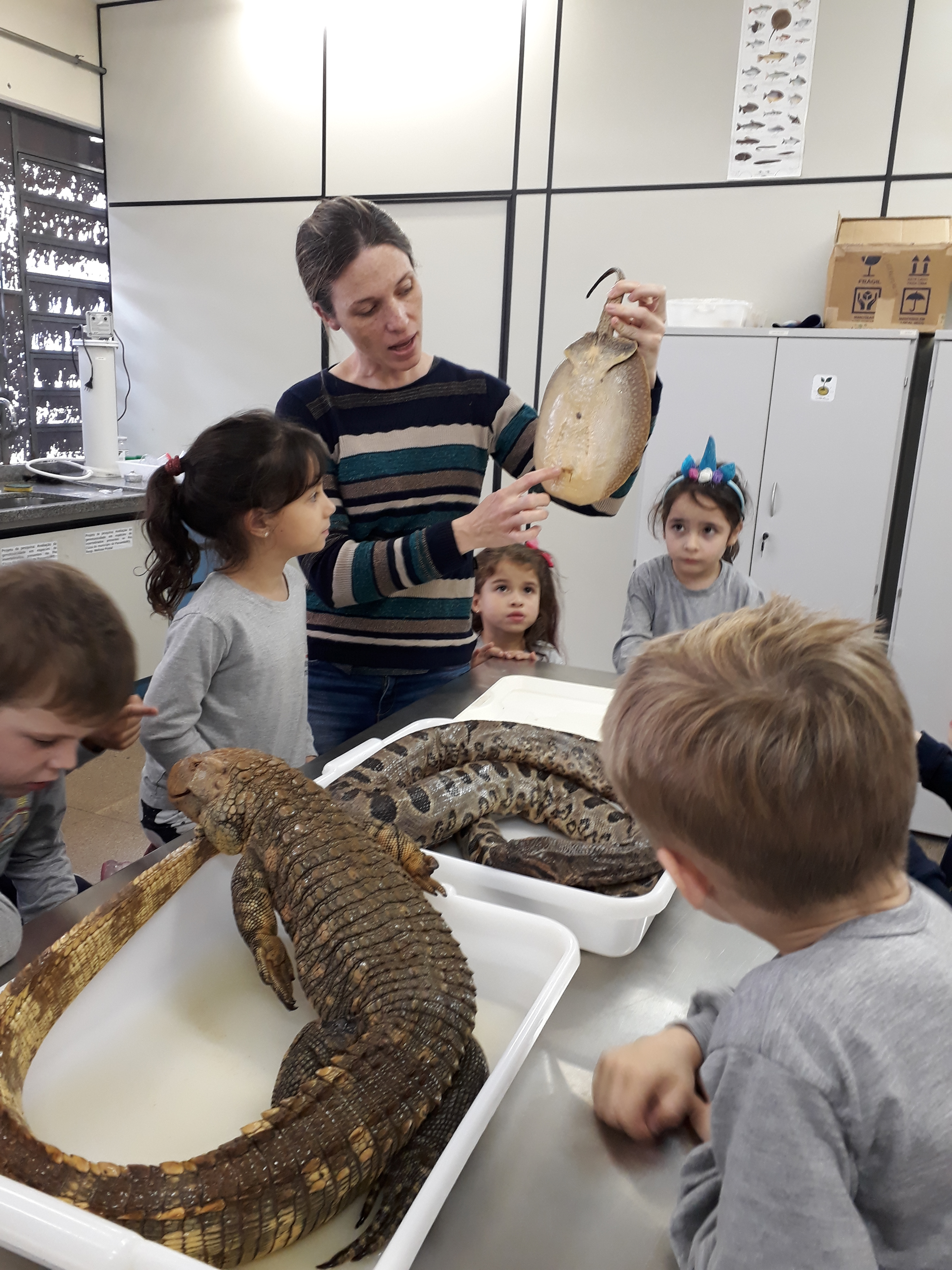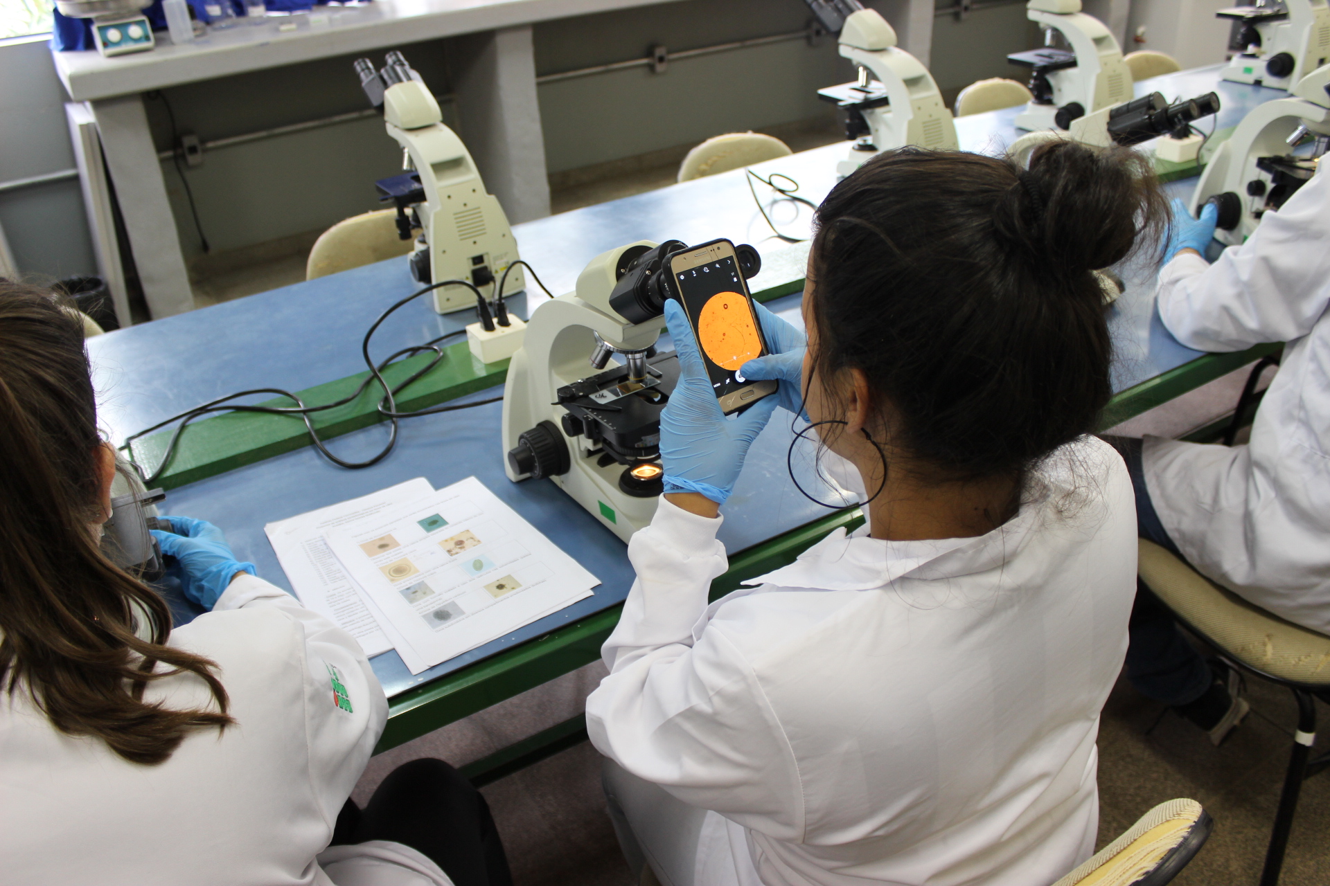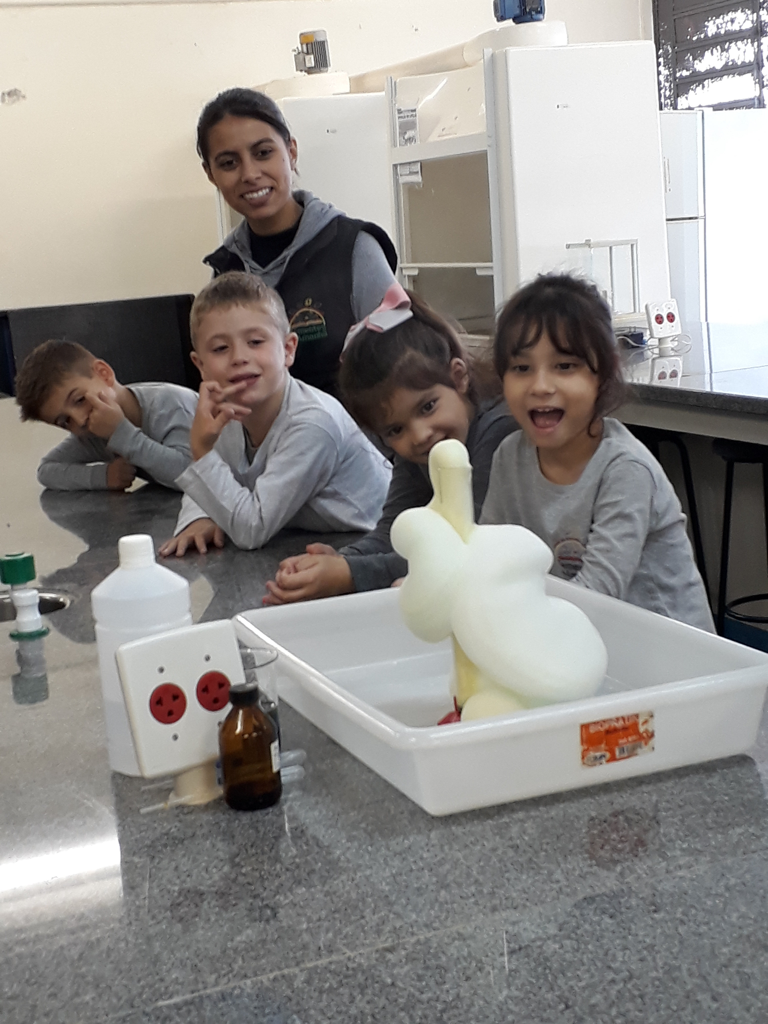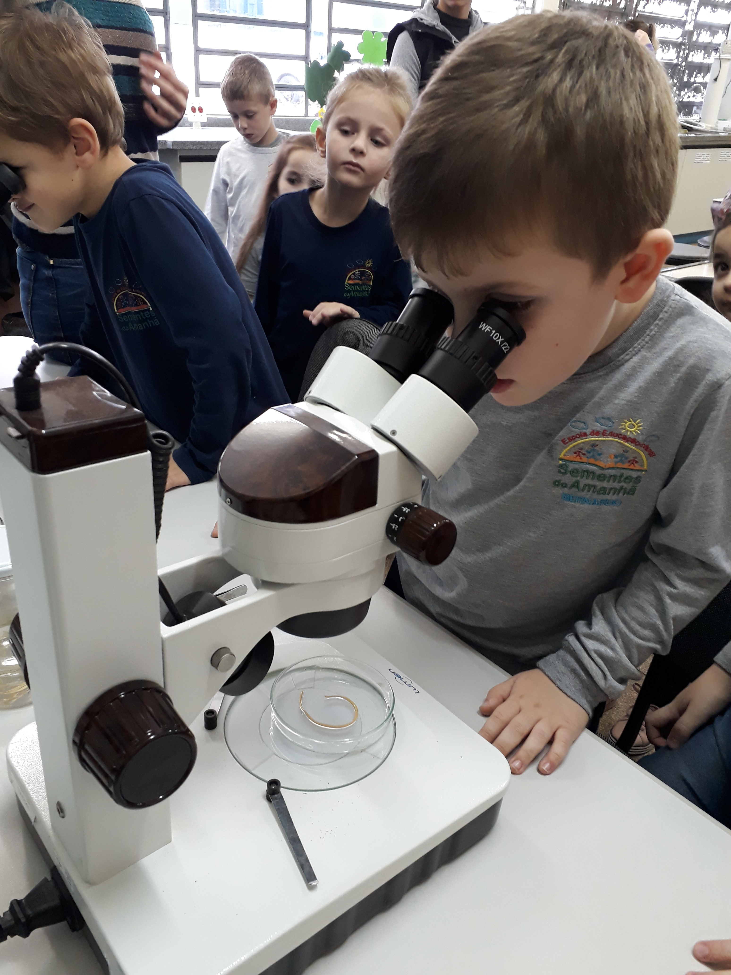 “Como o projeto também fala de higiene, fizemos cultura de bactérias das mãos, pés, maçaneta, banheiros e celulares para mostrar o crescimento das mesmas. Por meio do uso do microscópio, os/as pequenos/as puderem "enxergar as bactérias" e, com isso, ficaram com “medo”. Assim, passarão a adotar mais hábitos de higiene”, pontua Aline.