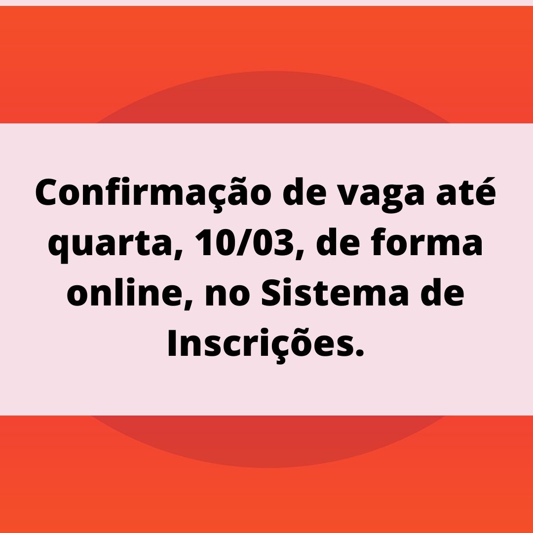 Para efetivarem sua matrícula, todos devem confirmar a vaga até 19 de março, de forma online, por meio do sistema de inscrição do processo seletivo.