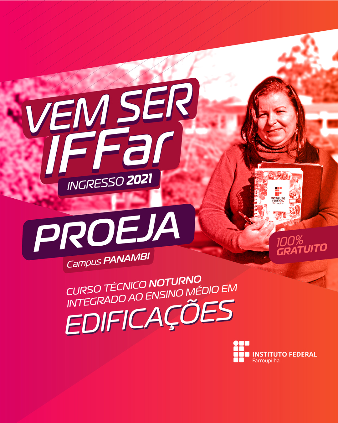 As inscrições para os Cursos Técnicos de Nível Médio na modalidade de Educação de Jovens e Adultos do IFFar estão abertas e vão até 04 de janeiro de 2022. No Campus Panambi há 35 vagas para o curso Técnico em Edificações, na modalidade Proeja (curso técnico juntamente com o Ensino Médio).