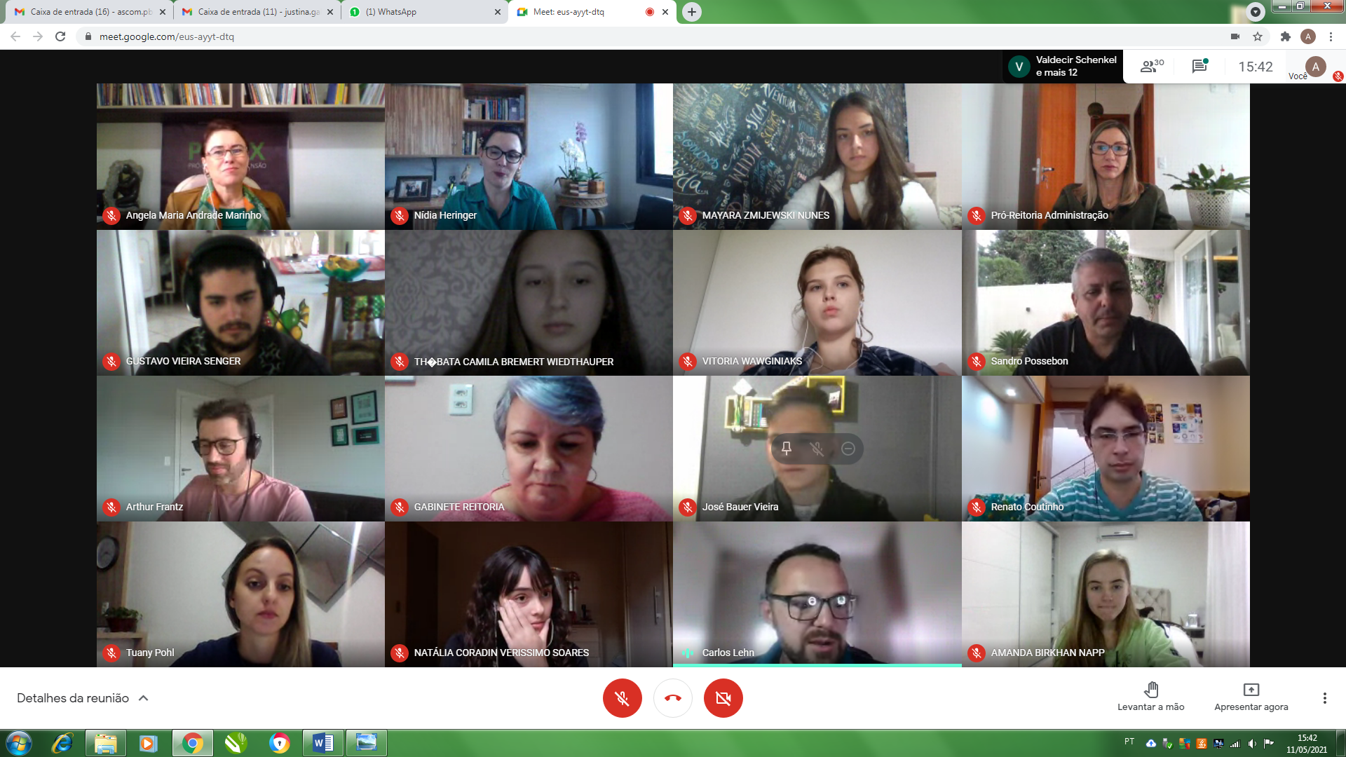 Por fim, deu-se a reunião com as lideranças estudantis e representantes do Grêmio Estudantil. As demandas dos estudantes centraram-se nas solenidades de conclusão de curso, no retorno das aulas práticas e nas datas de realização da Mostra Cultural, MEPT e outros eventos de integração institucional.