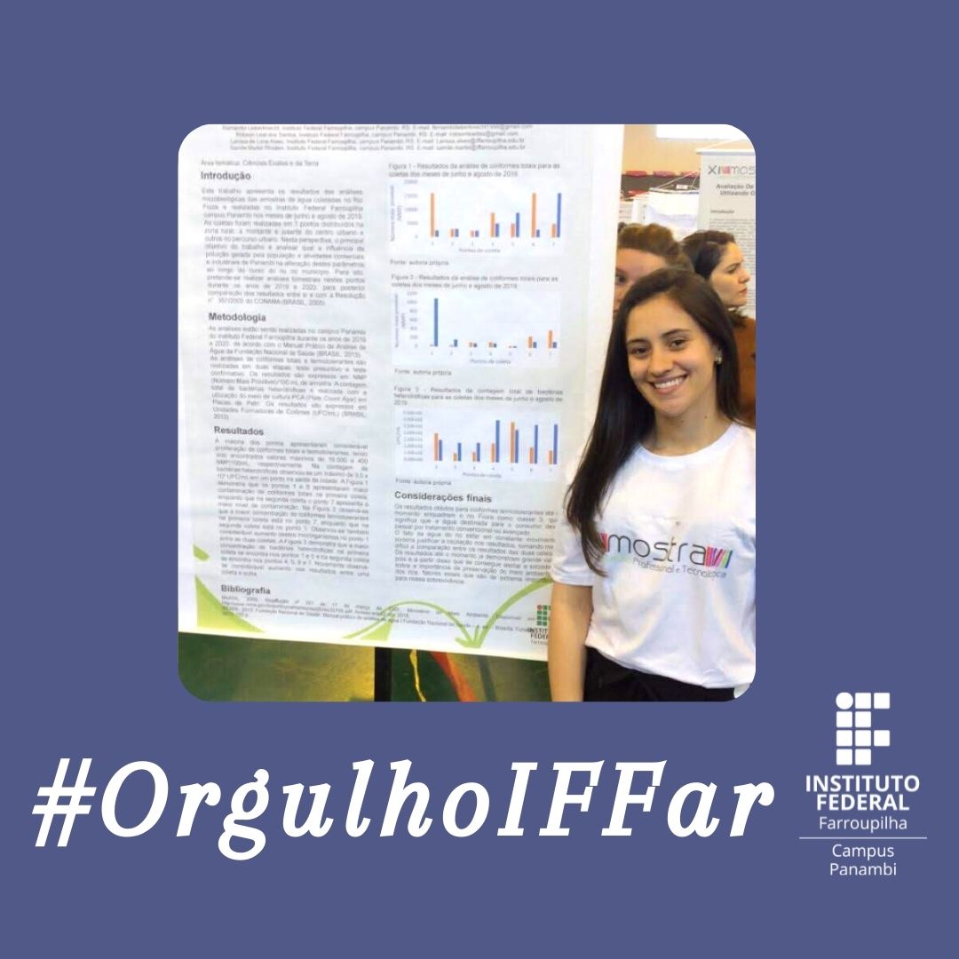 Hoje damos continuidade ao #OrgulhoIFFar trazendo um pouco da trajetória de Franciele Machado, egressa dos cursos Técnico em Química e de Licenciatura em Química.