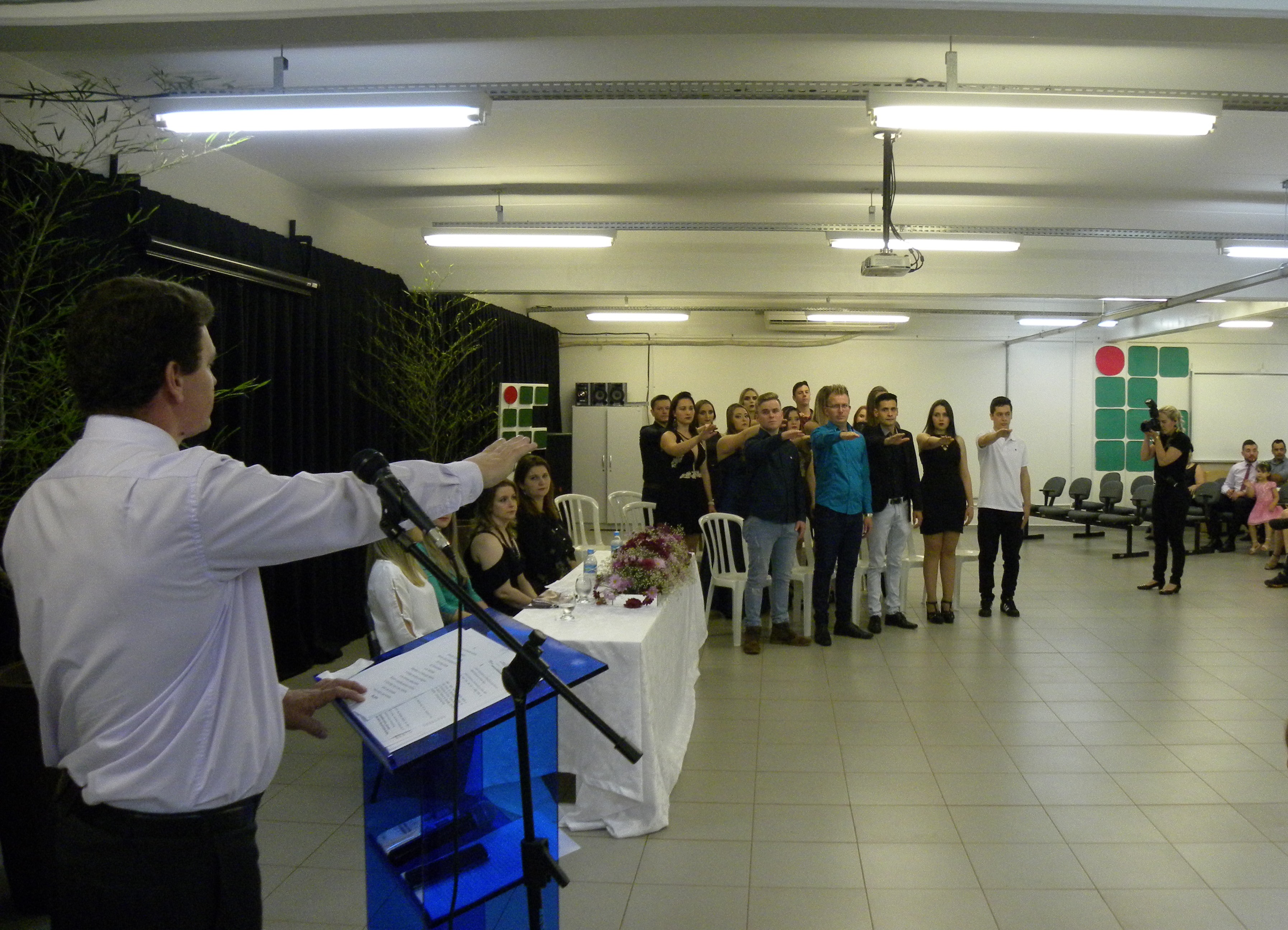 Participaram da mesa de honra a diretora-geral do campus, Professora Renata Rotta; a diretora de Ensino, Analice Marchezan; a coordenadora do curso Técnico em Vendas, e na oportunidade, paraninfa dos formandos, professora Nuvea Kuhn; e a patronesse da turma, professora Anélia Franceli Steinbrenner.