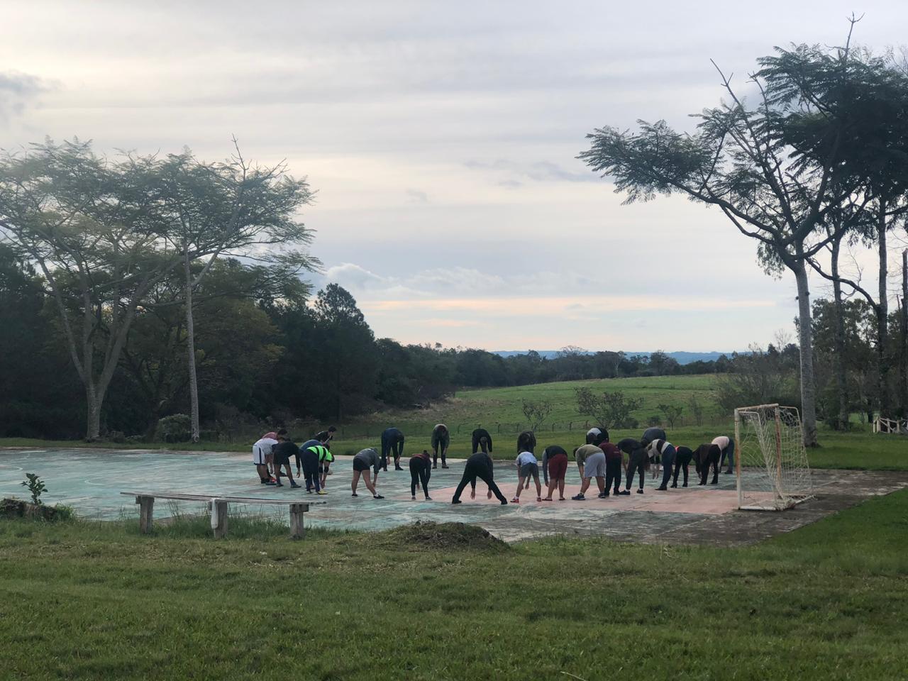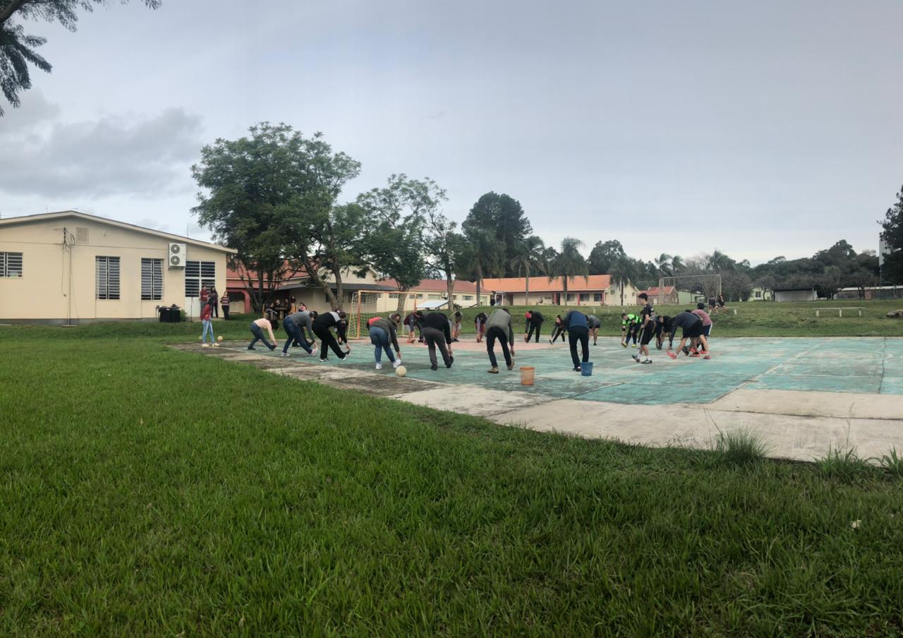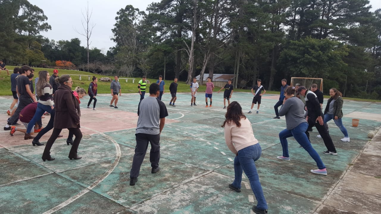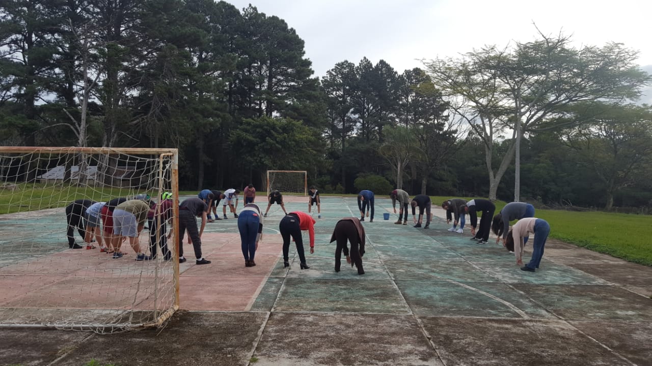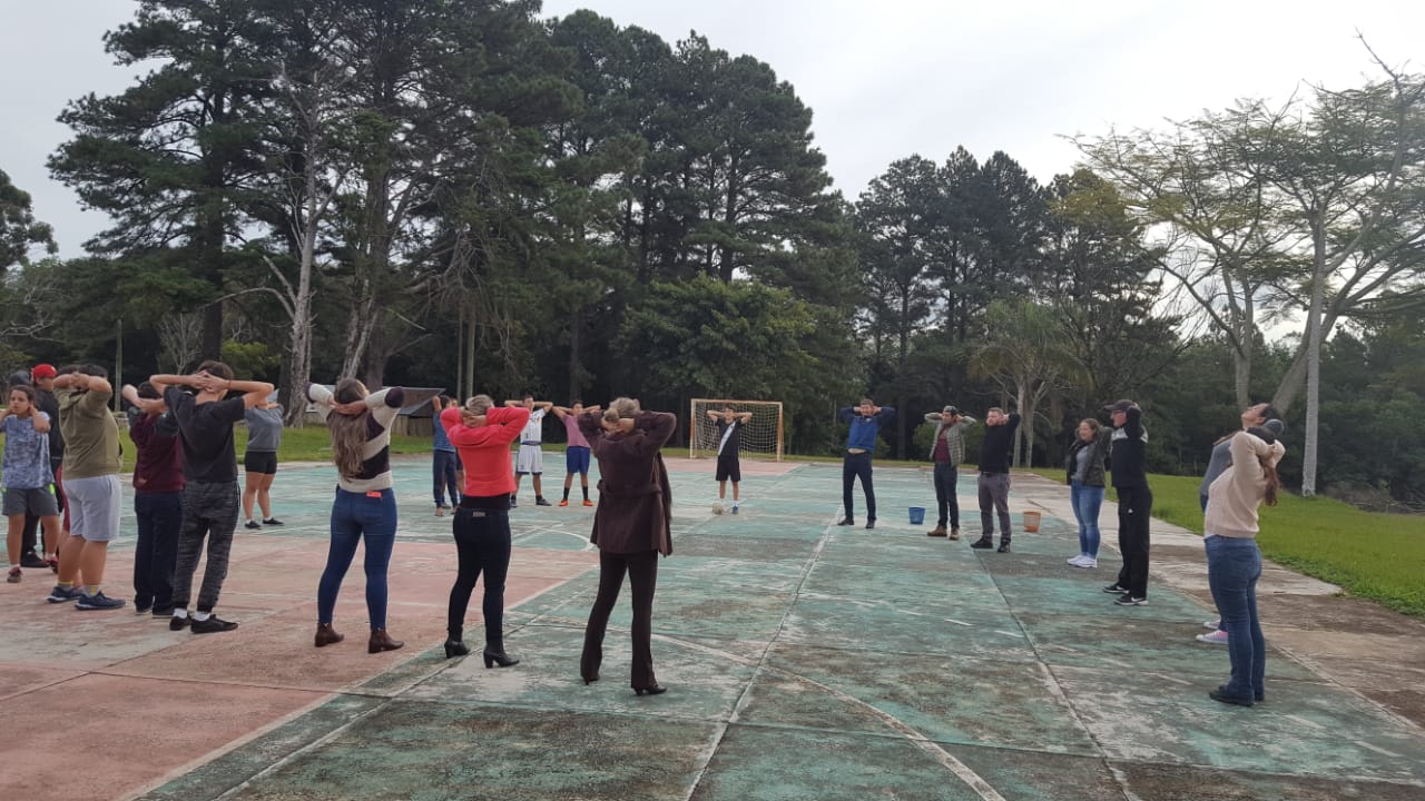 O IFFar Campus Jaguari, a convite da Secretaria Municipal de Turismo, Cultura, Desportos e Lazer de Jaguari e sob coordenação do Prof. Anderson Fetter, odontóloga Fernanda Lavarda e nutricionista Priscila Flores, inseridos no Projeto Roda de Saúde, promoveram atividades de valorização ao bem-estar e movimento físico do DIA DO DESAFIO no campus, reunindo 12 servidores e 47 estudantes, totalizando 59 participantes na oficina de alongamento e jogos cooperativos e esportivos.