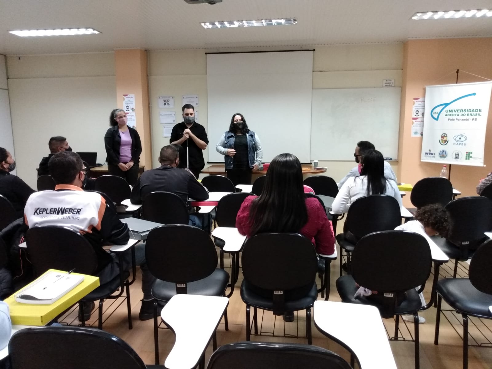 Na aula inaugural estiveram presentes Elizabete Farias de Souza, Secretária Adjunta da Secretaria de Desenvolvimento Social e Habitação, Solange Molz, Coordenadora do polo de apoio presencial da UAB e os seguintes representantes do IFFar – Campus Panambi: Jorge Fonseca, Diretor Geral; Rudião Wisniewski, Diretor de Pesquisa, Extensão e Produção; Lisiane Goettens, Diretora de Ensino; Maria Elisa Santos, Coordenadora de Extensão; Ana Lúcia Mohr, Chefe de Gabinete, Tina Franchi, Relações Públicas; Ana Paula Markus Hoffmann, Juliano Severo e Adriele Da Silva Tavares Furstenau, estudantes de Licenciatura Biológica e voluntários do projeto.