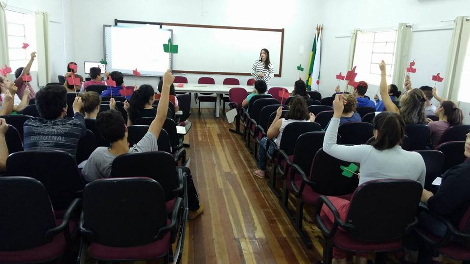 Na tarde do dia 25, os alunos do 1° ano do Técnico em Sistemas de Energias Renováveis participaram da dinâmica Mitos e Verdades, promovida pela equipe de Assistência Estudantil. Na oportunidade, a nutricionista e a odontóloga do campus conversaram com os alunos sobre dúvidas e curiosidades sobre alimentação e saúde bucal.