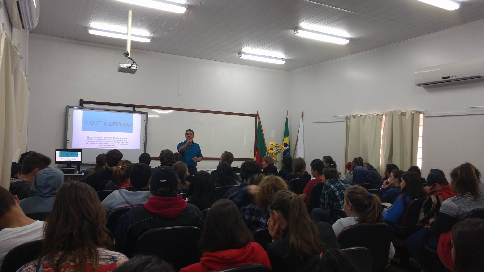 No dia 05 de julho, o IFFAR Campus de Jaguari recebeu o consultor em Dependência Química e dependente químico em recuperação Mauro Passamani Saldanha, para uma conversa com os estudantes do Cursos Técnicos Integrado ao Ensino Médio. Na ocasião, o tema abordado foi "Preservando a vida: prevenção ao uso e abuso do álcool e outras drogas".