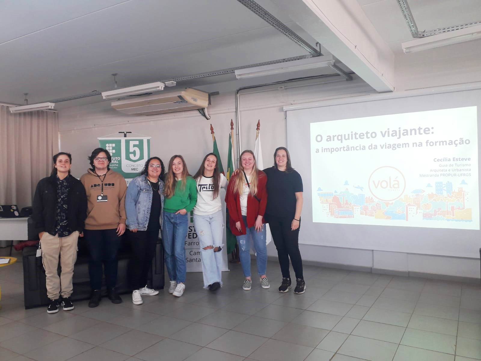 Cecília é Arquiteta e Urbanista graduada pela UFRGS (2013) e Guia de Turismo formada pelo SENAC (2015). O evento foi organizado pelo Diretório Acadêmico do Curso de Arquitetura e Urbanismo (DACAU) e ocorreu no auditório do campus, contando com a presença de professores e acadêmicos de diversos semestres do curso. A palestrante contou um pouco sobre sua trajetória acadêmica e profissional e abordou o papel das viagens como elemento transformador na formação do profissional Arquiteto e Urbanista.