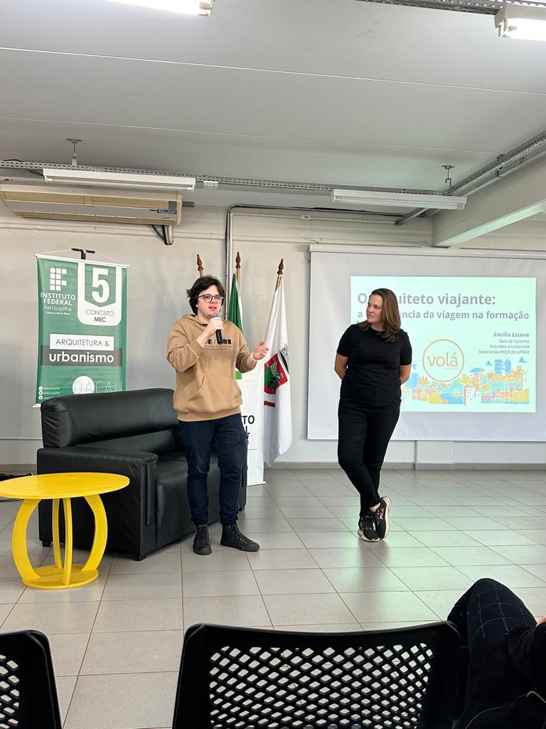 A aula inaugural do Curso de Arquitetura e Urbanismo do IFFar – Campus Santa Rosa foi realizada na quinta-feira (20/04), com o tema "O Papel Transformador da Viagem para o Arquiteto e Urbanista", e ministrada por Cecília Esteve.