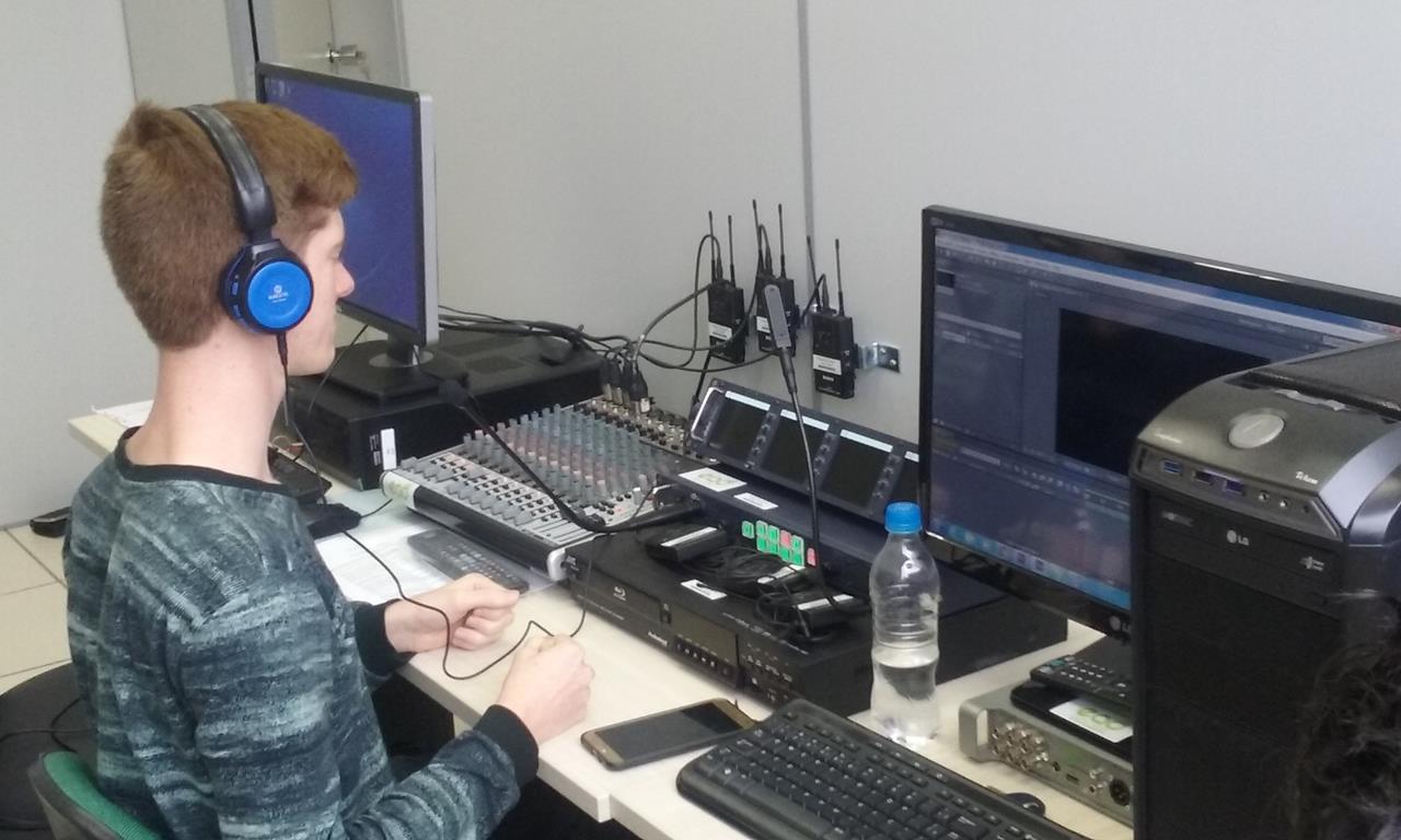 Na sexta-feira (24), a equipe da WebTV do IF Farroupilha esteve no Campus Santa Rosa para a gravação dos hinos nacionais e rio-grandense na Língua Brasileira de Sinais (LIBRAS). A interpretação foi realizada por Bruna Taube, aluna do curso Técnico em Móveis que possui deficiência auditiva. A professora de LIBRAS, Cátia Schemm, e a intérprete de sinais, Juliane Oberoffer, auxiliaram nas filmagens captadas pelos servidores Fabrício Pereira Colvero e Adriano Lima.