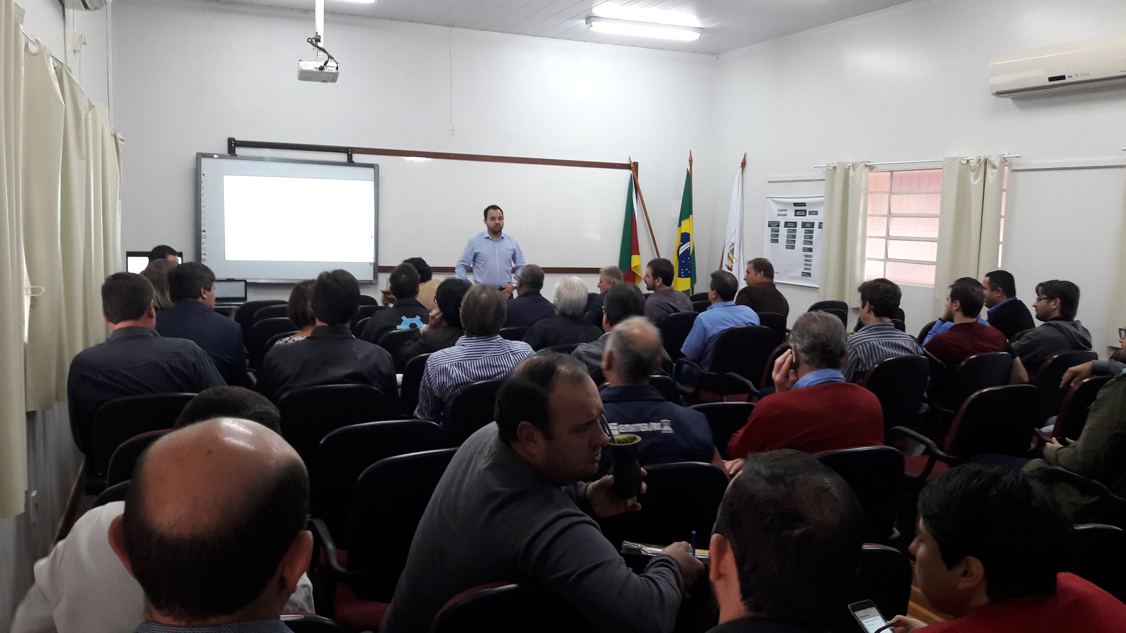 Ocorreu no dia 09, no auditório central, a 3ª reunião do Colegiado de Campus do IF Farroupilha – Campus Jaguari. Dentre as pautas discutidas, cita-se: Apresentação da Comissão Mista de Gestão; Centro de Referência em Santiago; Balanço Orçamentário 2016; Planejamento Orçamentário 2017; Estudo de oferta de Cursos e Vagas; Calendário Letivo 2017. A reunião contou com a presença do Prefeito Municipal Sedinei Rodrigues dos Santos.