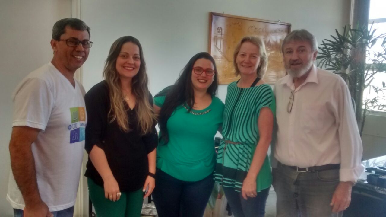 Servidoras do IFFar - Campus Jaguari reuniram-se na manhã de hoje (10), com a direção da URI Santiago, com o objetivo de estreitar relações e firmar parcerias. O Diretor Geral, Francisco Gorski, foi muito receptivo e acolhedor, demonstrando grande interesse na aproximação das instituições de ensino.