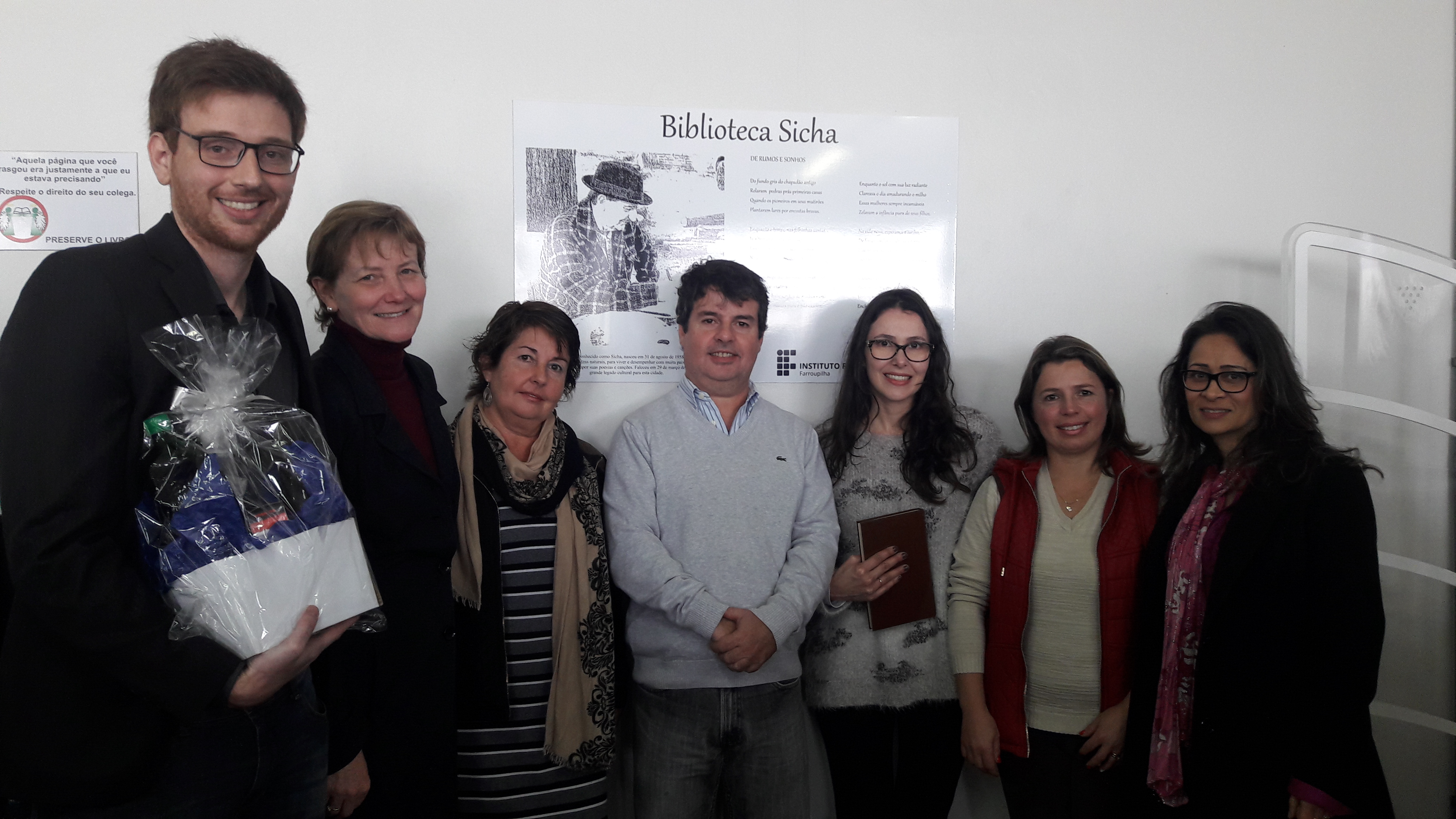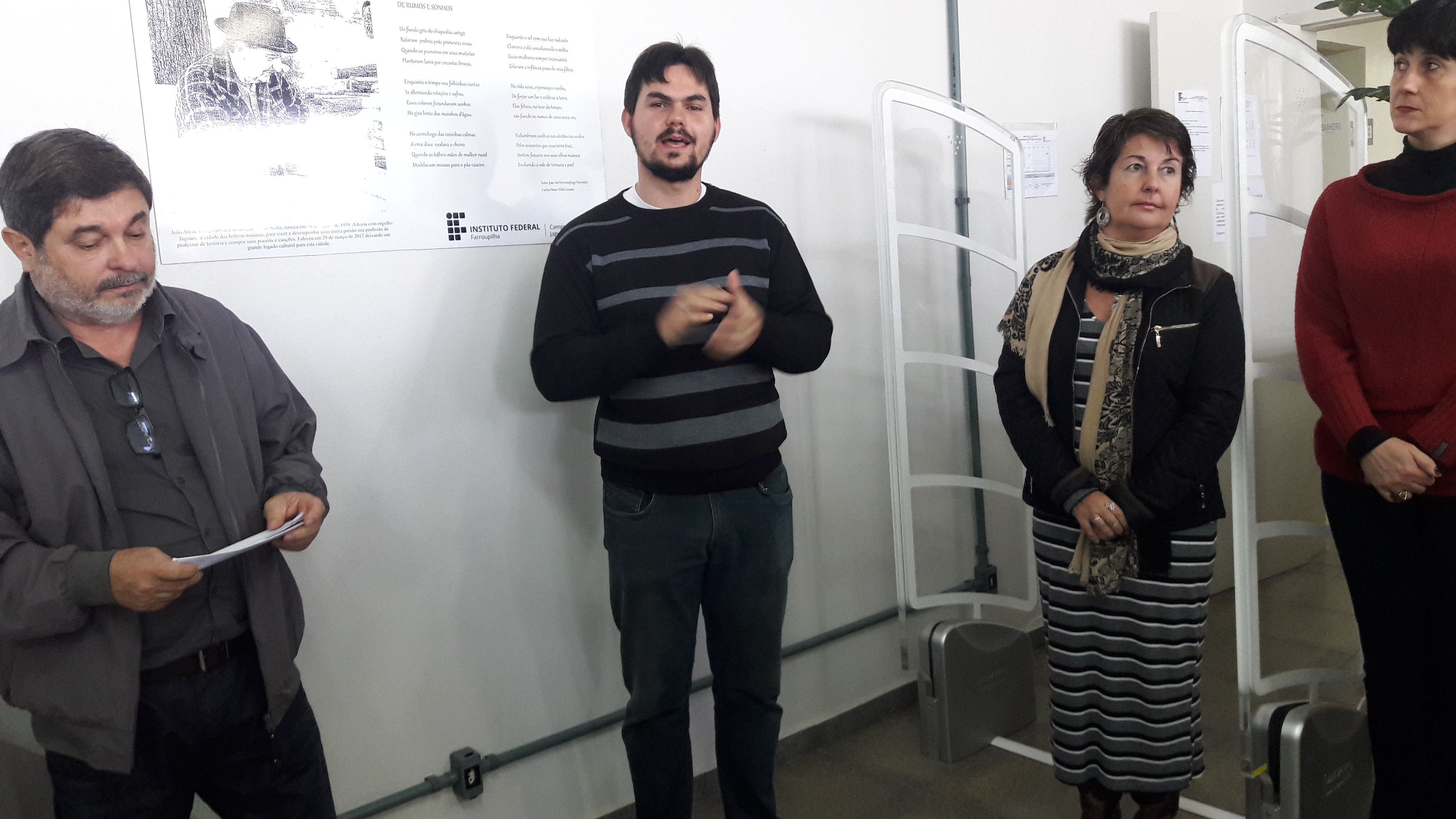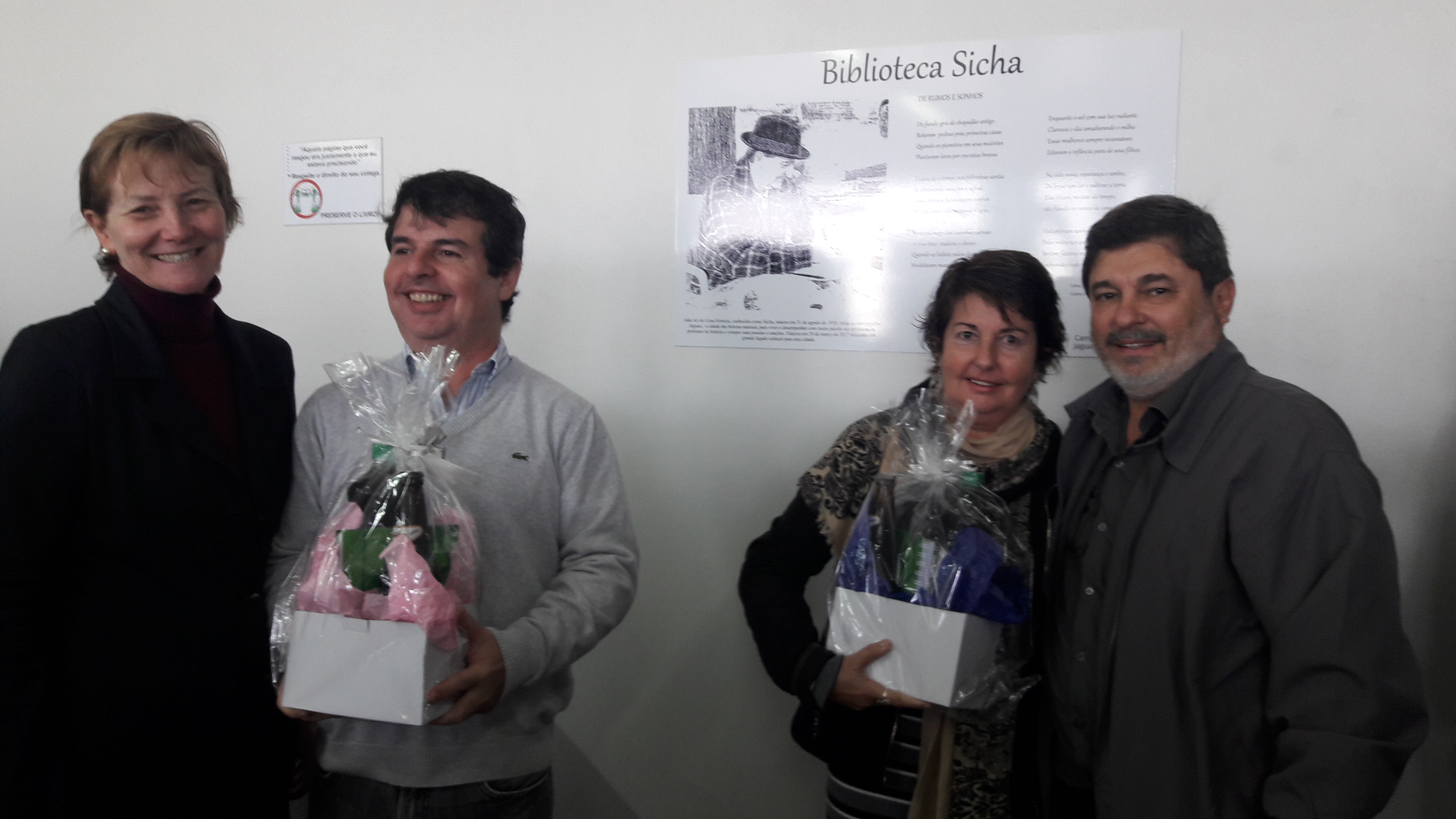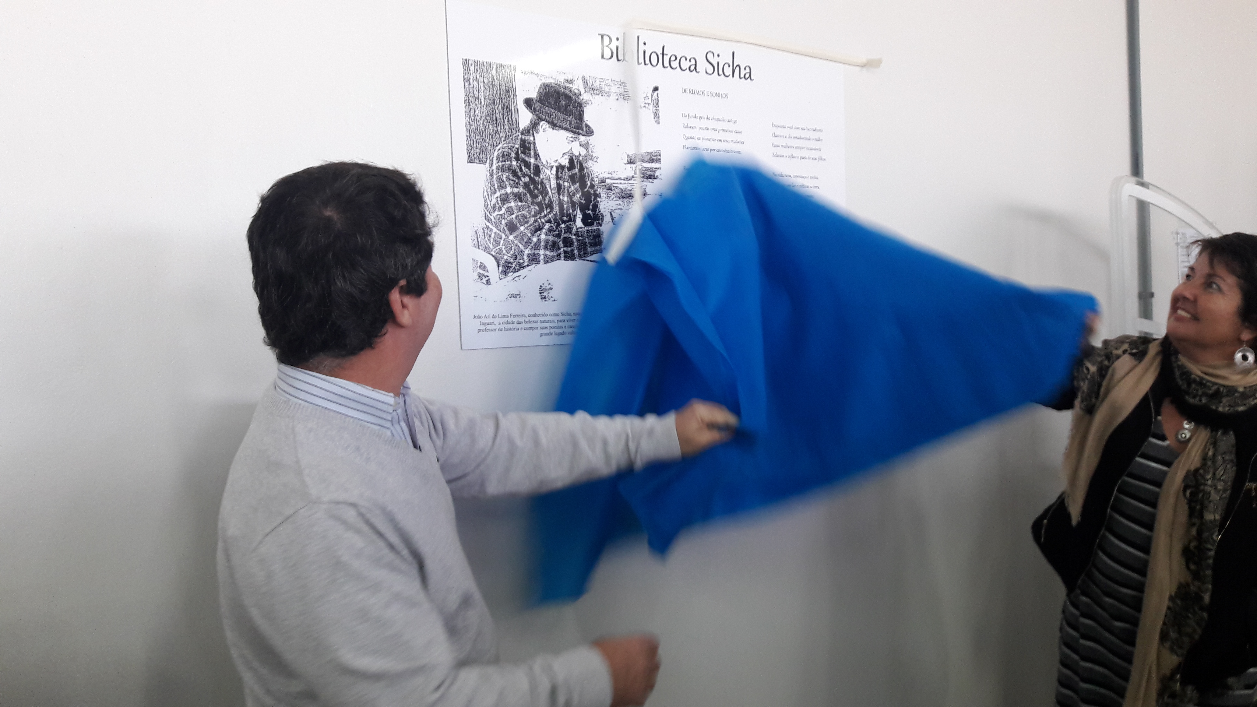 No dia 31 de agosto, a Biblioteca do Instituto Federal de Educação, Ciência e Tecnologia Farroupilha do Campus Jaguari realizou o descerramento da placa que a nomeia como Biblioteca Sicha, data de aniversário, em vida, do escritor, professor e compositor Sicha que tanto contribuiu para educação e cultura Jaguariense, levando suas letras e composições para além deste município. Agradecemos, com carinho, a todos os presentes na cerimônia, em especial aos irmãos do Sicha, Francisco Paulo de Lima Ferreira e Ana Rita de Lima Ferreira, que nos honraram com suas presenças, e ao professor Leonardo Maia, que sugeriu o nome para votação à comunidade acadêmica do IFFar e assim permitiu a escolha desse brilhante professor! Agradecemos ainda as presenças do presidente da Comissão Mista de Gestão do Campus Jaguari, Carlos Eugênio Balsemão, do Vice-prefeito municipal Lucas Denardi Cattelan, o assessor municipal de imprensa Miguel Monte, da diretora do Instituto Estadual de Educação Professora Guilhermina Javorski, Nádia Sonza Compagnoni e da vice-diretora, Cláucia Malavolta Tier. Temos a certeza de que o legado cultural deixado pelo Sicha continua vivo entre nós!