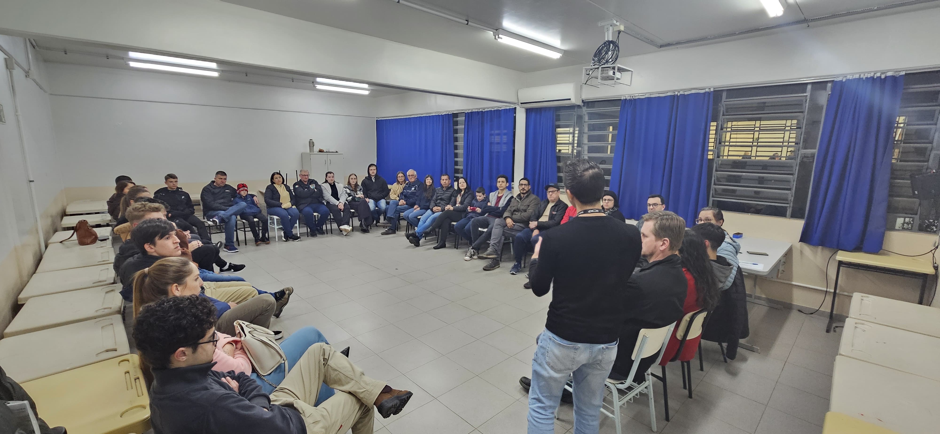 Os professores Renan Gabbi, Jenifer Hardt e Roberta Goergen conduziram a reunião com os estudantes e também fazem parte do projeto de extensão, contando com a participação de todos os interessados nas aulas de revisão. Podem participar estudantes de qualquer escola.