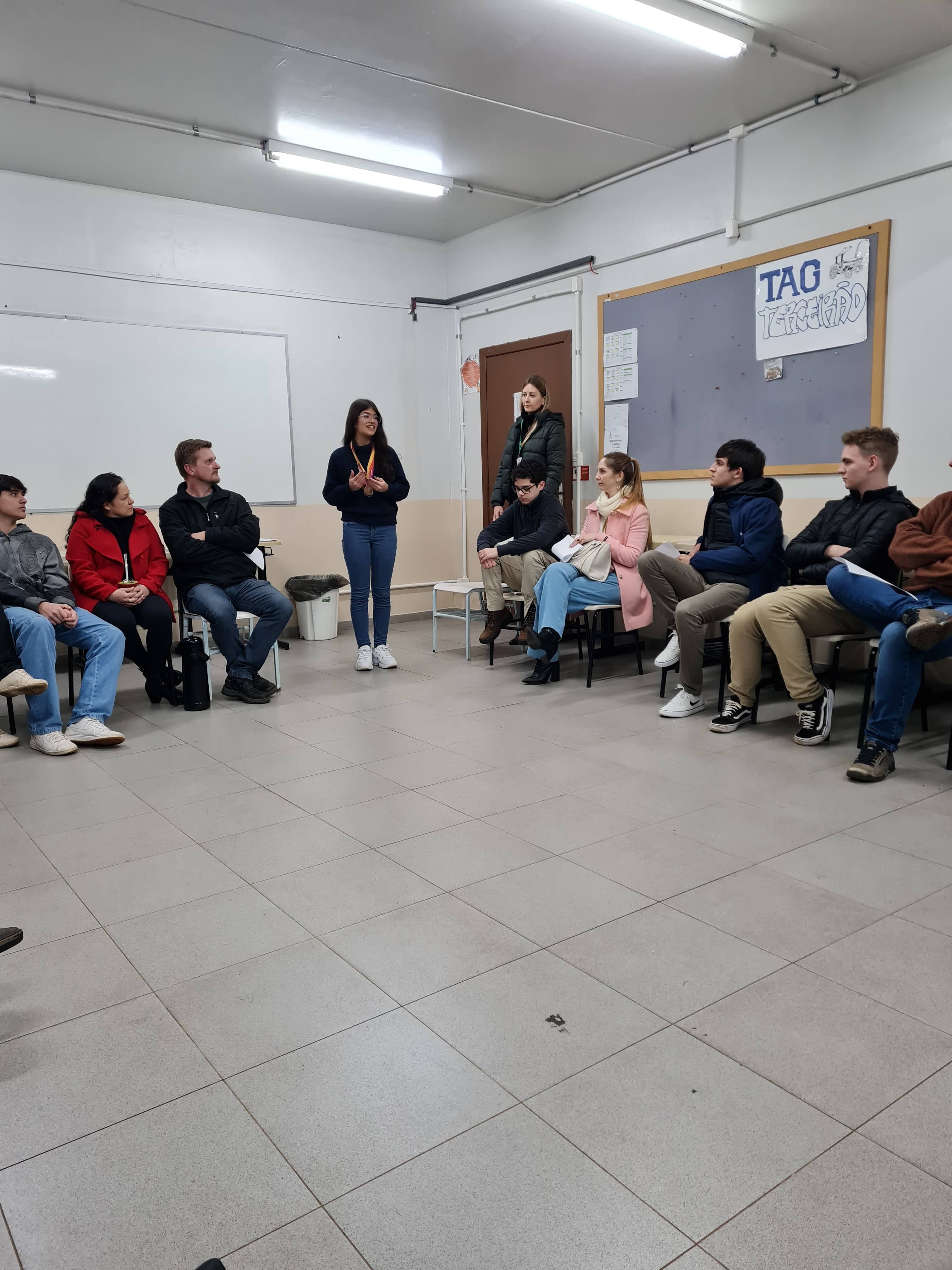 O encontro contou com a participação de Daniela Rauber Gomes, aluna da Escola Poncho Verde e medalhista de ouro da OBMEP em 2023. Daniela compartilhou sua experiência na premiação nacional, realizada no Rio de Janeiro, destacando como a olimpíada abriu novas oportunidades em sua trajetória acadêmica.