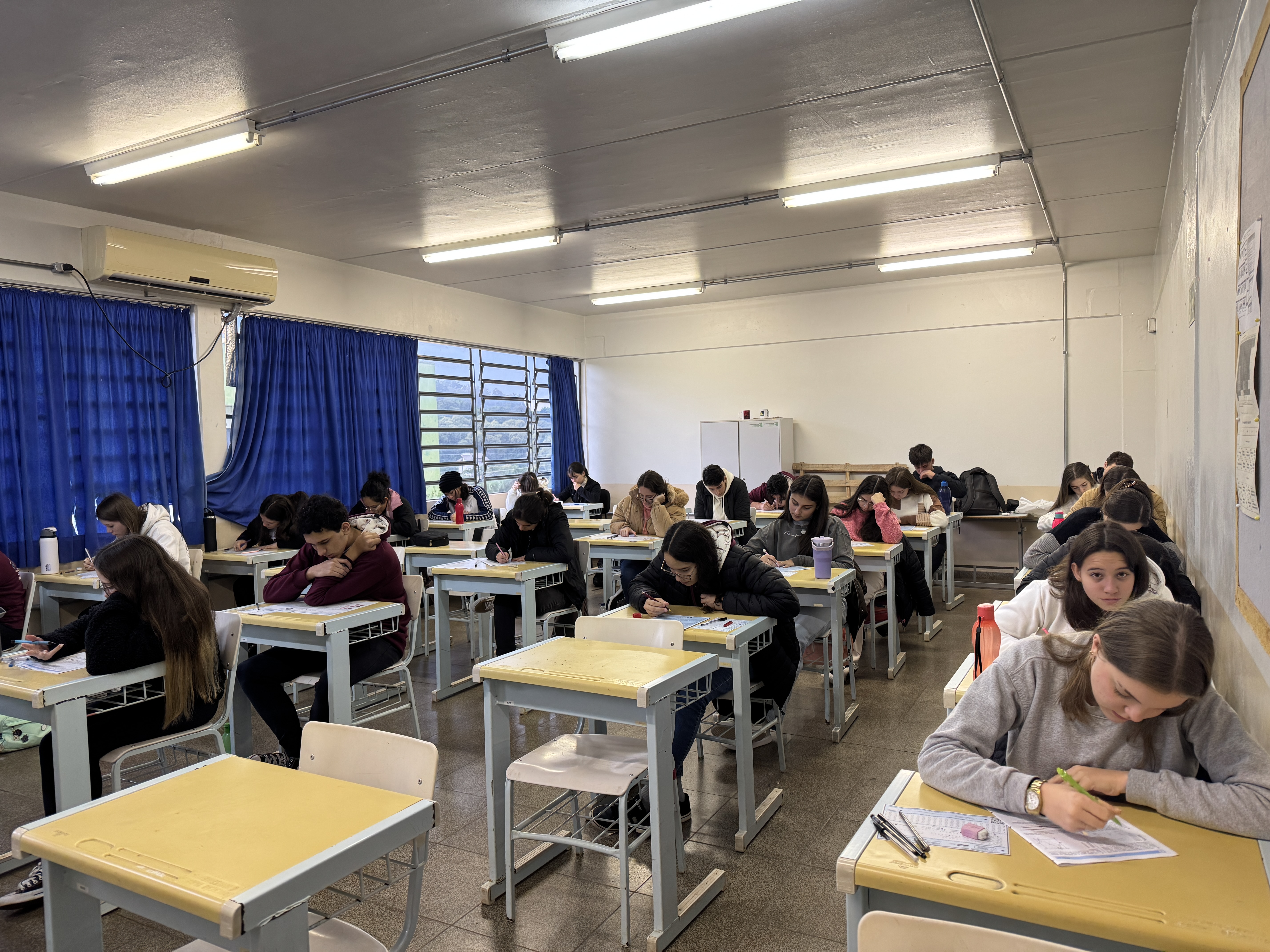 Todas as turmas dos cursos técnicos integrados ao Ensino Médio do IFFar - Campus Panambi realizaram a prova, totalizando 450 alunos participantes.
