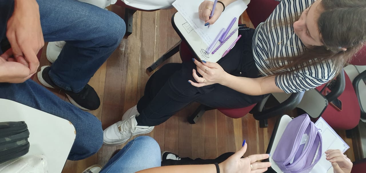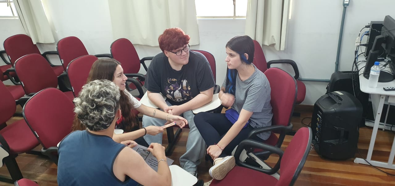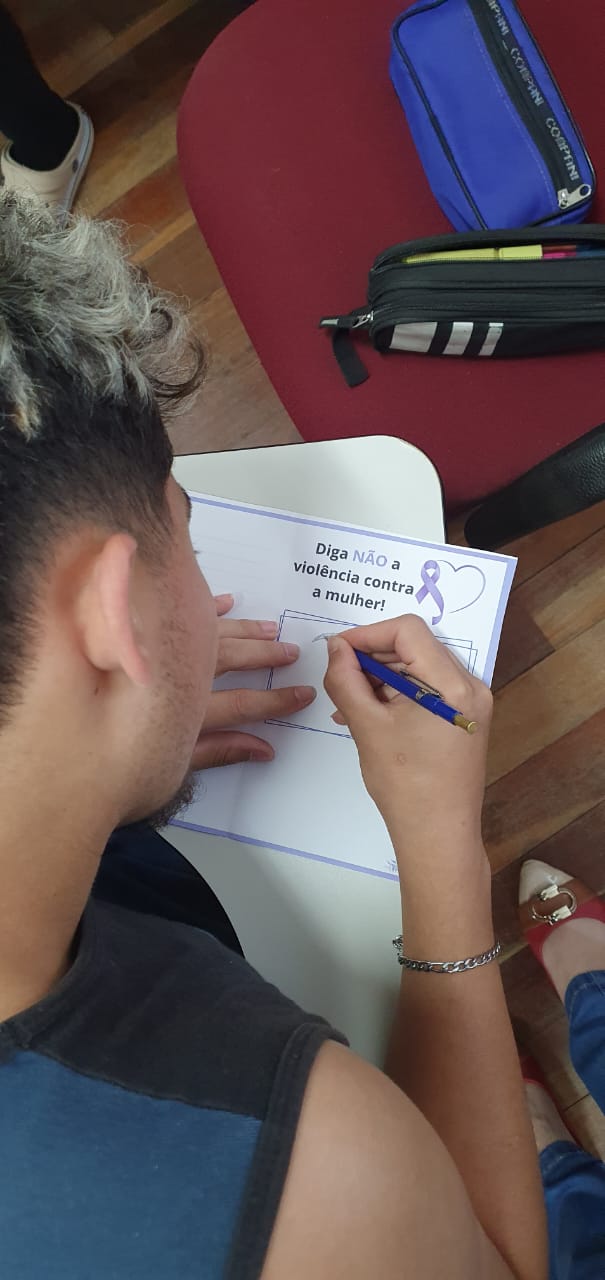 De forma participativa, os alunos, divididos em grupos, analisaram situações cotidianas que revelavam atitudes de controle, ciúme excessivo e manipulação, comportamentos que configuram formas sutis, porém graves, de violência. Depois disso, os alunos conheceram as características da violência psicológica, o chamado ciclo da violência e o impacto que essa forma de abuso causa na autoestima, na liberdade e na saúde emocional das vítimas.