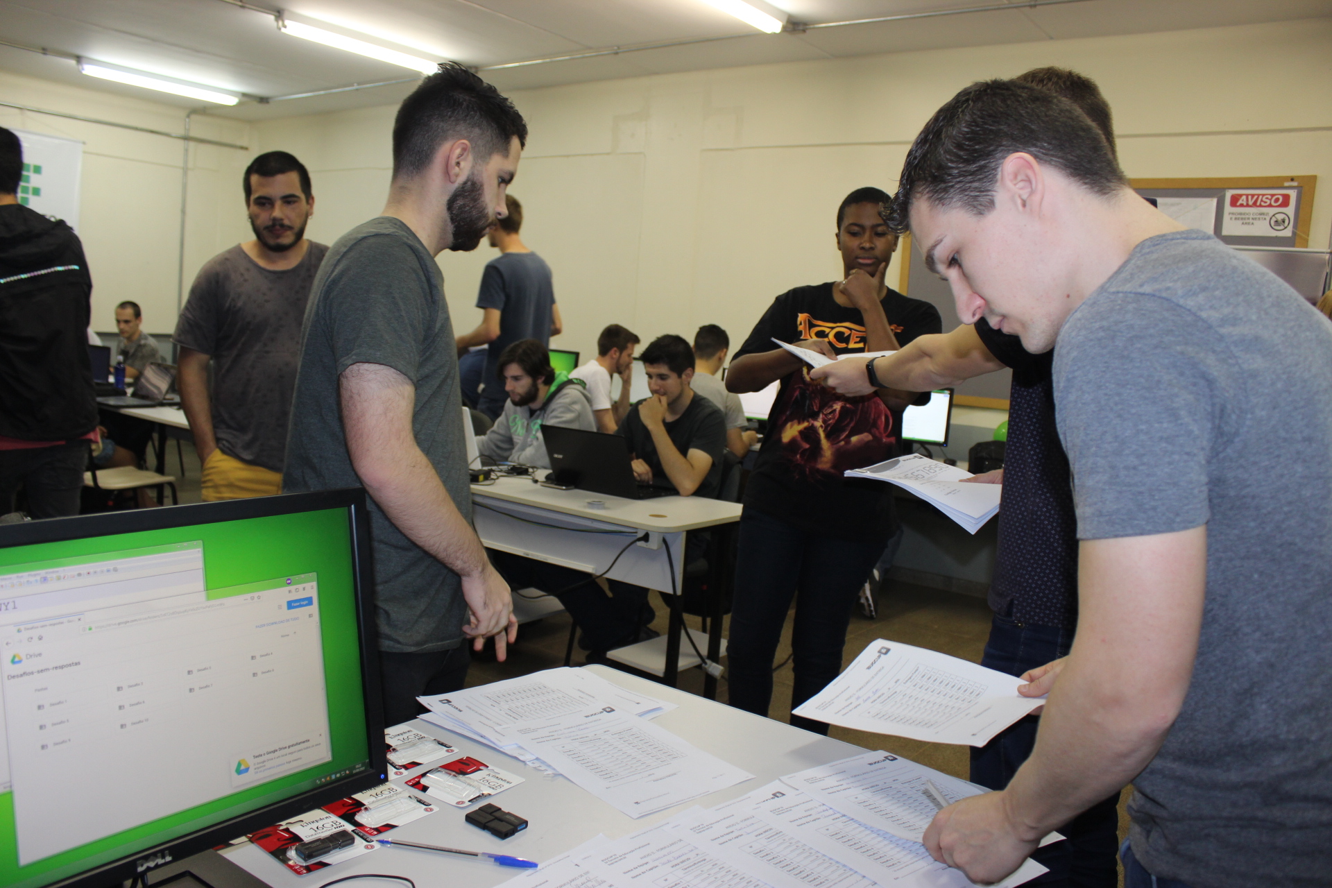 Durante três horas de competição, os trios integrados por alunos de Sistemas para Internet definiram suas estratégias para resolver 10 problemas fornecidos pela Comissão Organizadora (CO).