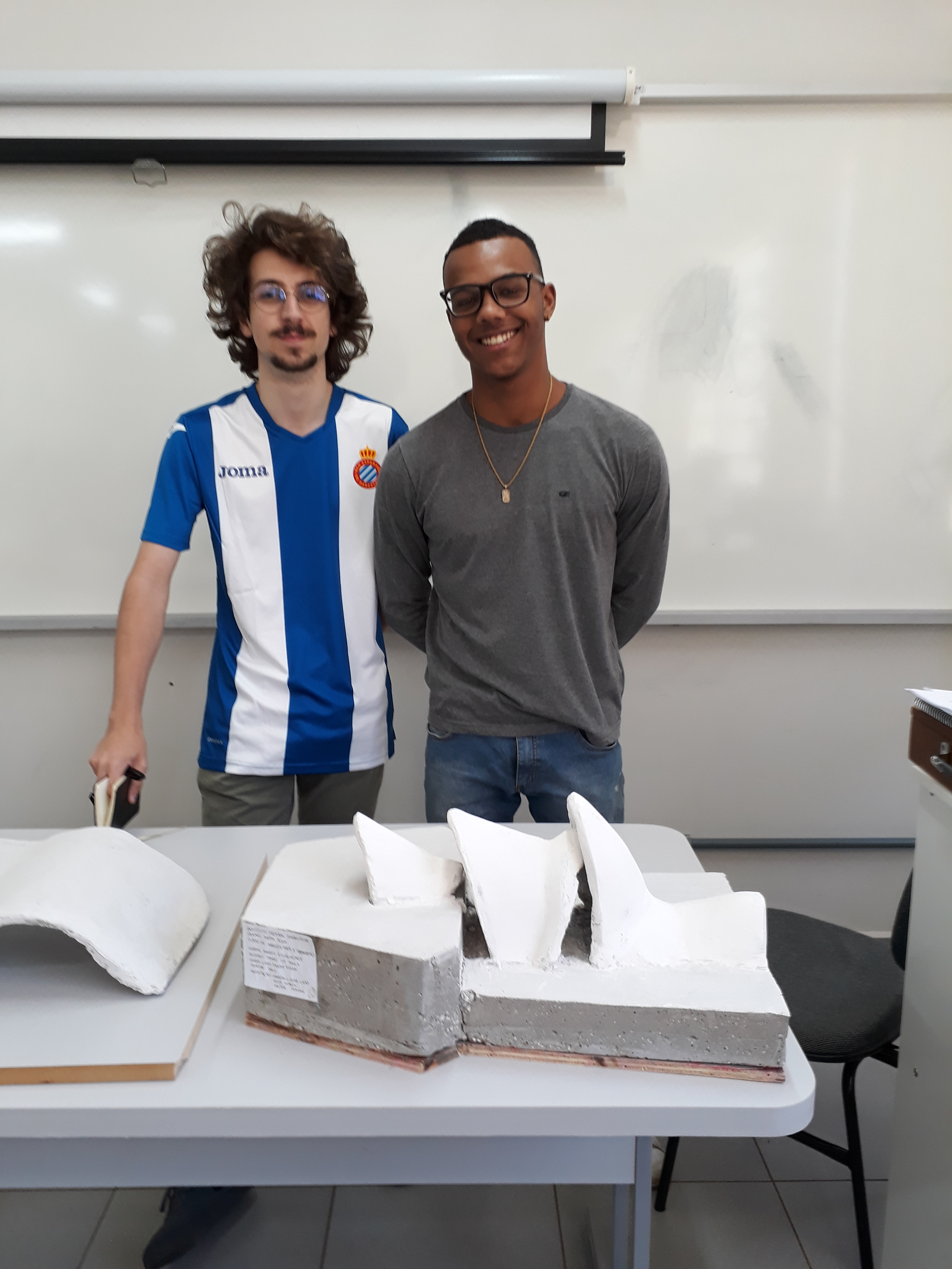 Na tarde desta segunda-feira (19), os alunos do curso de Arquitetura e Urbanismo, turma 4, apresentaram em aula, o resultado da atividade Prática Profissional Integrada (PPI), resultante de um estudo de uma estrutura em Casca, envolvendo as disciplinas de Sistemas Estruturais I, ministrada pela professora Neidi Kunkel, Materiais e Técnicas Construtivas II, pelo professor Valter A. Senger e Metodologia Científica, pelo professor Marcelo Eder Lamb.