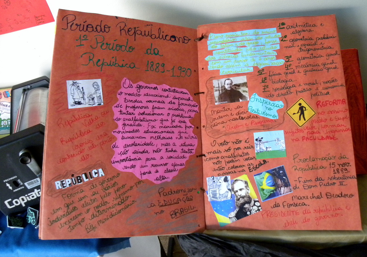 Nesta atividade, os alunos fizeram a composição de memórias e recordações da educação brasileira no período colonial, imperial e republicano, mediante o uso de fotografias, imagens, textos, reportagens, charges, poemas e demais elementos que pudessem contar um pouco da história da educação em nosso país.