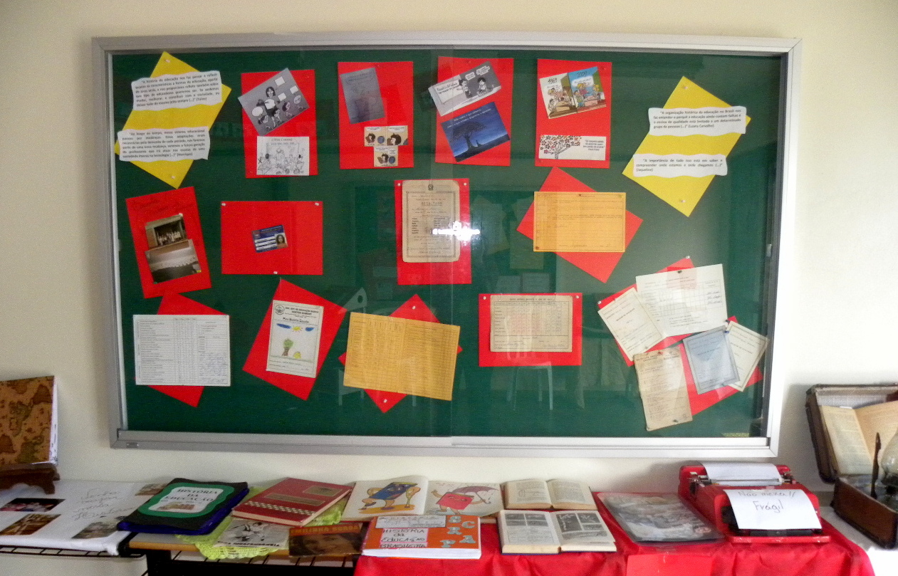 Quem passa pelo saguão superior do Prédio Pedagógico 1 depara-se com fotografias, mimeógrafo, máquinas de escrever, livros didáticos, jogos pedagógicos, boletins e pareceres escolares antigos que retratam um pouco da história escolar de cada um.