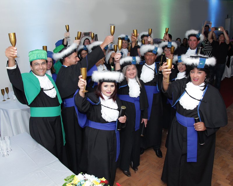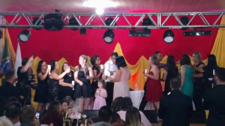Após a solenidade, os formandos realizaram um brinde em taças personalizadas com o emblema do curso que mandaram confeccionar, e ainda, organizaram e serviram um jantar aos familiares e amigos presentes. A noite terminou com muita festa e música. O Campus Alegrete deseja sucesso nos caminhos dos novos técnicos em Agroindústria!