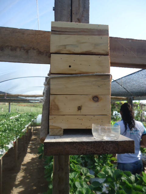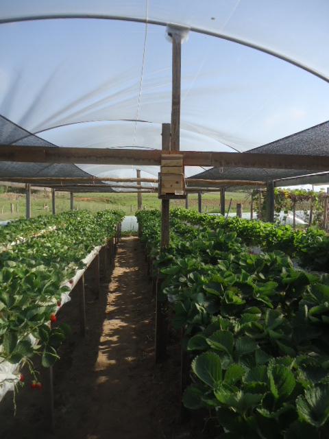 No domingo, 11 de dezembro, um grupo de alunos do curso Técnico em Agroindústria do Polo de Formigueiro, esteve visitando a propriedade da Srª. Teresinha Gass, na Estância do Meio, interior do município de Formigueiro. A produtora planta morangos San Andreas, Caminho Real e Camarosa, onde as abelhas Jataí são muito eficientes na polinização das estufas, fazendo a visita na flor do morangueiro. As flores visitadas por essa abelha originam morangos bem formados.