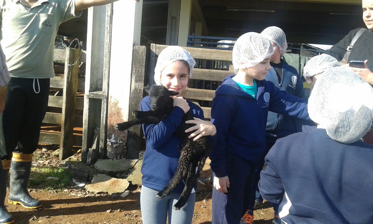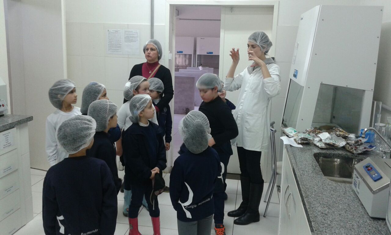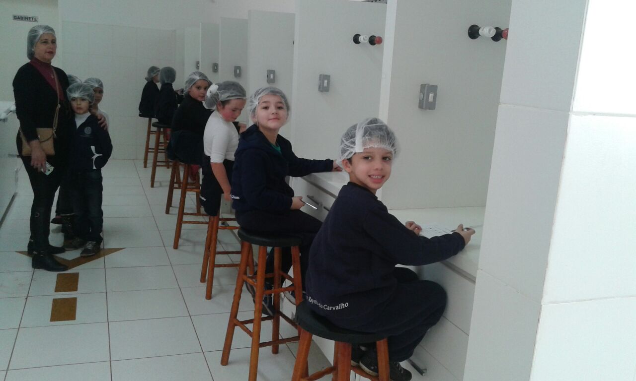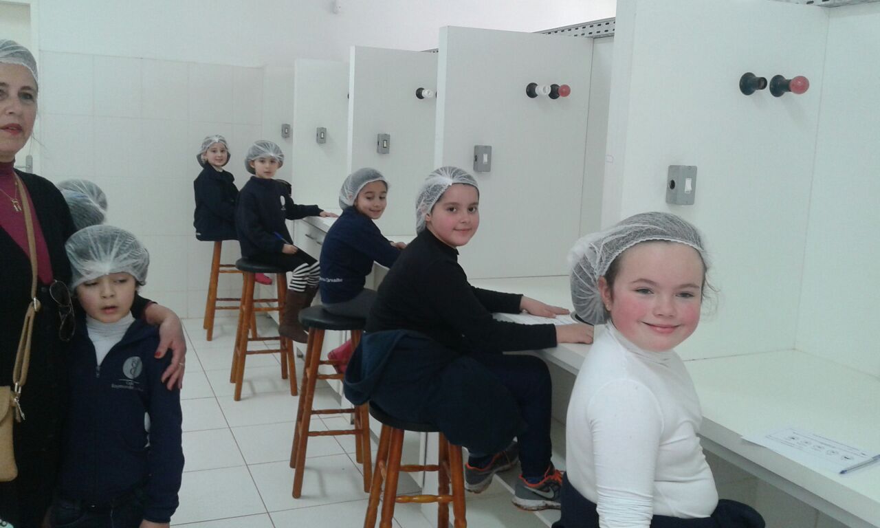 Uma visita mais que especial esteve no Campus ontem, dia 29 de junho. Dez alunos do 1º ano do ensino fundamental do Colégio Prof. Raymundo Carvalho, de Alegrete, juntamente com duas professoras e uma mãe, estiveram no Campus para conhecer a Agroindústria. O objetivo da professora foi mostrar aos pequenos como são produzidos e manipulados os alimentos derivados do leite e da carne, temas esses que a professora vem ensinando à eles desde o início do ano.