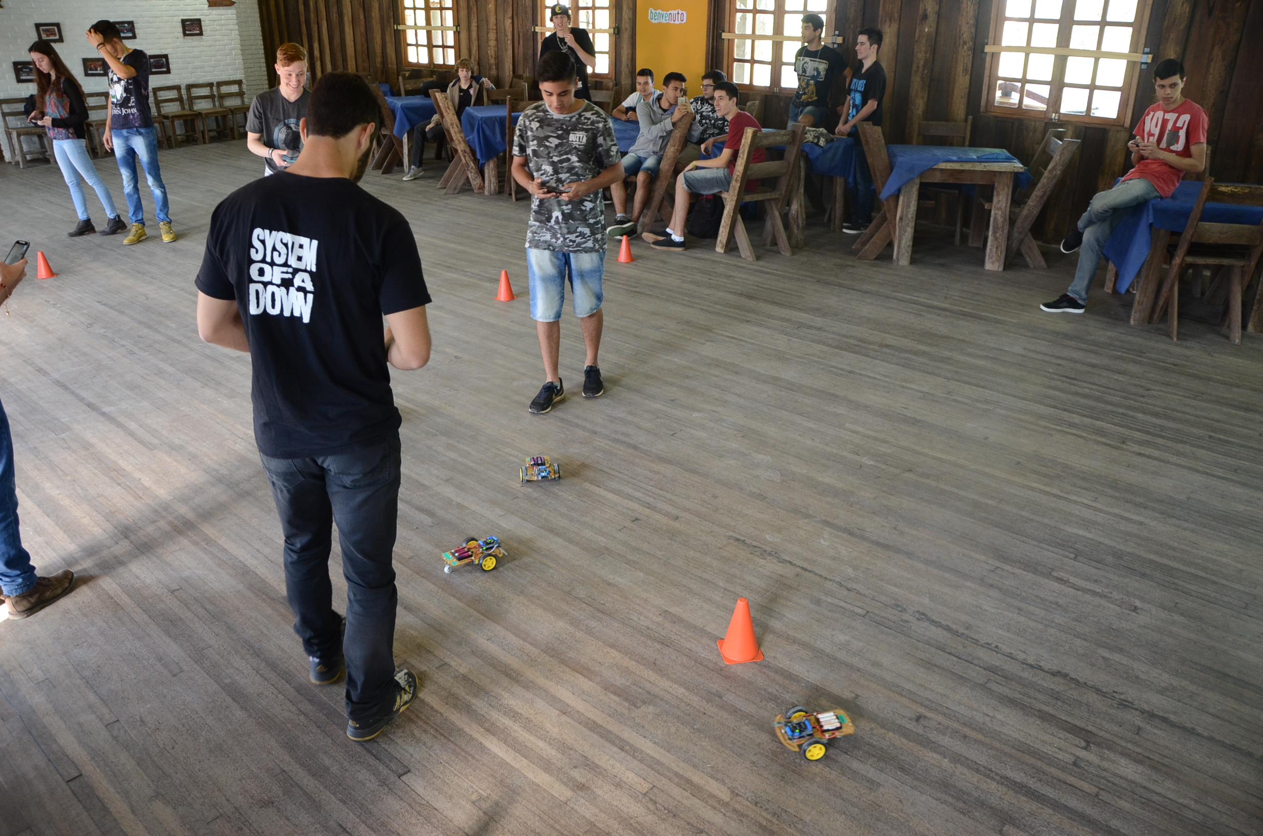 Nas últimas terças-feiras, dias 28 de novembro e 5 de dezembro, as turmas finais do curso técnico Integrado de Manutenção e Suporte em Informática, do Instituto Federal Farroupilha – Campus São Vicente do Sul, realizaram uma corrida amistosa dos carrinhos tipo chassi 2x2, que foram montados e programados na disciplina de robótica.