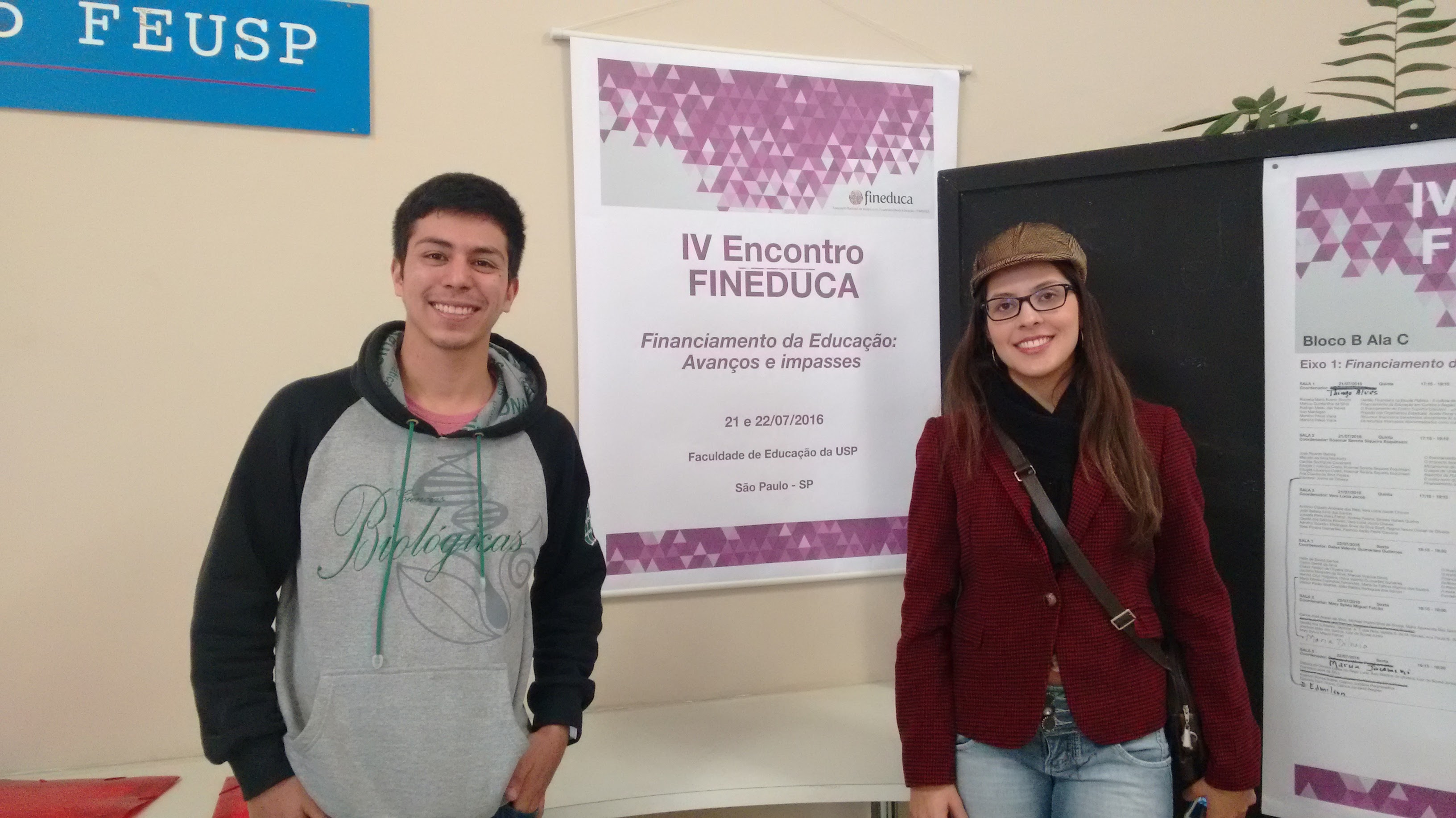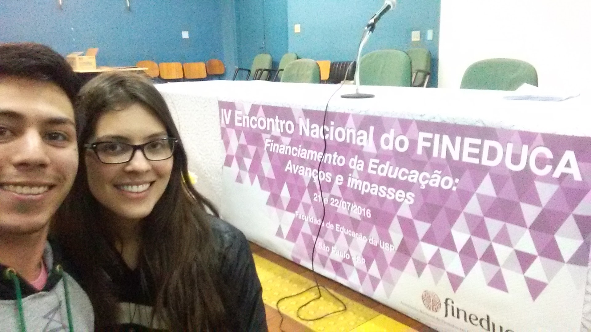 Nos dias 21 e 22 de julho, em São Paulo/SP, estiveram participando do IV Encontro da Associação Nacional de Pesquisa em Financiamento da Educação - FINEDUCA, o aluno de graduação do Curso de Licenciatura em Ciências Biológicas e bolsista da CNPq, Ederson Nunes Bueno e a Professora do IFFar - Campus Alegrete, aluna egressa do Curso de Especialização em Gestão Escolar/2015, Gabriela Paim Rosso.
