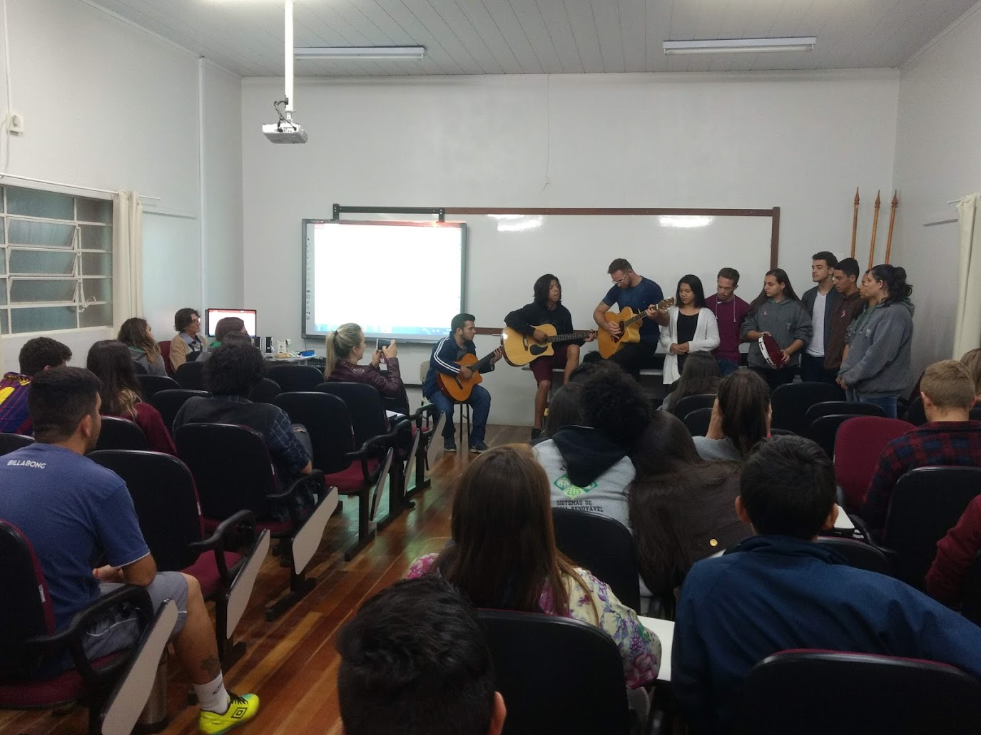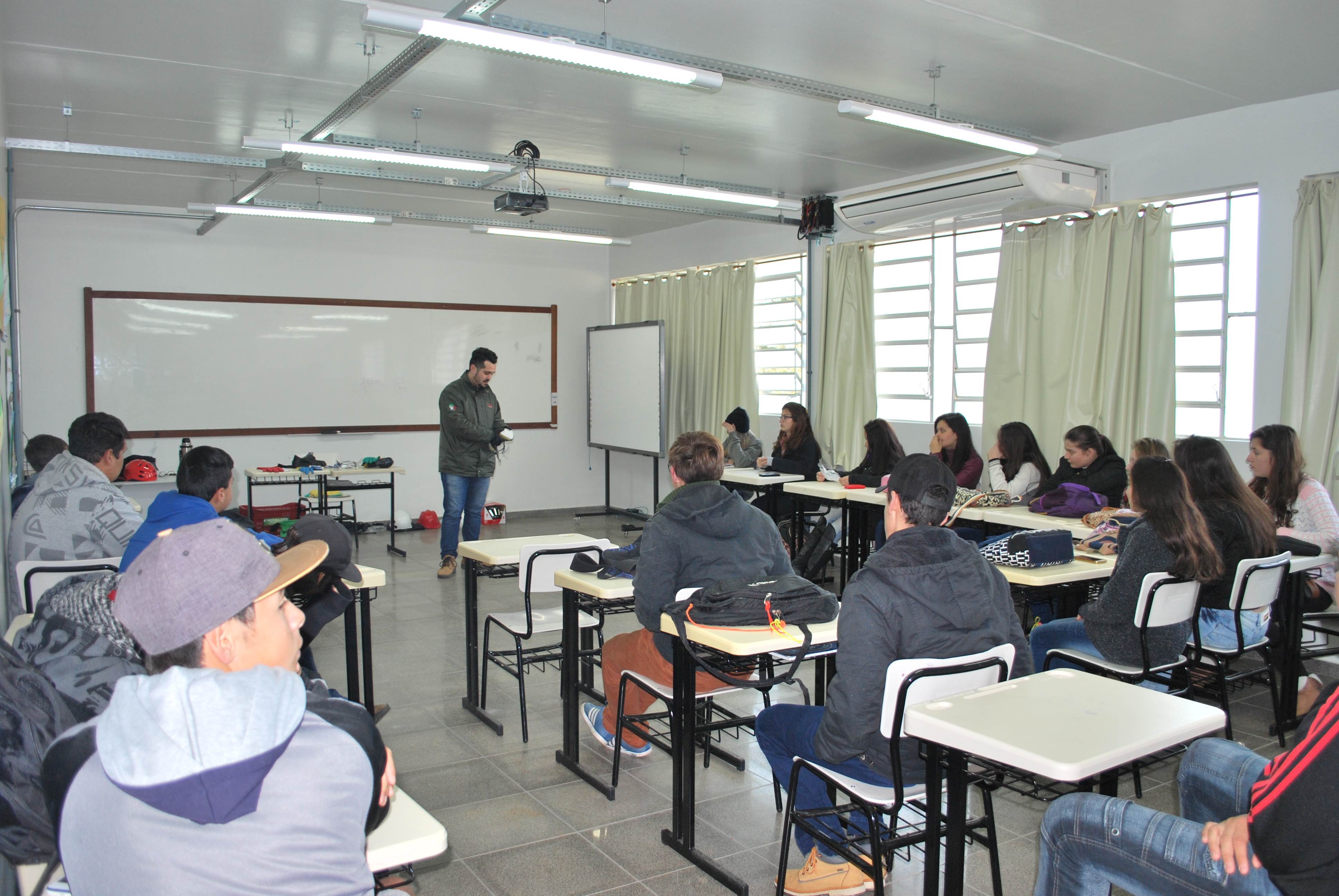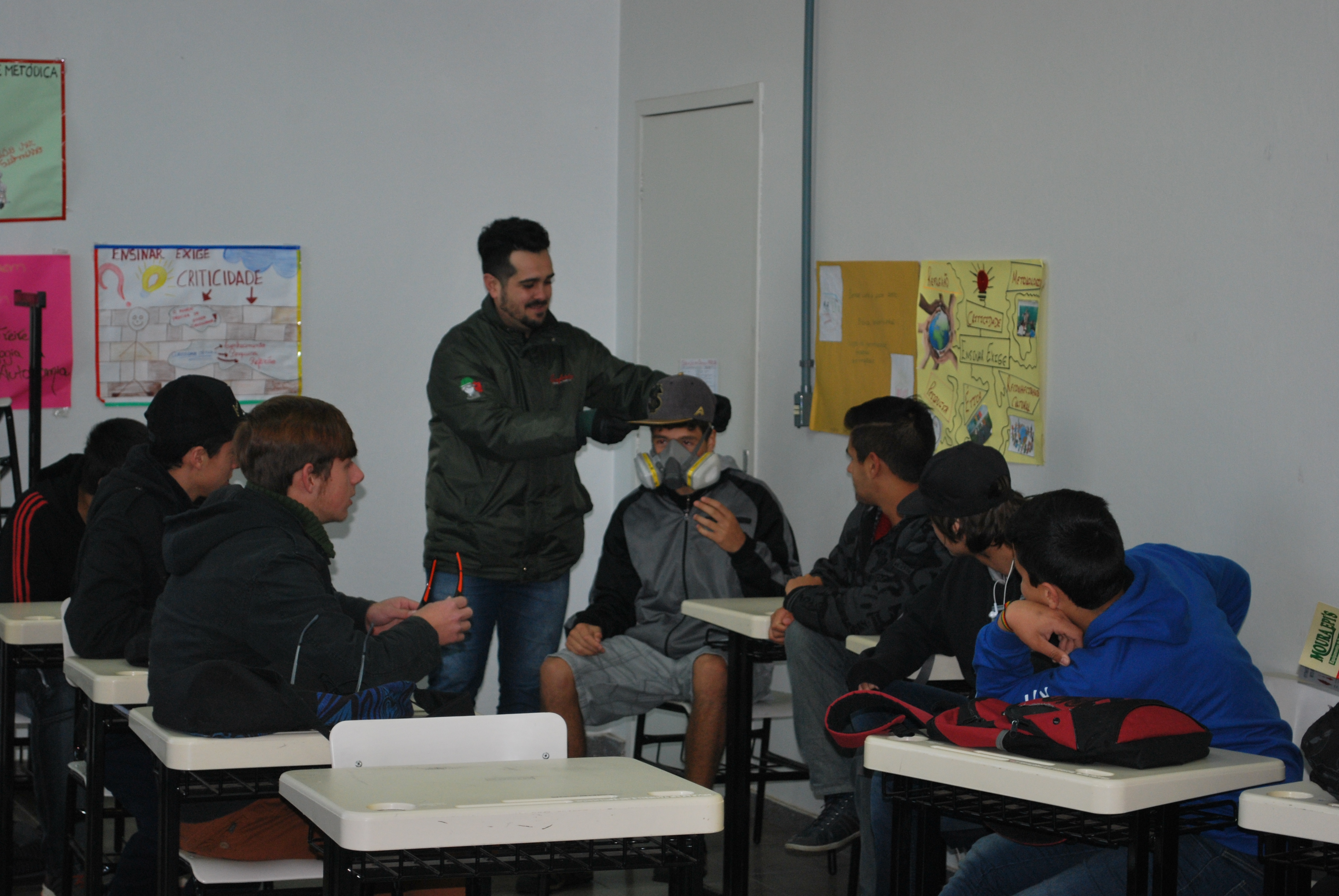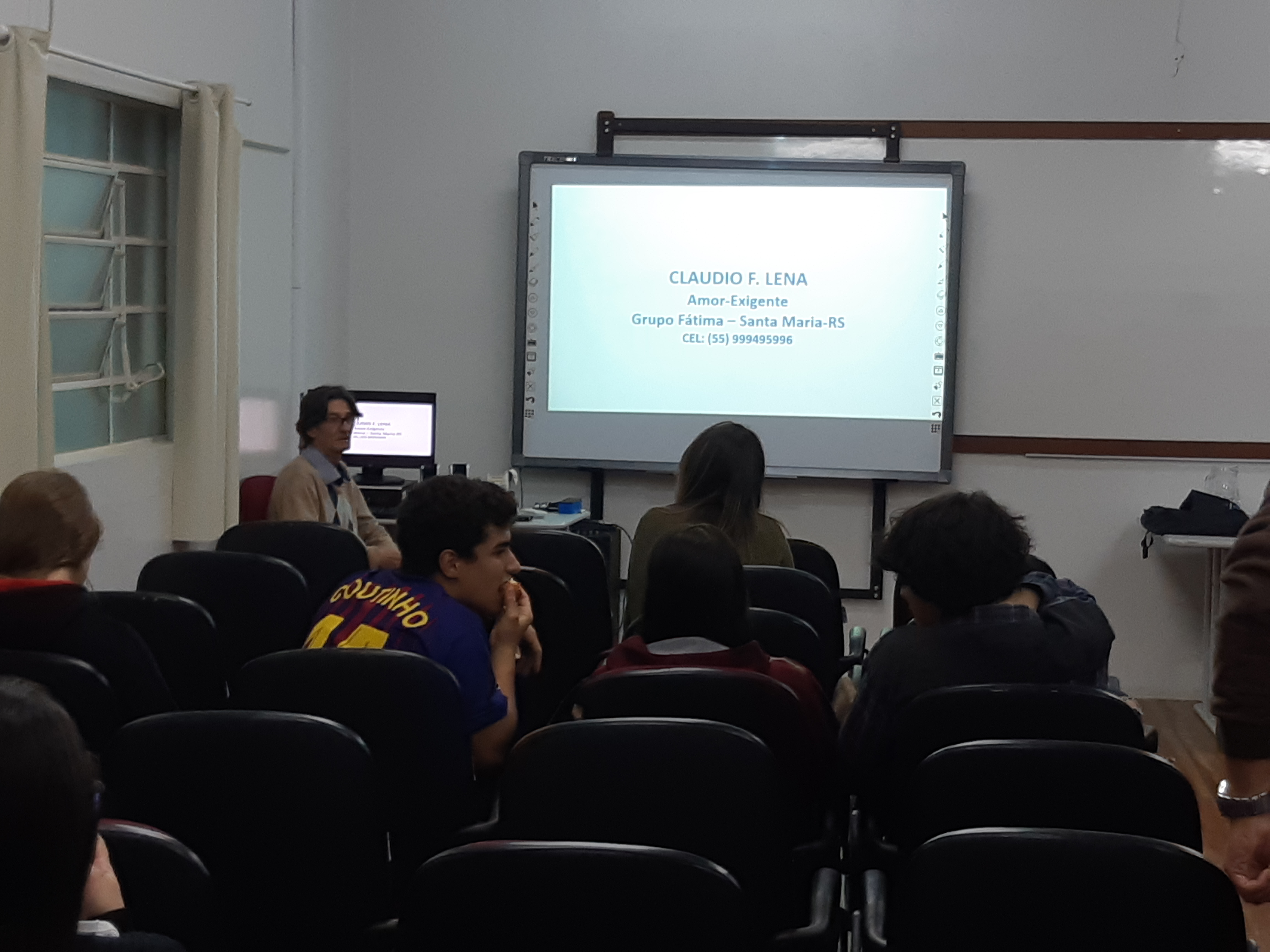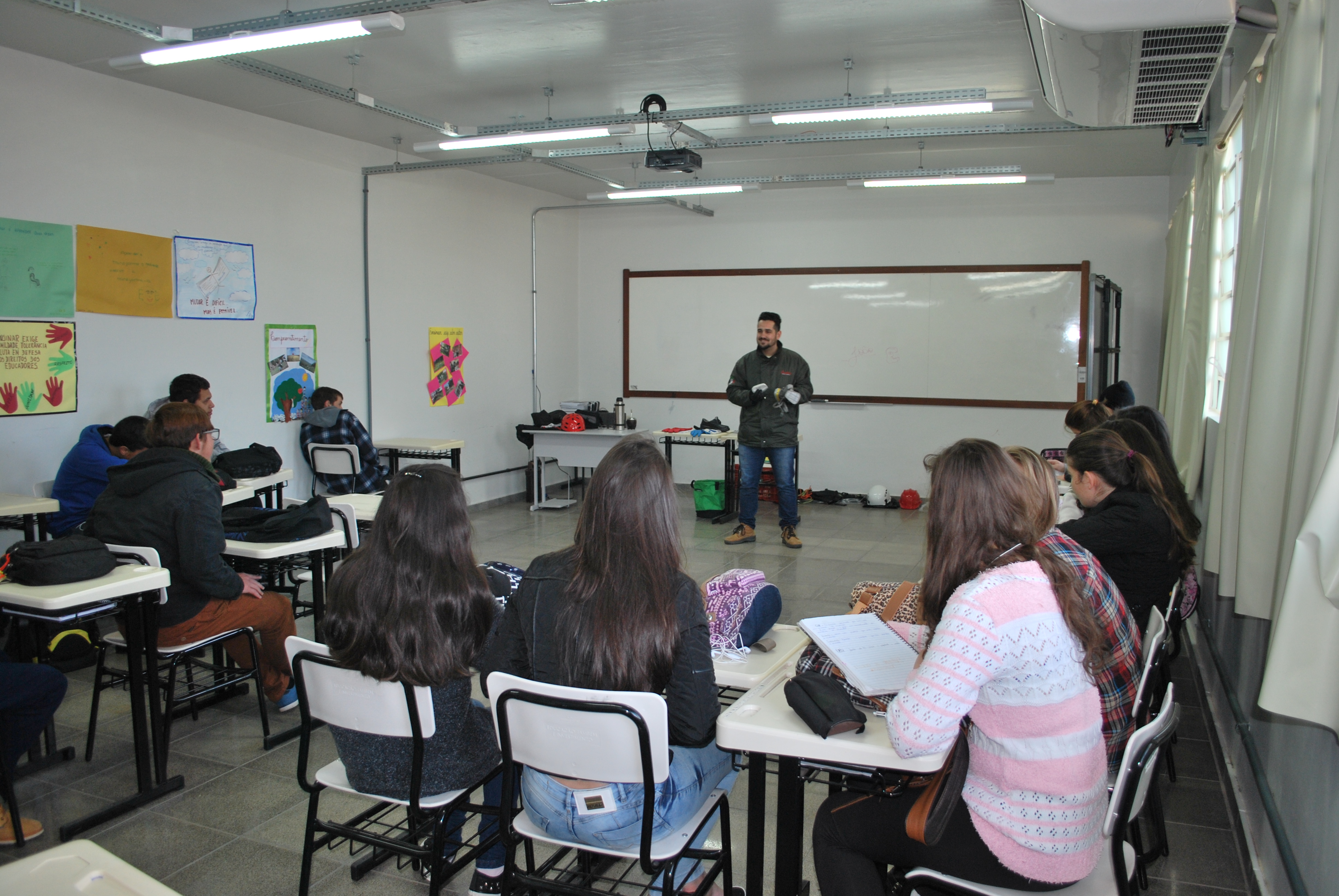 Na quarta-feira (10/10) foi comemorado o Dia Nacional de Segurança e Saúde nas Escolas em âmbito Institucional. As atividades no Campus Jaguari contemplaram a conversa sobre dependência química com o jaguariense Claudio Lena, do Grupo Fátima/Amor-Exigente de Santa Maria - RS.
