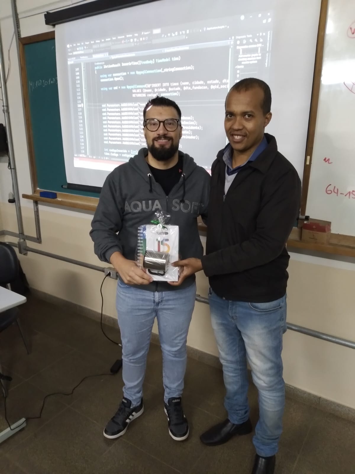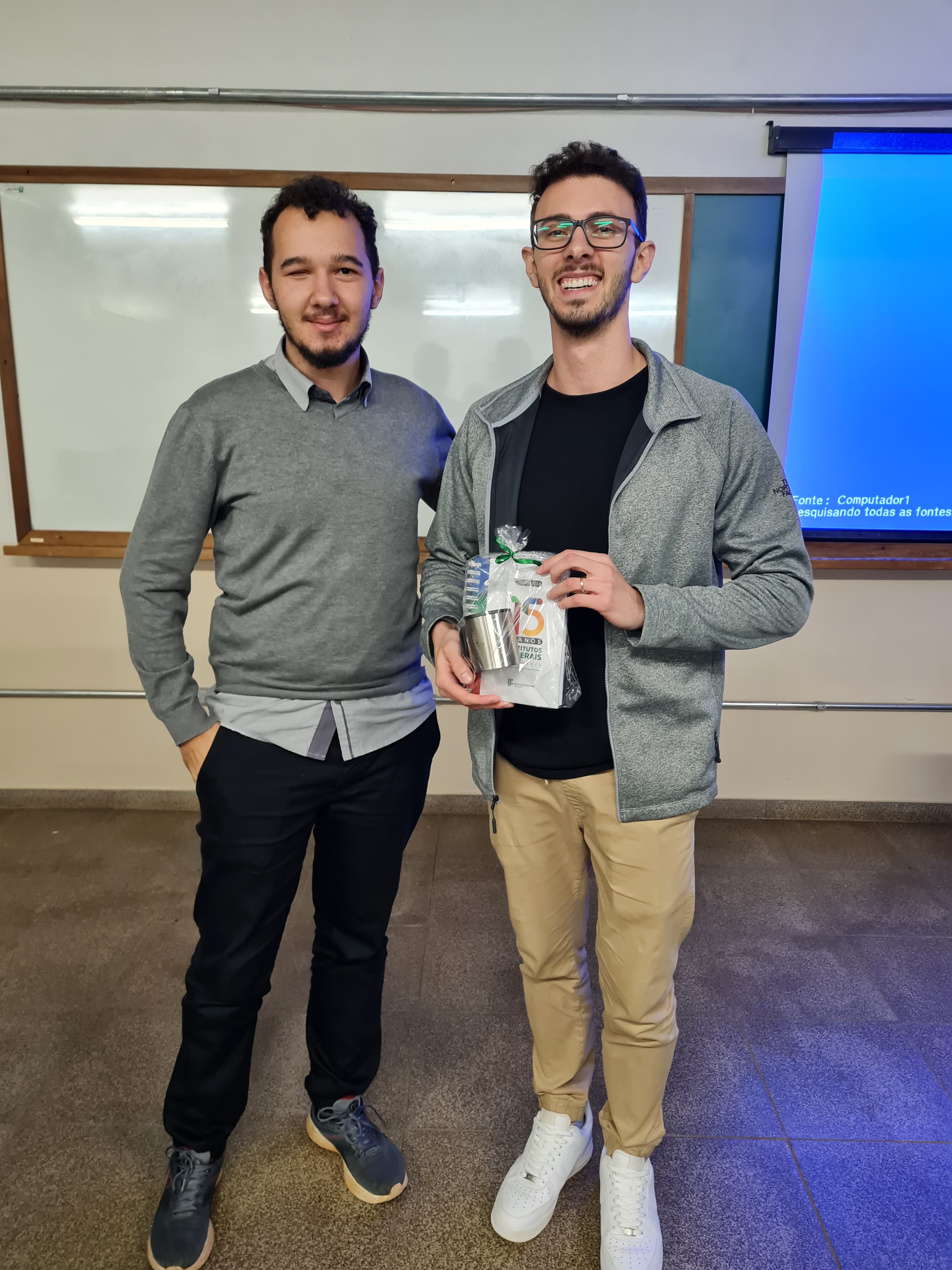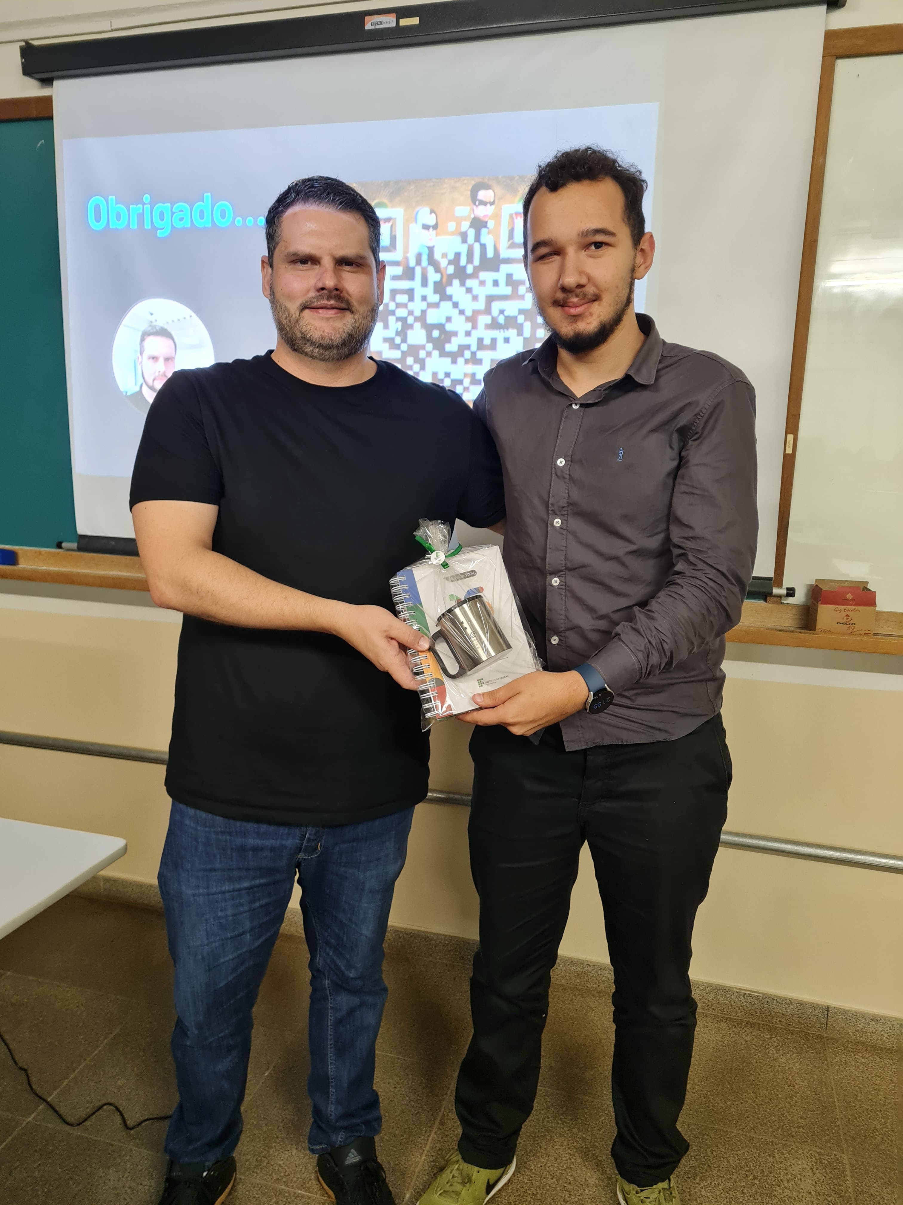 Os professores Renan Gabbi (Coordenador do Curso Superior de Sistemas para Internet) e Éverton Lutz (Presidente do NIT) acompanharam os estudantes durante o evento.