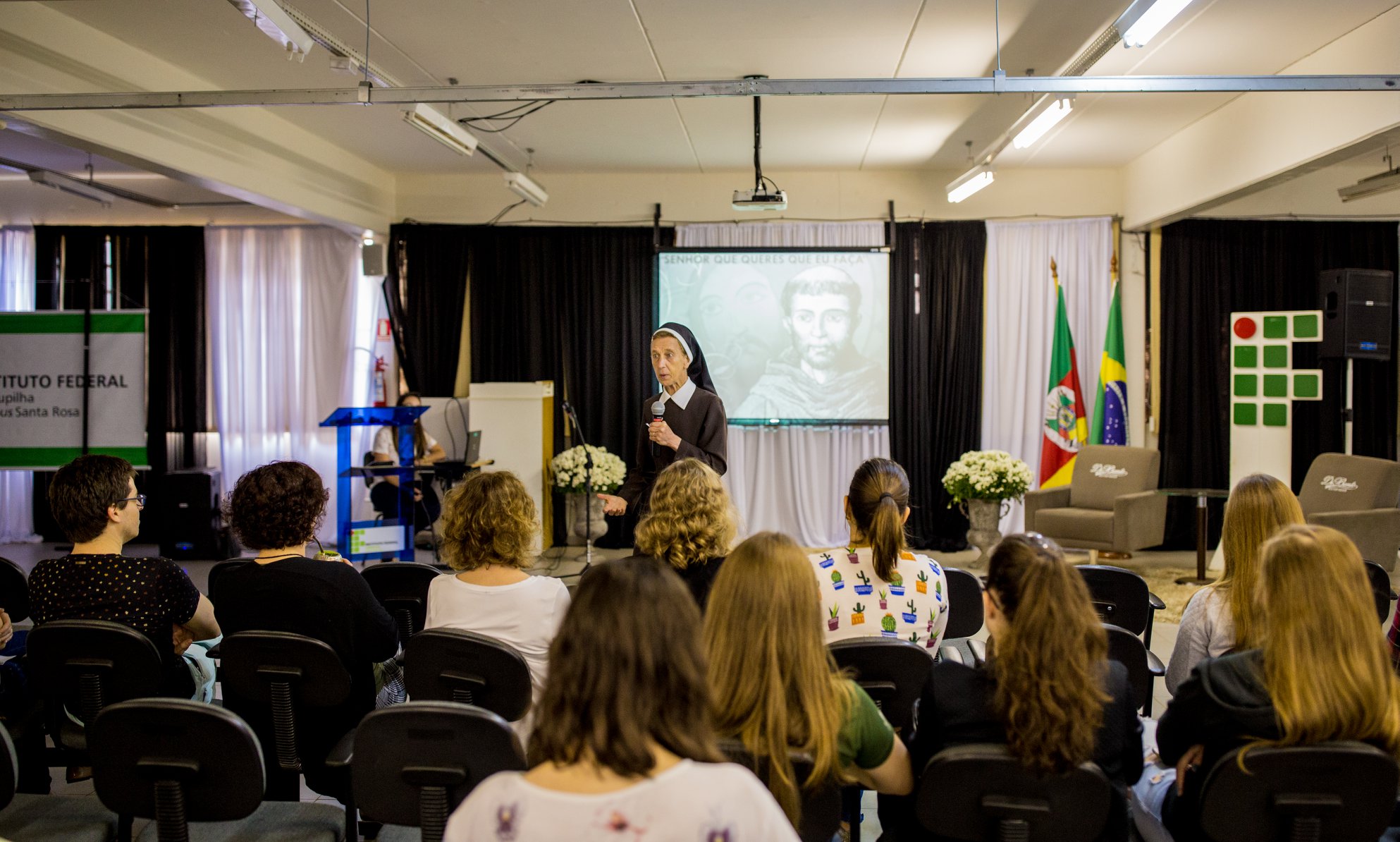 O primeiro dia de evento foi voltado ao debate sobre sustentabilidade e preservação, e contou com as palestras “Docência em Biologia”, ministrada pela irmã Cecília, e “Conflitos Ambientais – Barragens Garabi/Panambi”, ministrada pelos representantes do Movimento Atingidos por Barragens (MAB), Teresa Pessoa e Pedrinho Escher. Também houve apresentação musical de abertura, com Oldison Klock.