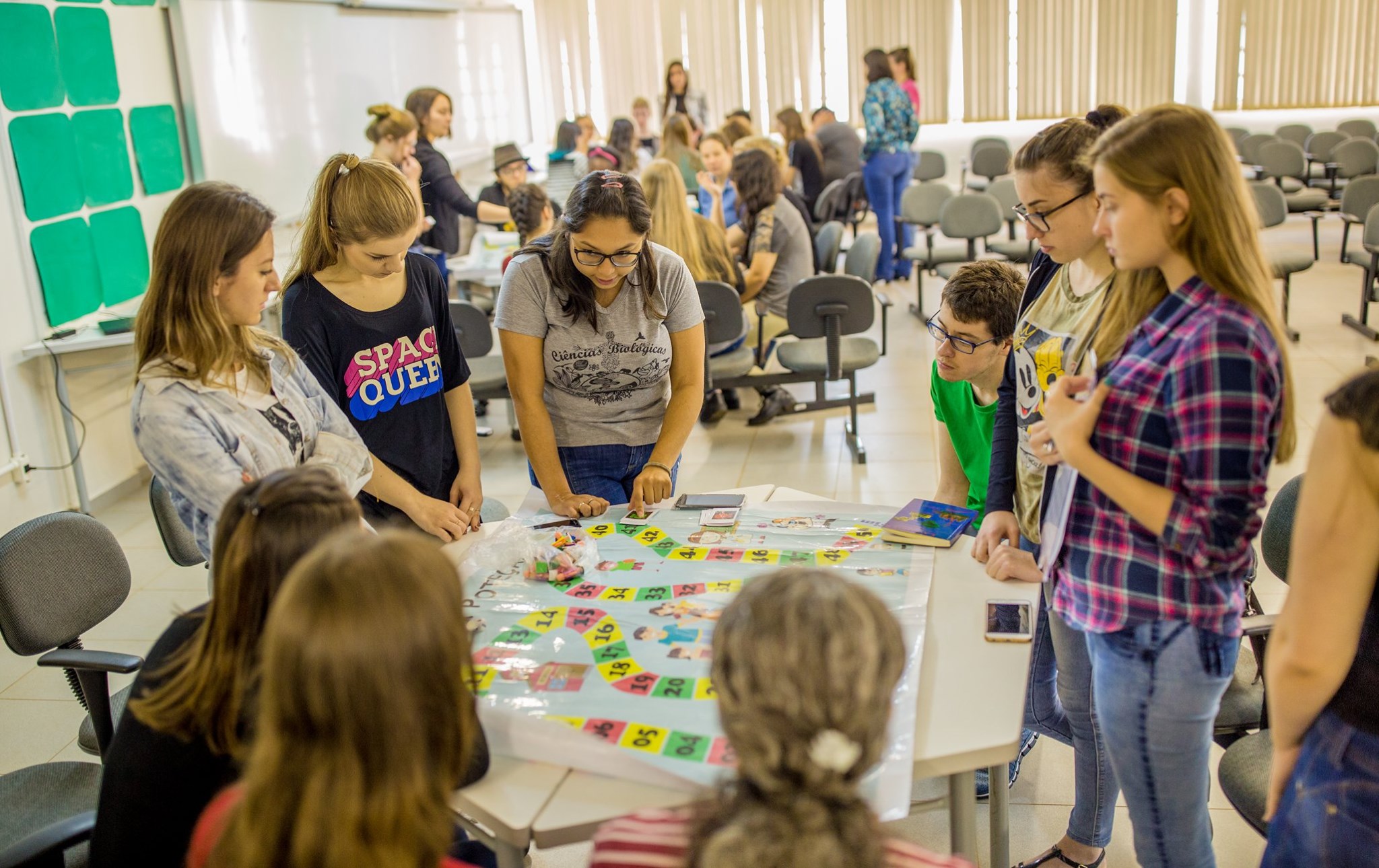 No segundo momento, a professora Dra. Rúbia Emmel ministrou a palestra com a temática: "Jogo: a trilha da proteção". O jogo foi desenvolvido pelos acadêmicos do curso, na disciplina de Prática Enquanto Componente Curricular II, com a temática sobre sexualidade.