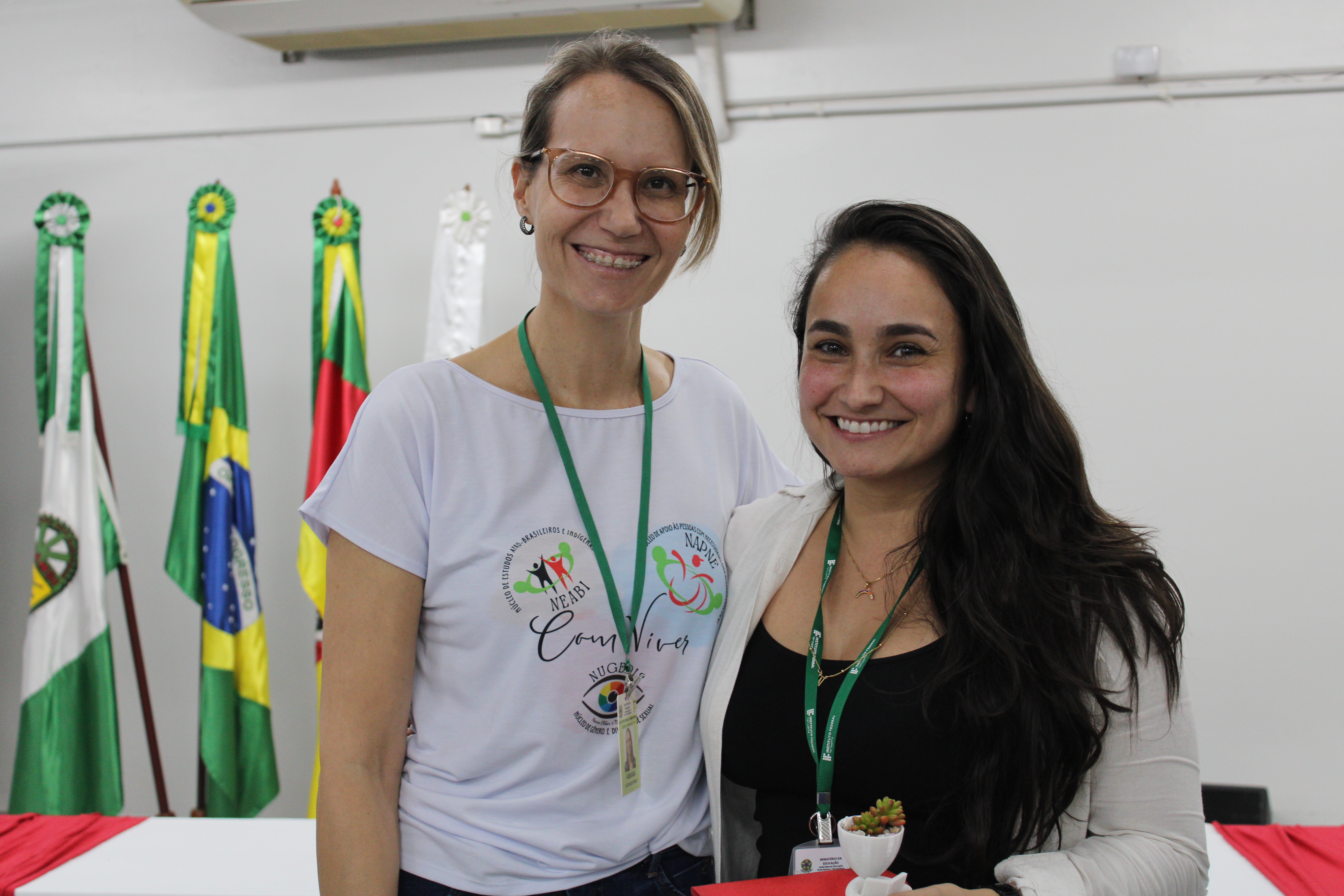 Drª. Juliana Ferreira da Silva e Pós Graduanda Adriele Fürstenau (Núcleo de Gênero e Diversidade Sexual - NUGEDIS)