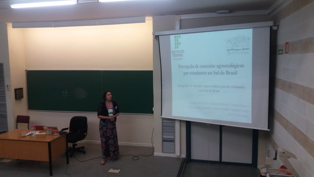 Professora Vanusa, do IFFar-SVS, apresentou dois trabalhos, o primeiro integrando o GT Educação Formal; e o segundo o GT Análisis biofísico de los sistemas agroalimentarios.