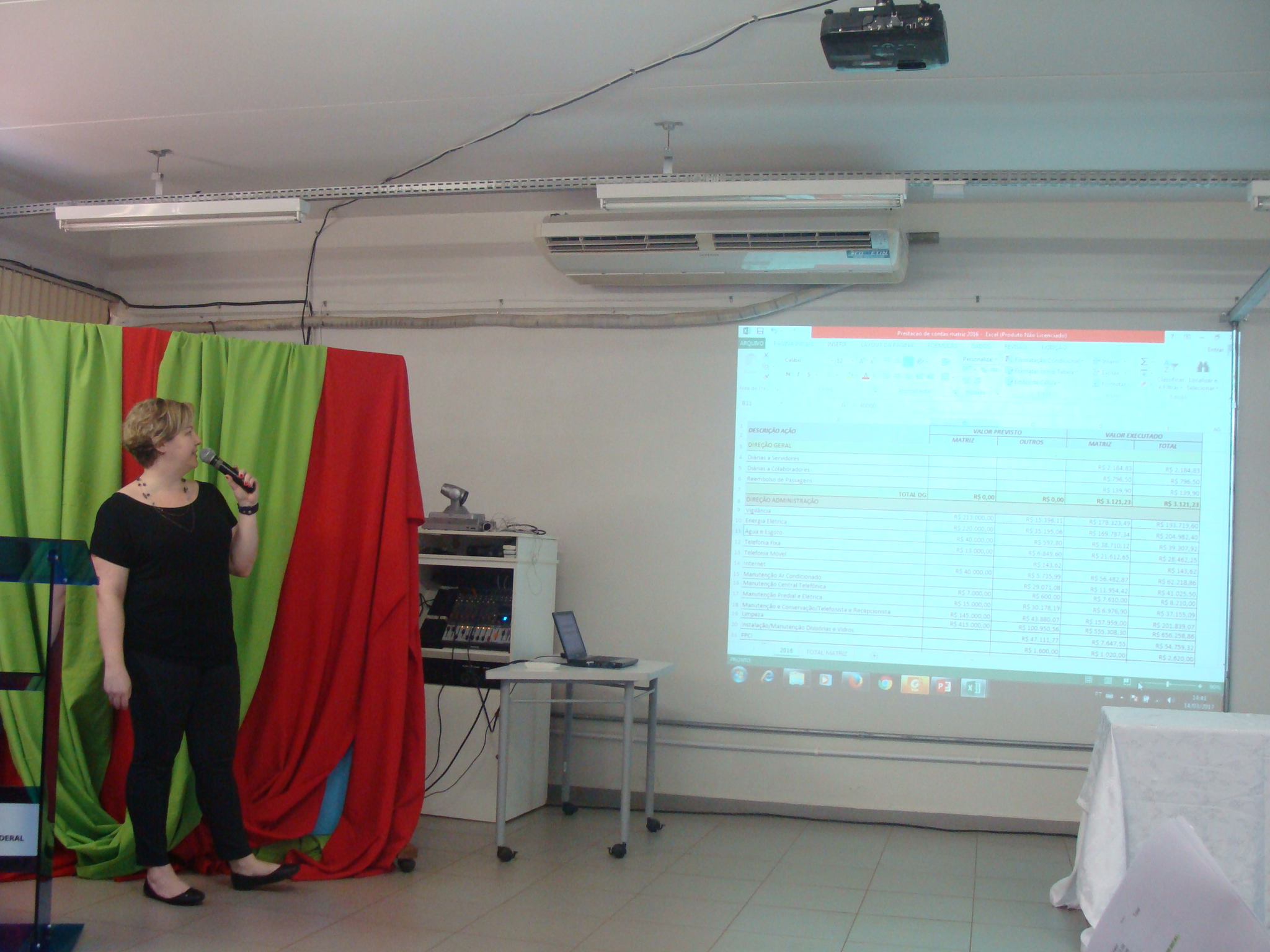 A próxima fala da tarde foi da Coordenadora Geral de Ensino, Rosangela Mariotto, na ocasião representando a Diretora Joseane Erbice. Rosangela explanou sobre os eventos, projetos, formação continuada para servidores, reconhecimento de cursos e aquisições e reformas durante o ano de 2015. Também foram exibidas as ações realizadas pela Coordenação Geral de Ensino (CGE) e pelo Setor de Apoio Pedagógico (SAP). Na oportunidade, Anderson Fetter, Coordenador da Assistência Estudantil, exibiu todo o trabalho realizado por sua equipe, inclusive os números de atendimentos realizados no ano passado.