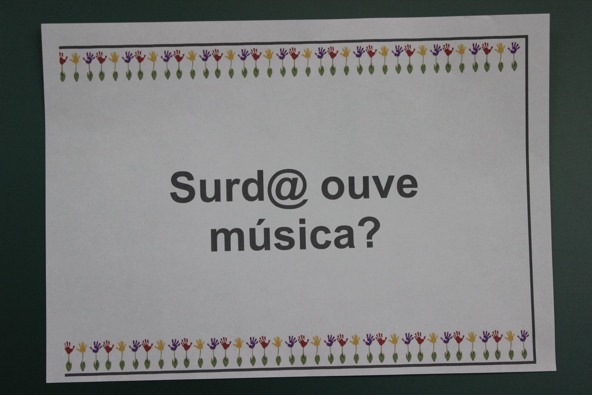 Nas explanações, os integrantes do NAPNE contextualizam a data e aspectos principais acerca do Surdo e sobre a Libras, apoiados na distribuição do folder “Aprendendo sobre a Surdez”, instigando a tod@s a desenvolver ao menos formas básicas de comunicação com colegas surd@s.