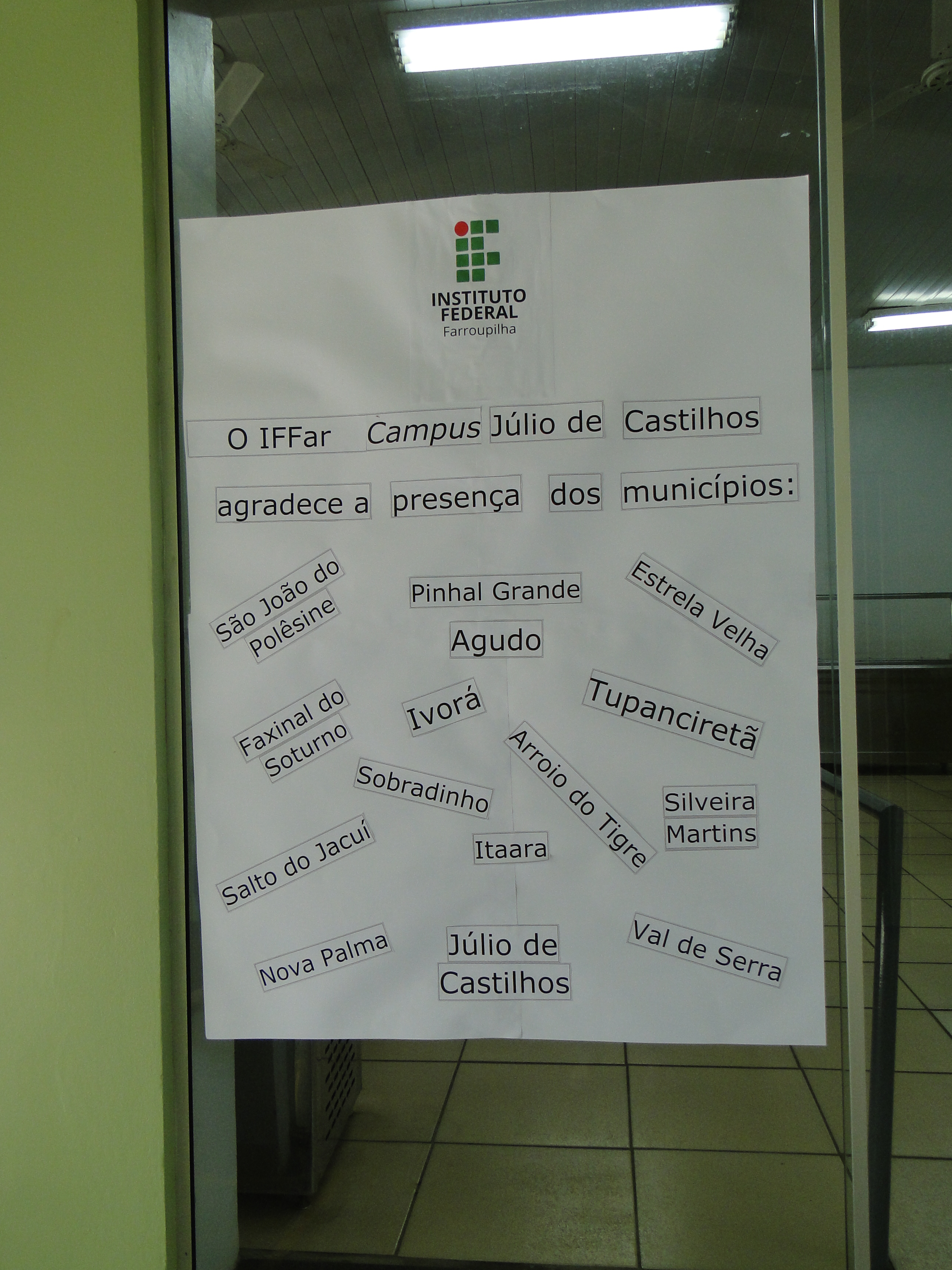 No dia de ontem (29/09) aconteceu, nas dependências do Campus Júlio de Castilhos do Instituto Federal Farroupilha, o Dia de Campus. O Dia de Campus consiste em evento para apresentar o campus ao futuro aluno do IFFar. Essa edição foi realizada para os alunos do 9º ano e contou com cerca de 900 alunos, vindos de 16 cidades da região e de 37 escolas.