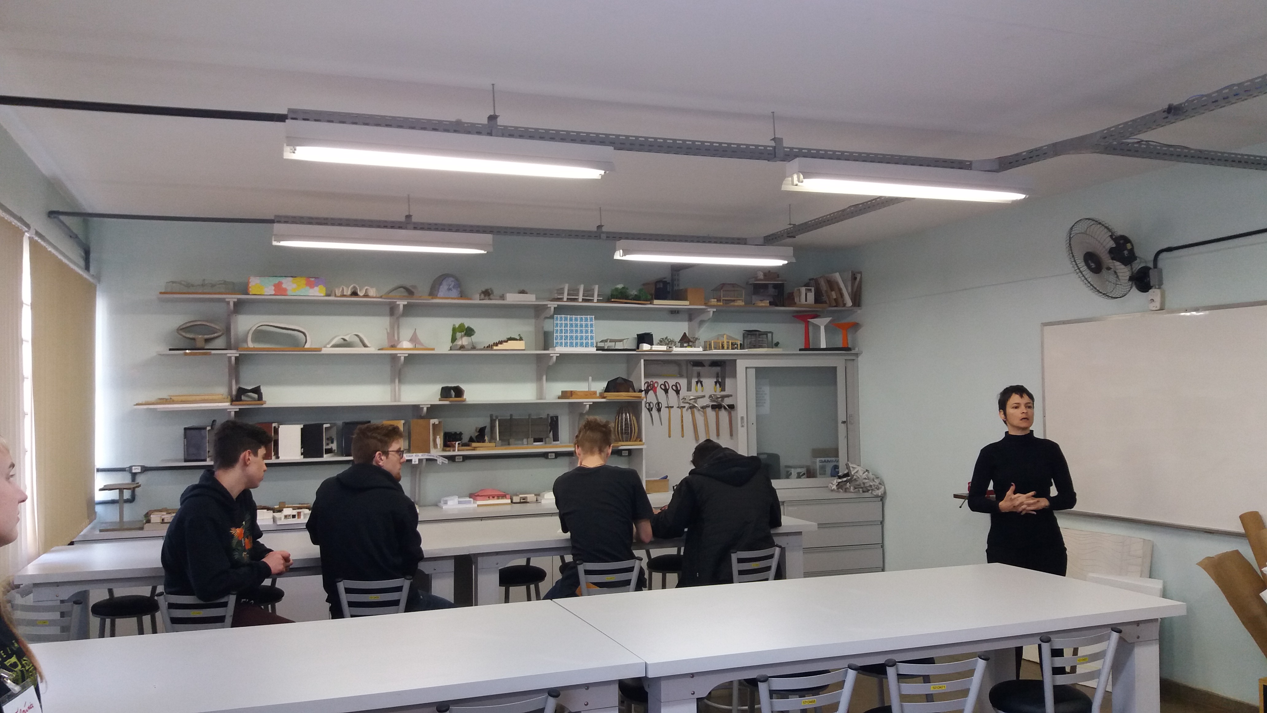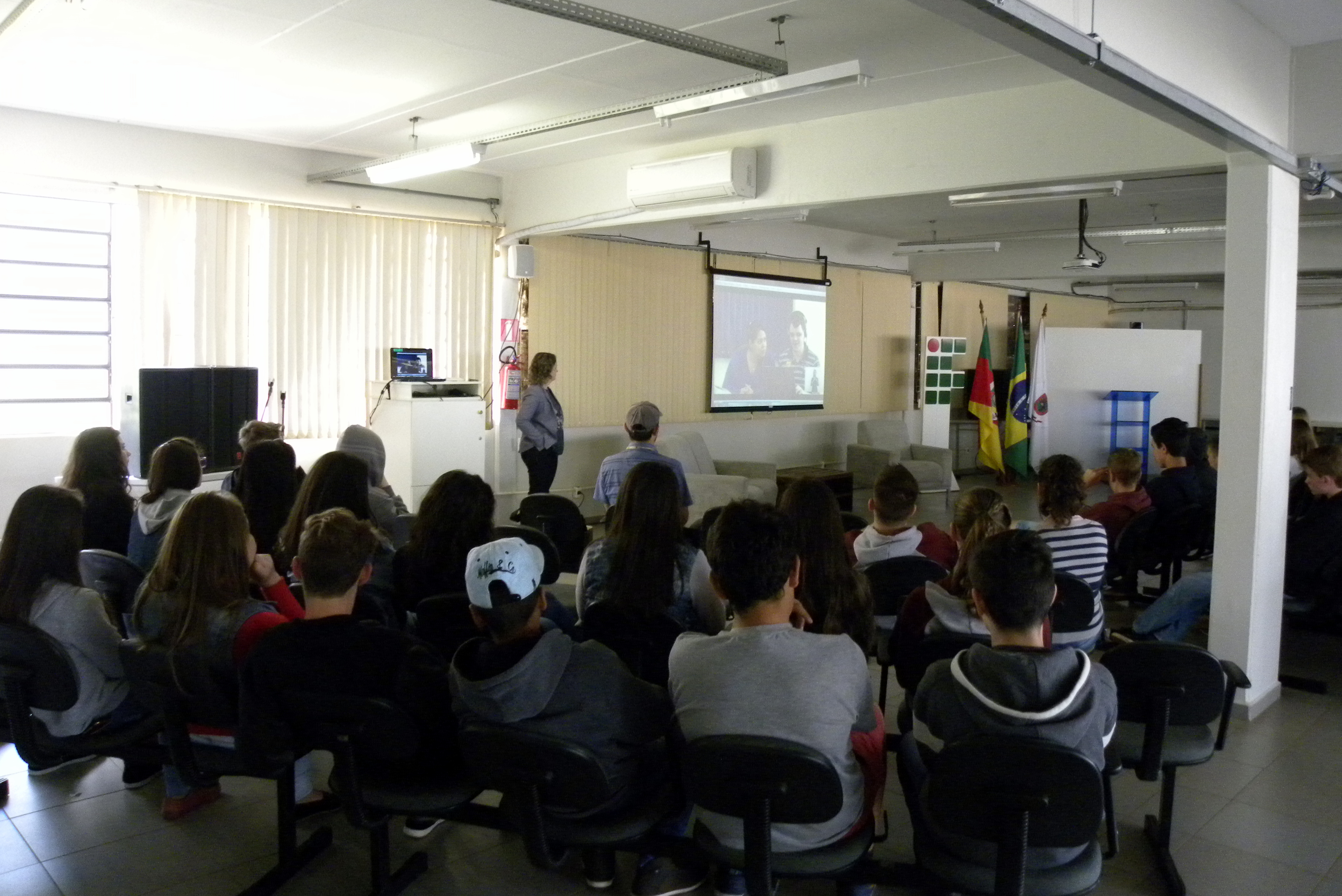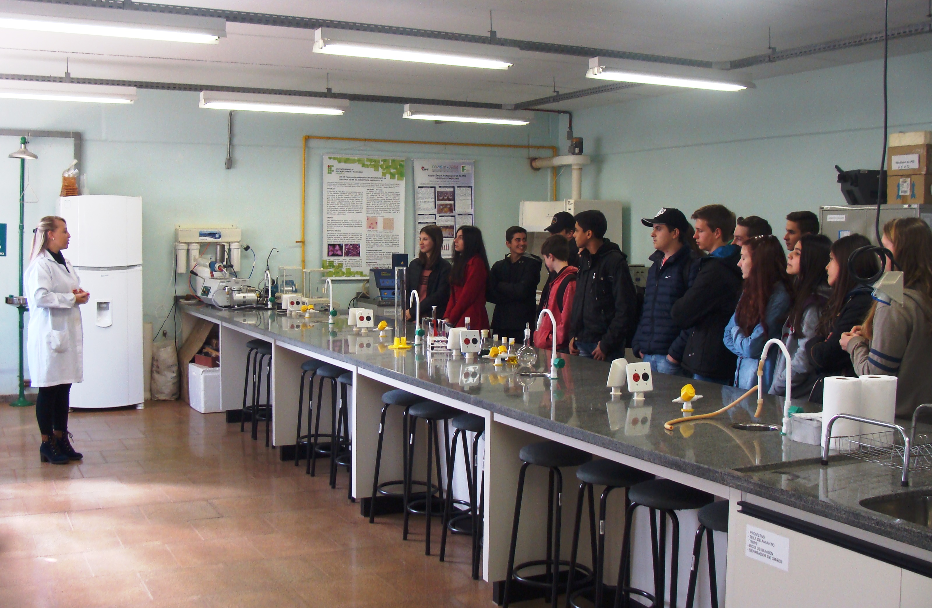 Durante a visita, os alunos assistem ao vídeo institucional do IF Farroupilha e conhecem os laboratórios de Ciências, de Móveis, de Edificações, a Sala de Artes, biblioteca e demais dependências. “Nós damos orientações gerais sobre o processo seletivo, falamos sobre o sistema de cotas e ainda sobre a assistência estudantil”, explica a professora Melissa Walter.