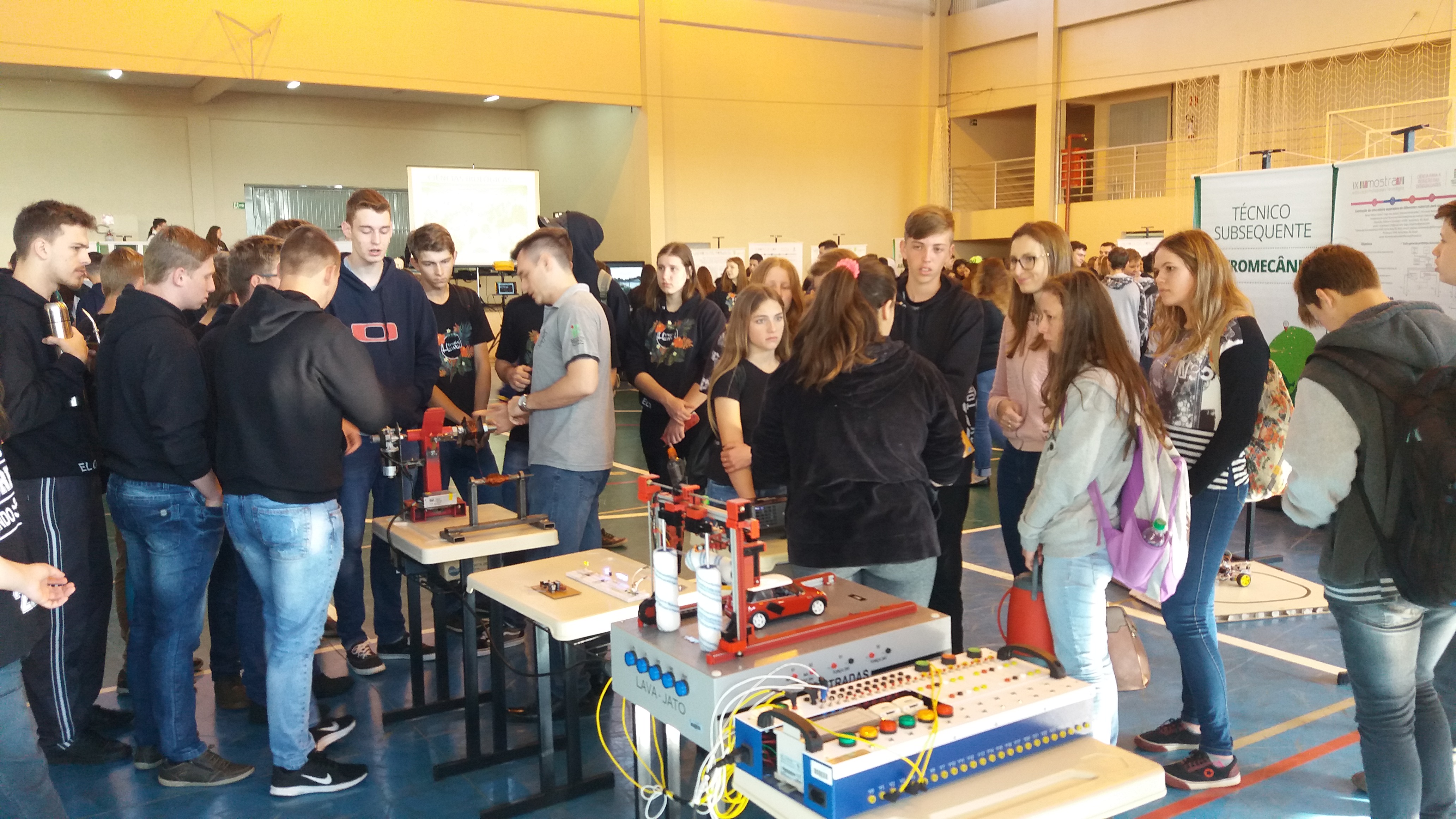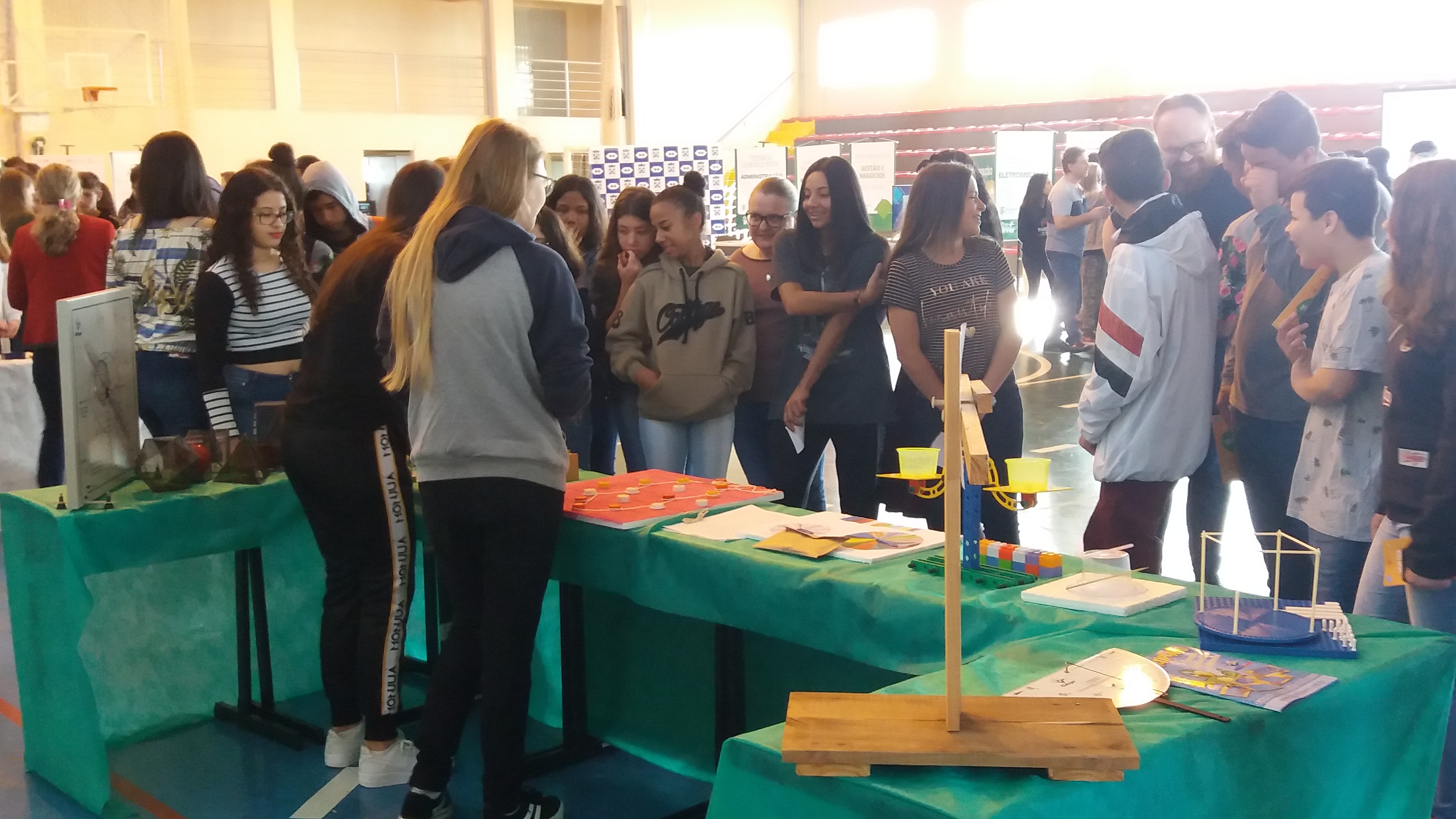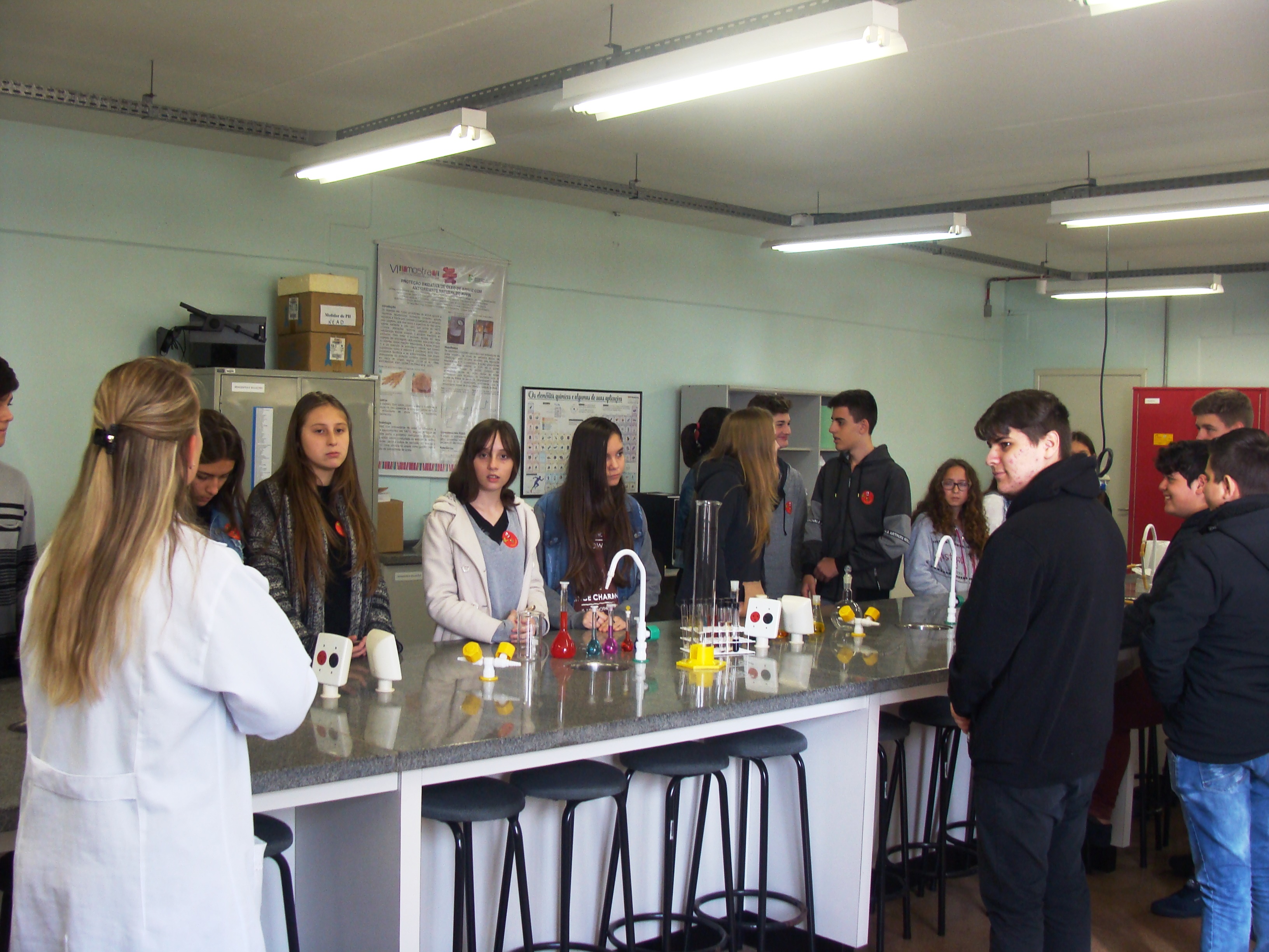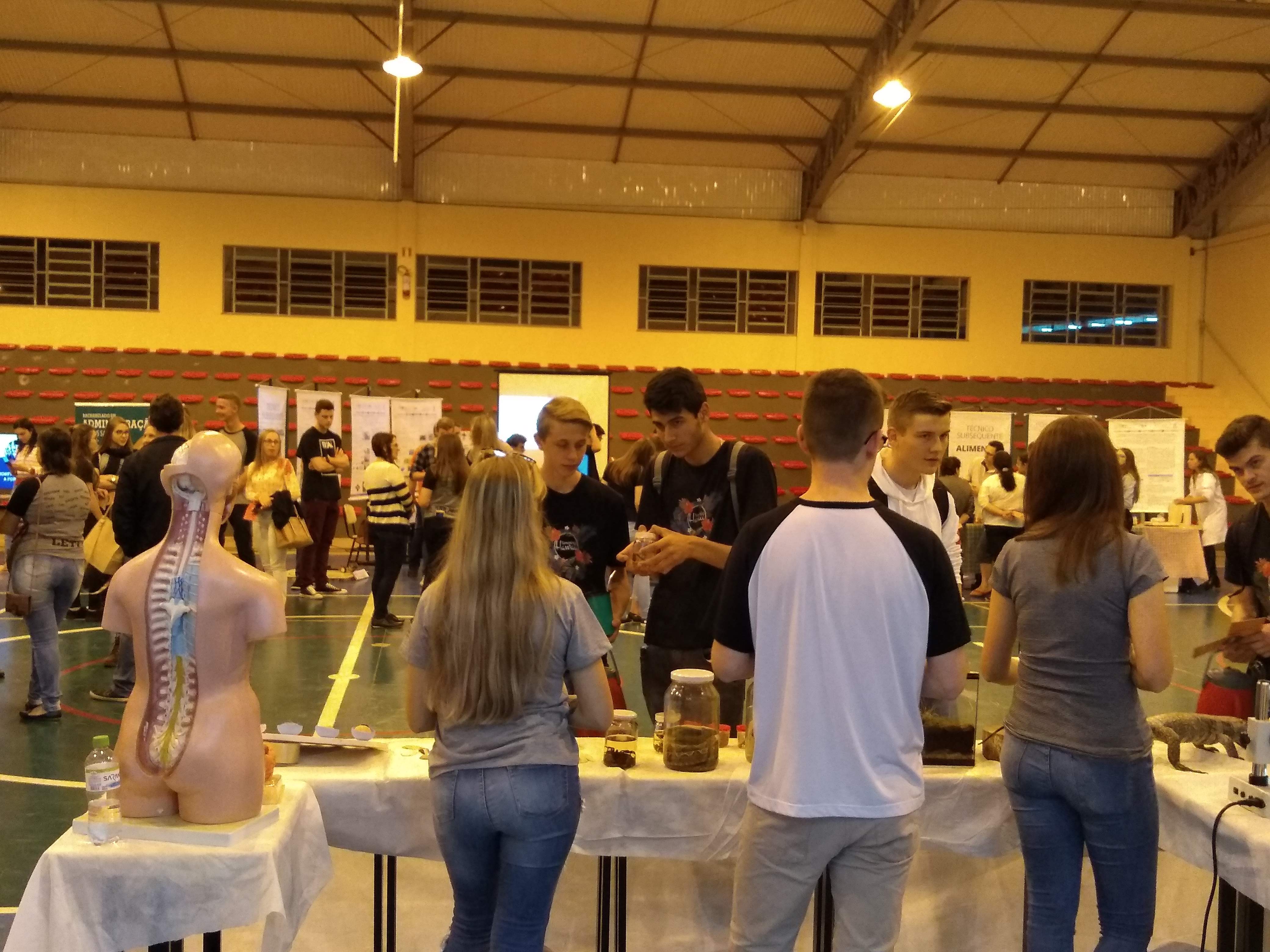 Os visitantes foram recepcionados e guiados por alunos dos terceiros anos e bolsistas voluntários. Para a coordenadora do evento, Jane Ropke, “os visitantes sentem-se mais à vontade para fazer perguntas tendo os alunos como guias, pois se identificam mais com eles”.