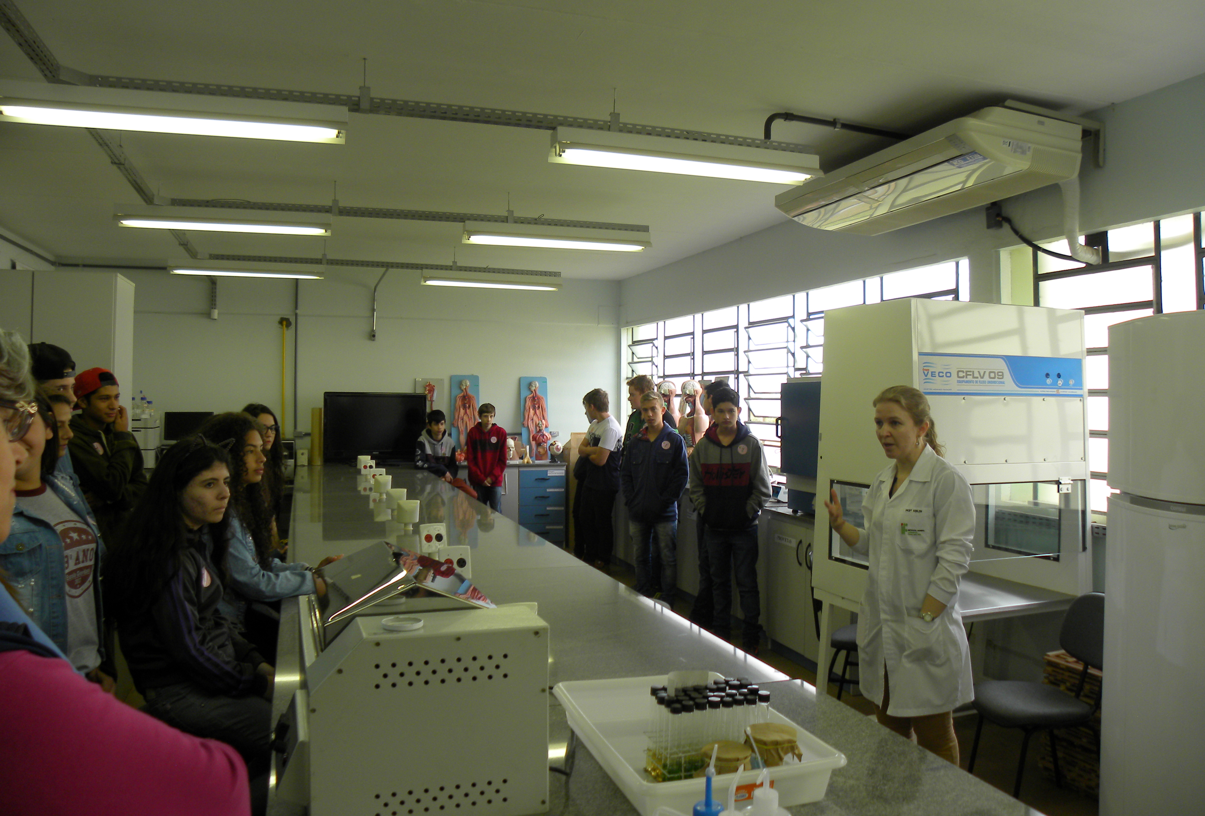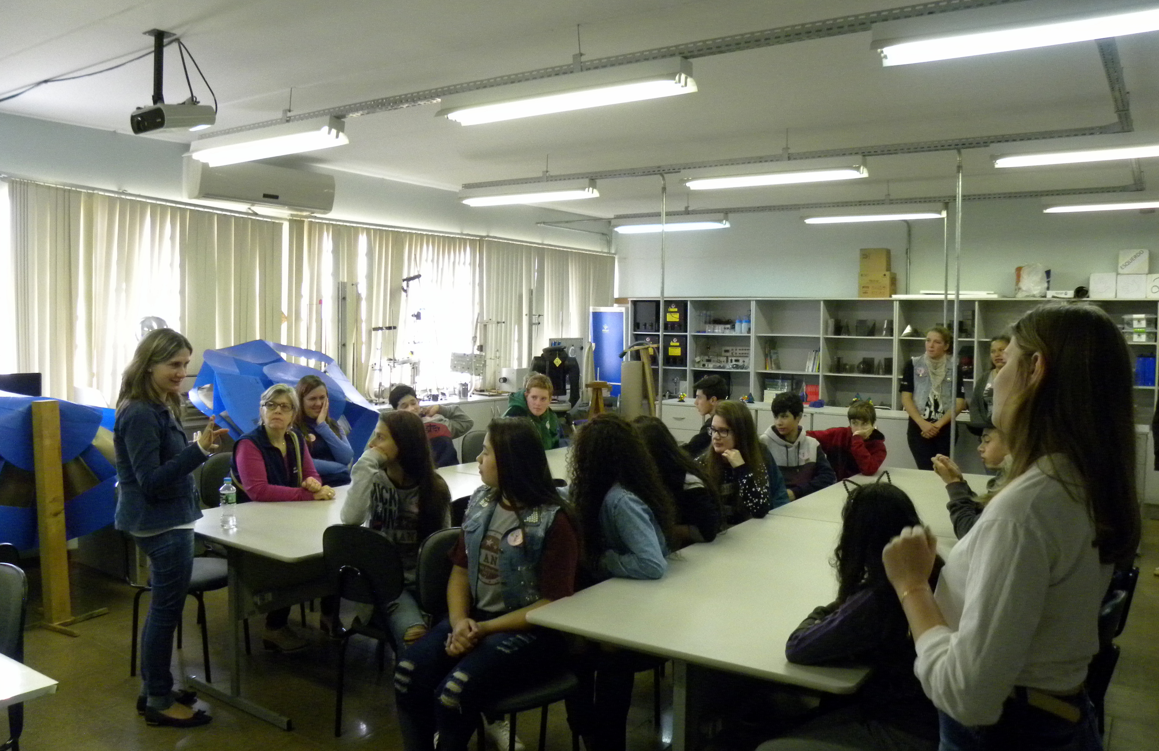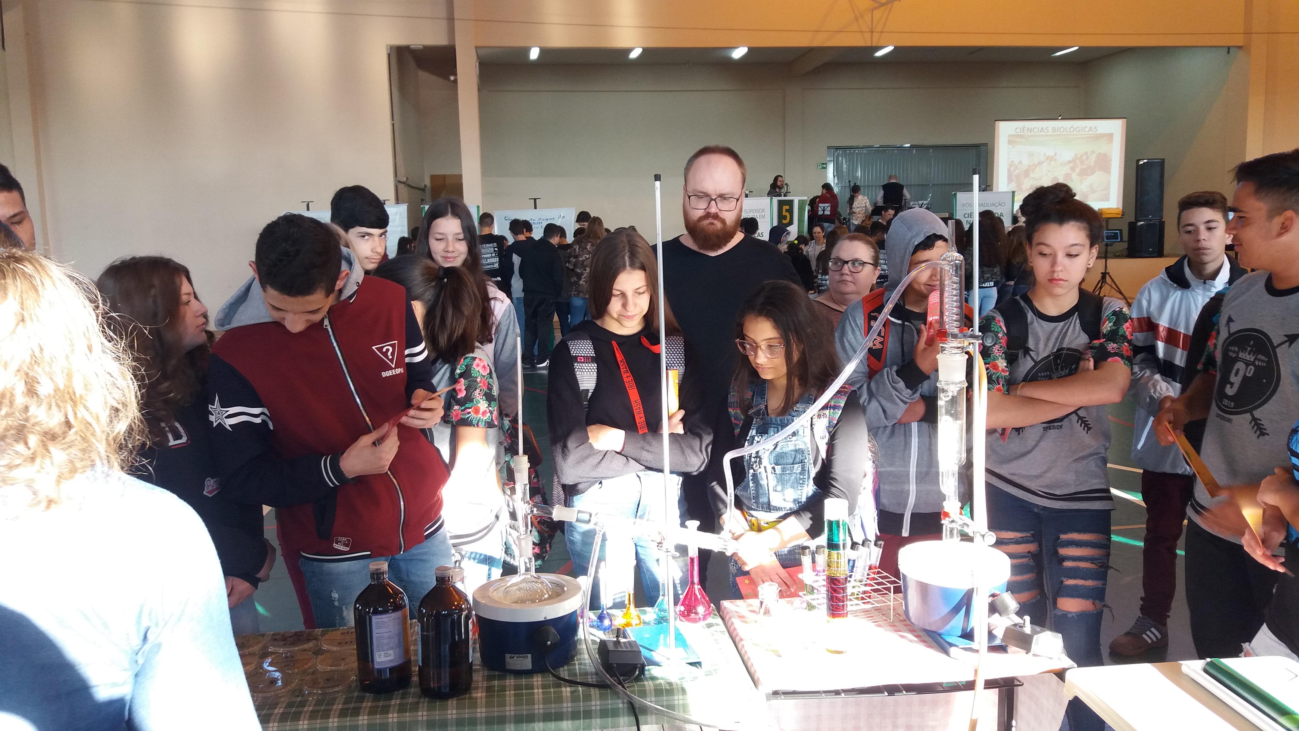 Os visitantes foram recepcionados e guiados por alunos dos terceiros anos e bolsistas voluntários. Para a coordenadora do evento, Jane Ropke, “os visitantes sentem-se mais à vontade para fazer perguntas tendo os alunos como guias, pois se identificam mais com eles”.