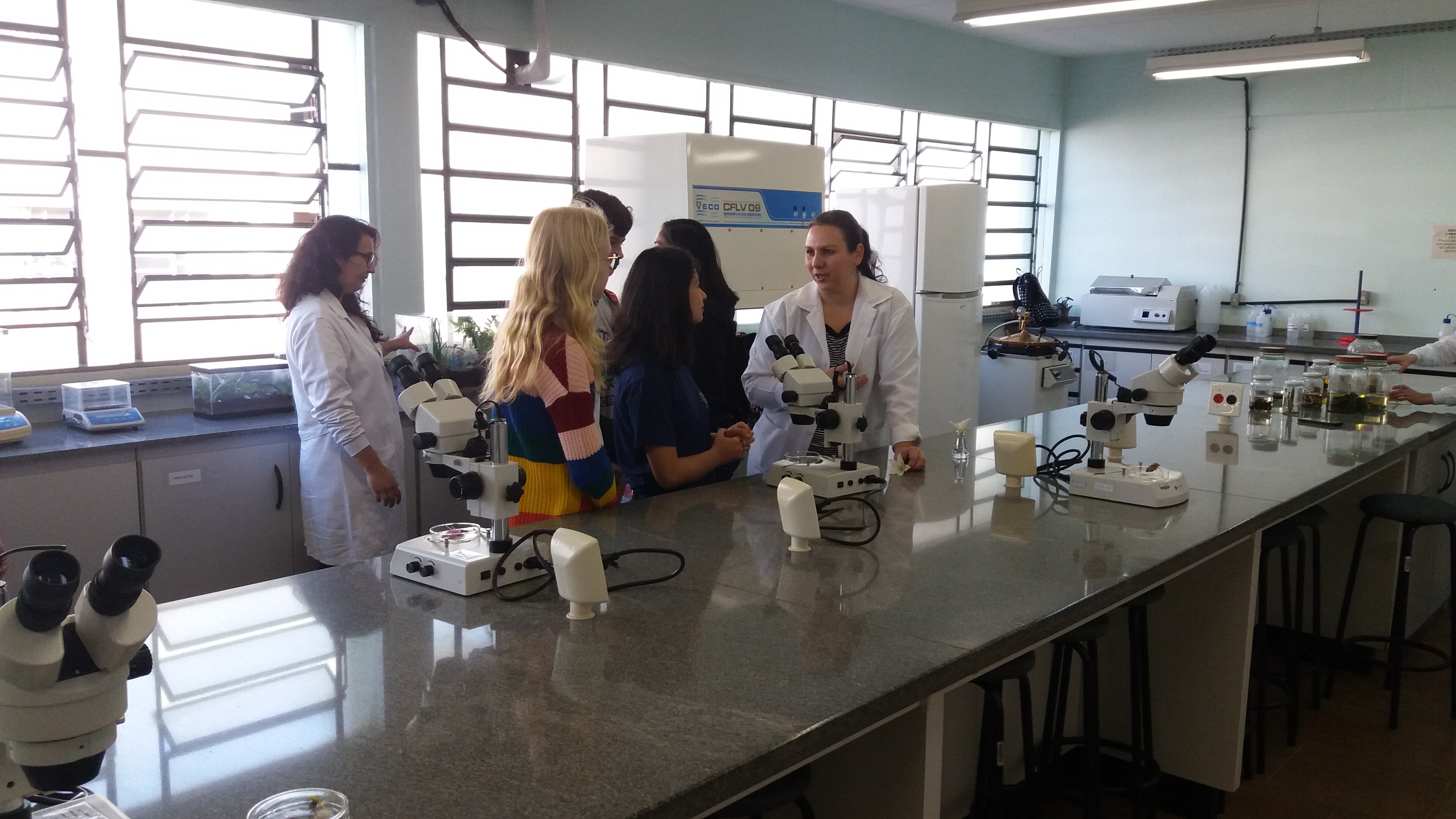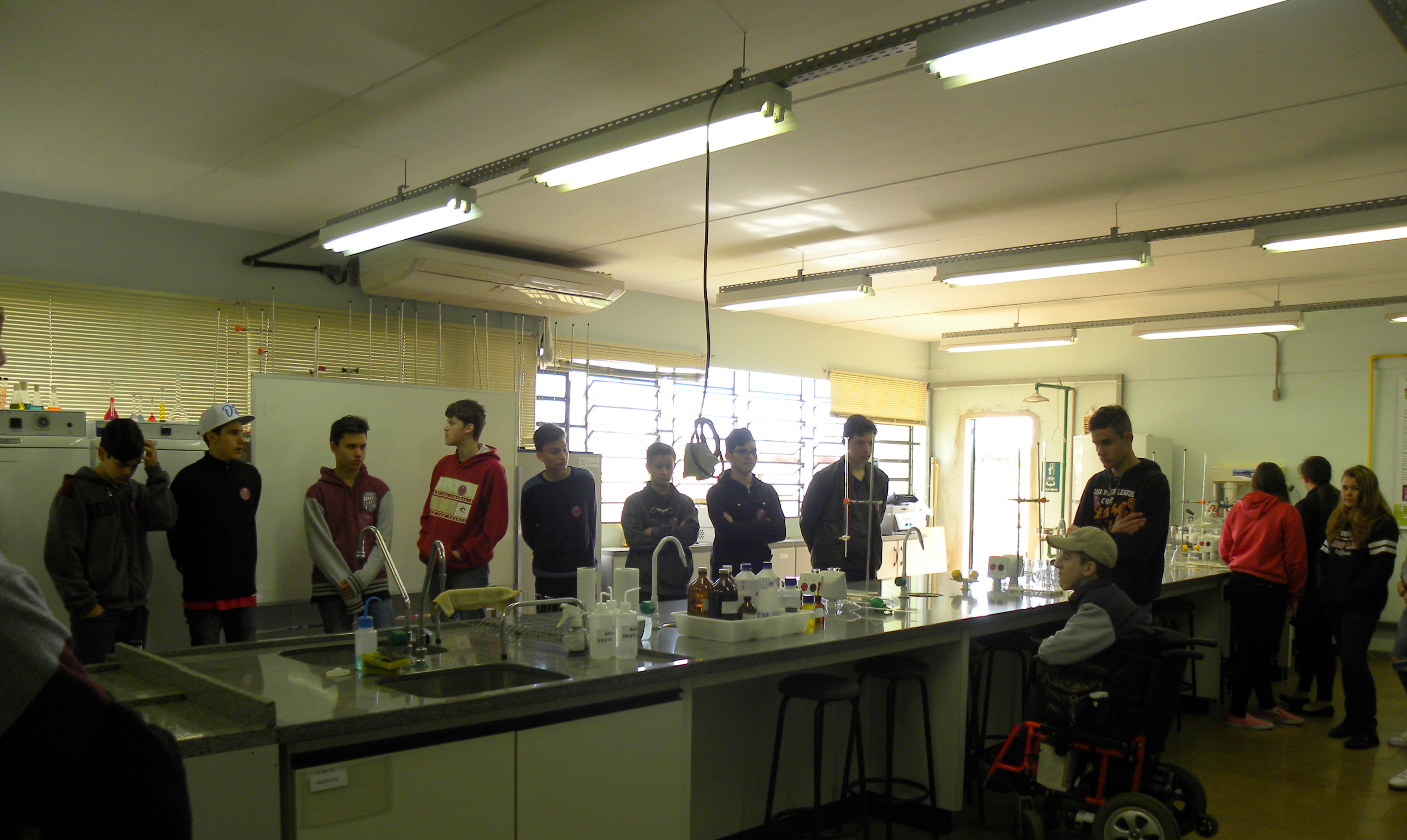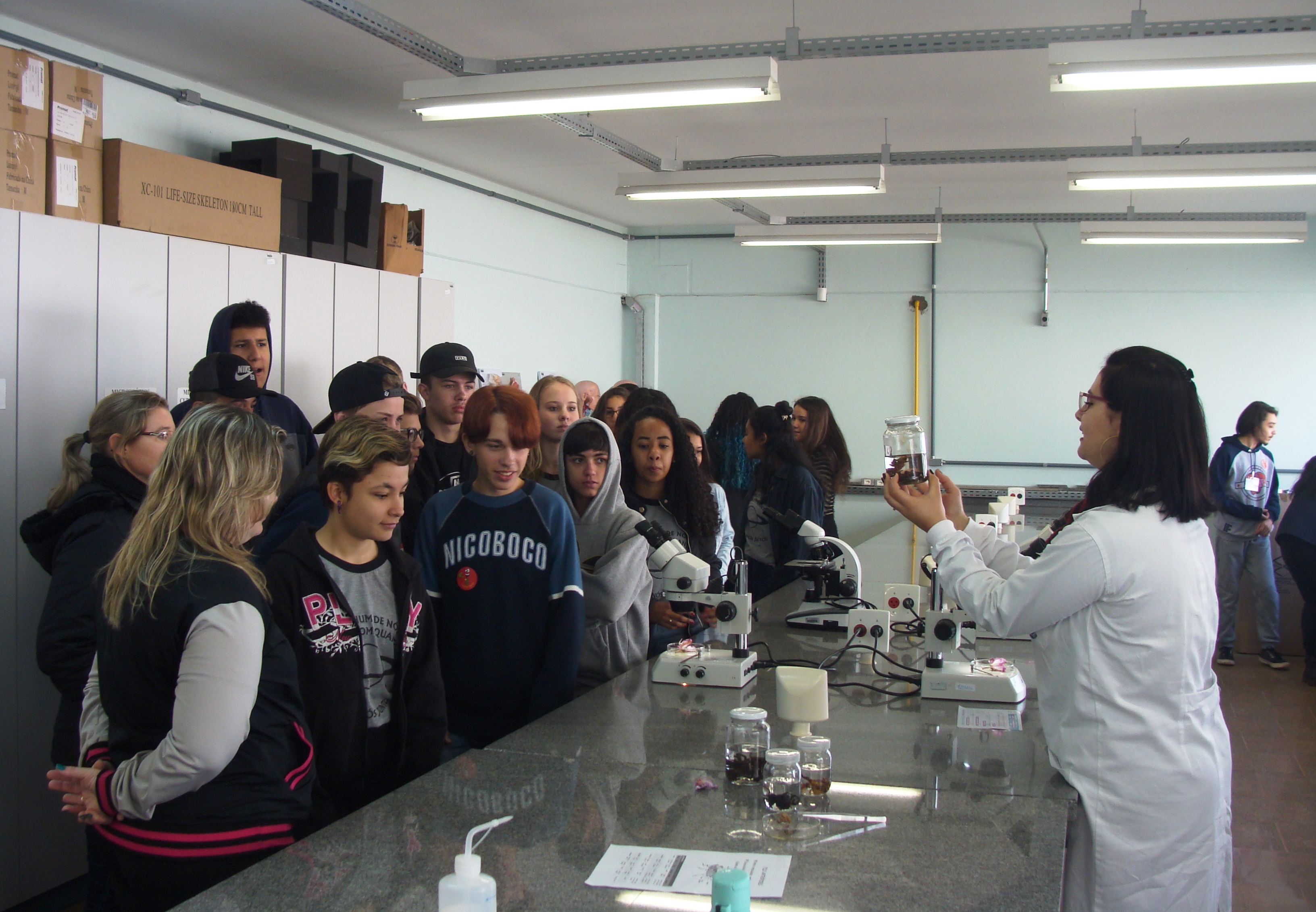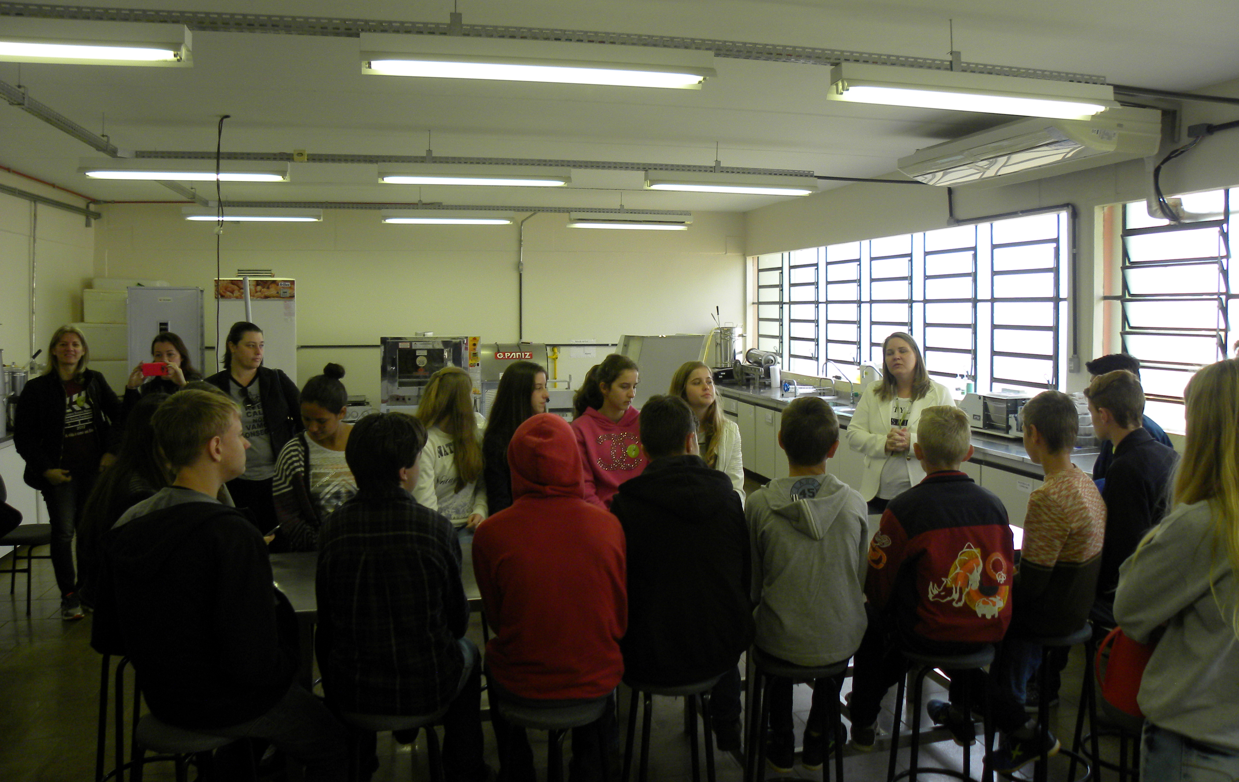 Os visitantes foram recepcionados e guiados por alunos dos terceiros anos e bolsistas voluntários. Para a coordenadora do evento, Jane Ropke, “os visitantes sentem-se mais à vontade para fazer perguntas tendo os alunos como guias, pois se identificam mais com eles”.