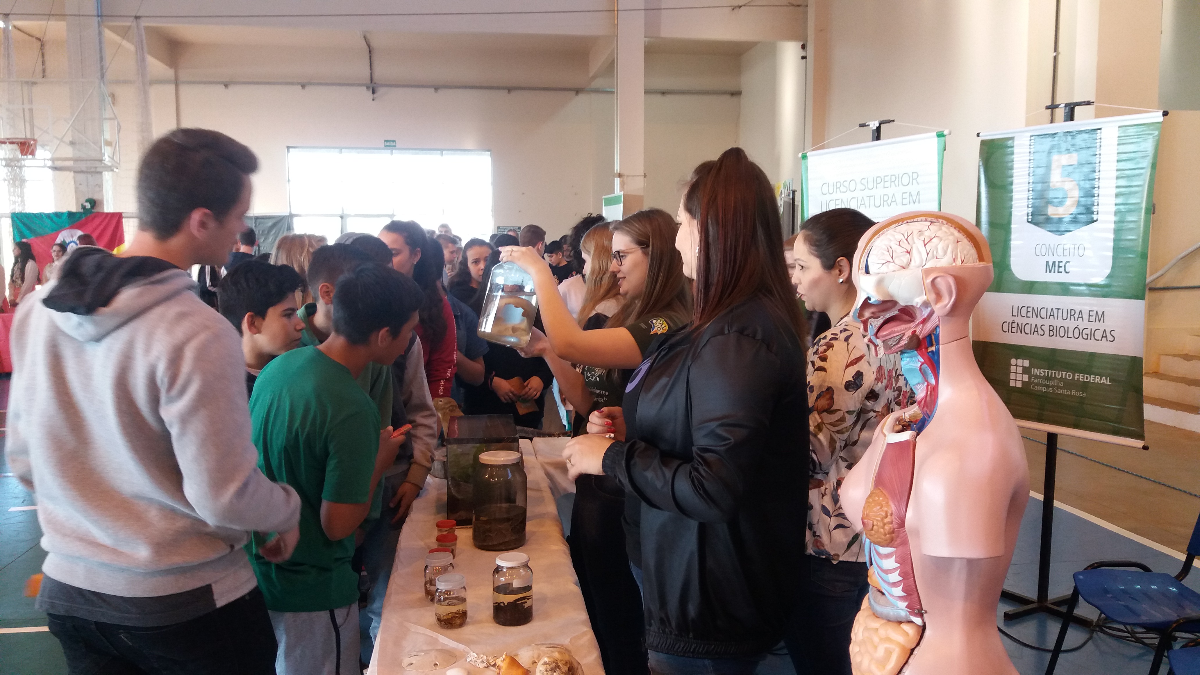 Dispostos no ginásio, cada curso, representado por seus alunos e professores, apresentou de forma teórica e prática desde atividades que são ensinadas na sala de aula, aos projetos que são desenvolvidos no campus. Alunos e servidores puderam interagir com os visitantes durante a visitação guiada para conhecer as salas de ensino, laboratórios, biblioteca e demais espaços de convivência. Uma tenda sobre o Processo Seletivo 2020 ofereceu informações sobre as formas de ingresso. O grupo de danças Sentinela Farroupilha e os alunos que fazem parte do projeto de ensino Bandas do IFFar representaram a arte e cultura em apresentações musicais. Segundo Jane Röpke, coordenadora do Fique por Dentro, o evento superou as expectativas. “É um momento muito importante para nós, pois podemos mostrar a realidade dos cursos e o que a instituição pode oferecer para a região”. Para a diretora-geral, Renata Rotta, este é um momento de troca, diálogo e aproximação com a comunidade, onde além de auxiliar os alunos na decisão da escolha do curso pretendido, evidencia-se a potencialidade da educação pública e de qualidade.