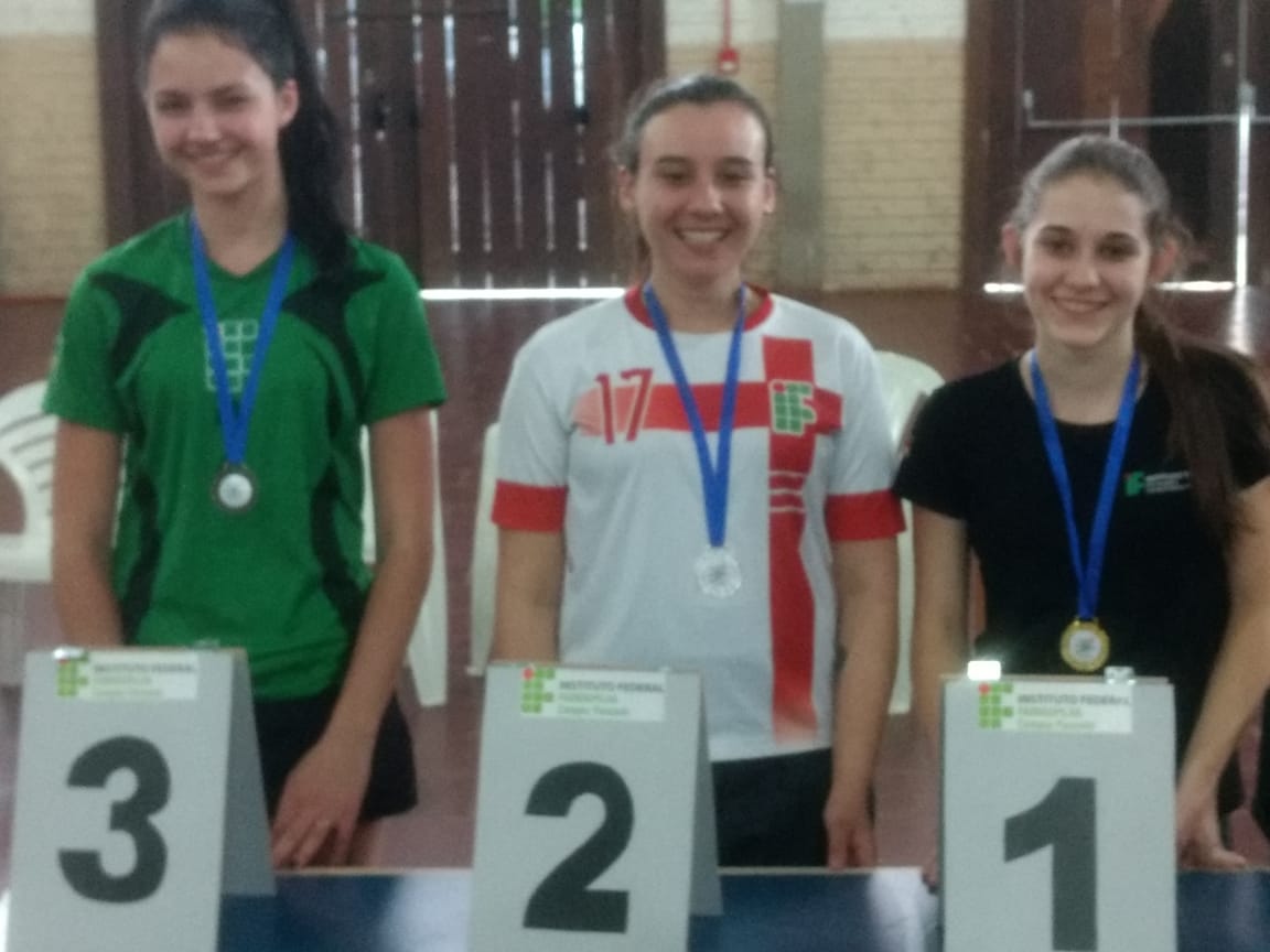 Destacamos as alunas Ana Maria, Ana Luiza Zancan e Thais Dalla Rosa que se classificaram para os Jogos dos Institutos Federais da Região Sul - JIF Sul 2018, que acontecerá na cidade de Novo Hamburgo, essa fase da disputa reúne os institutos dos estados do RS, SC e PR.