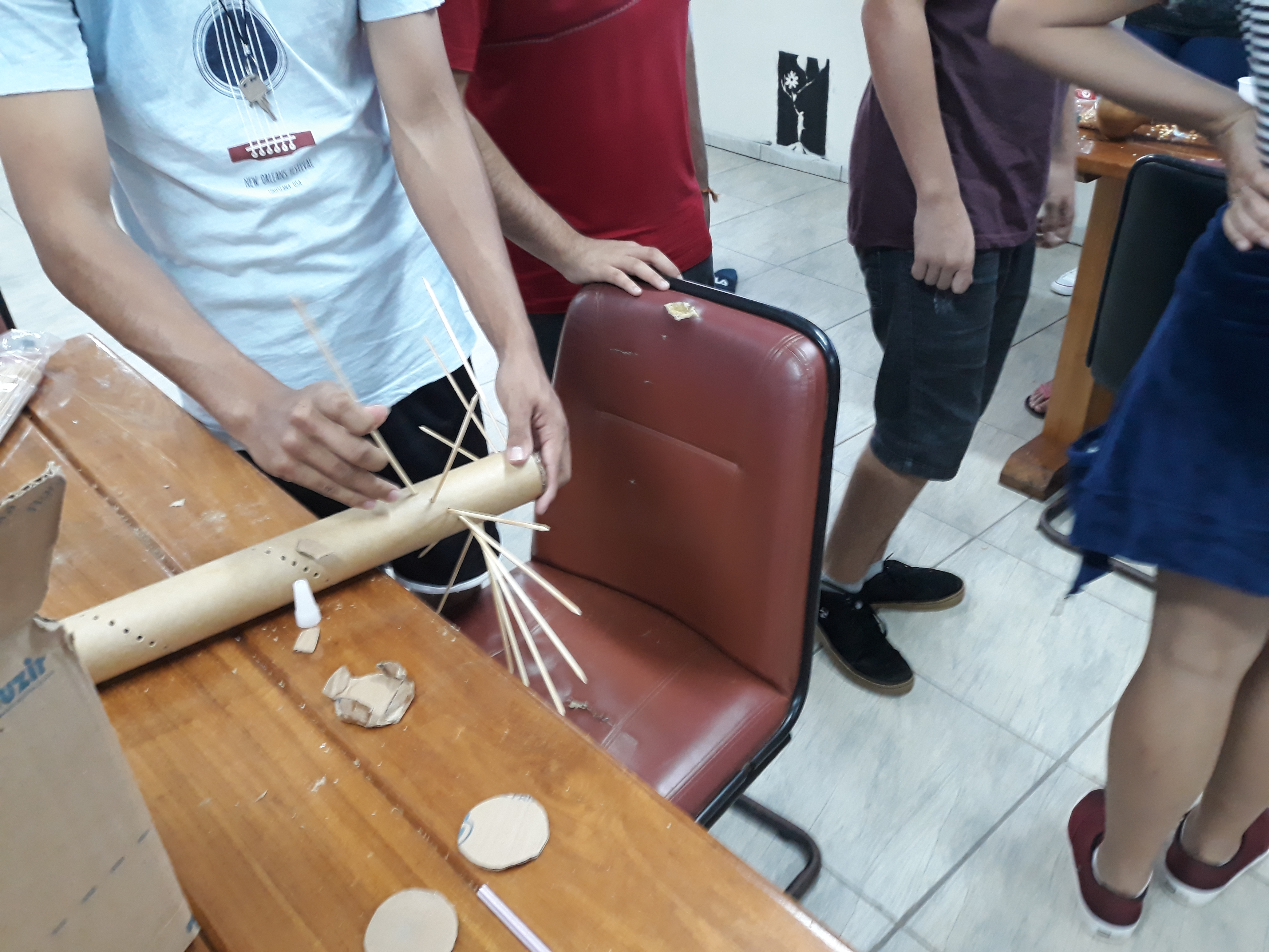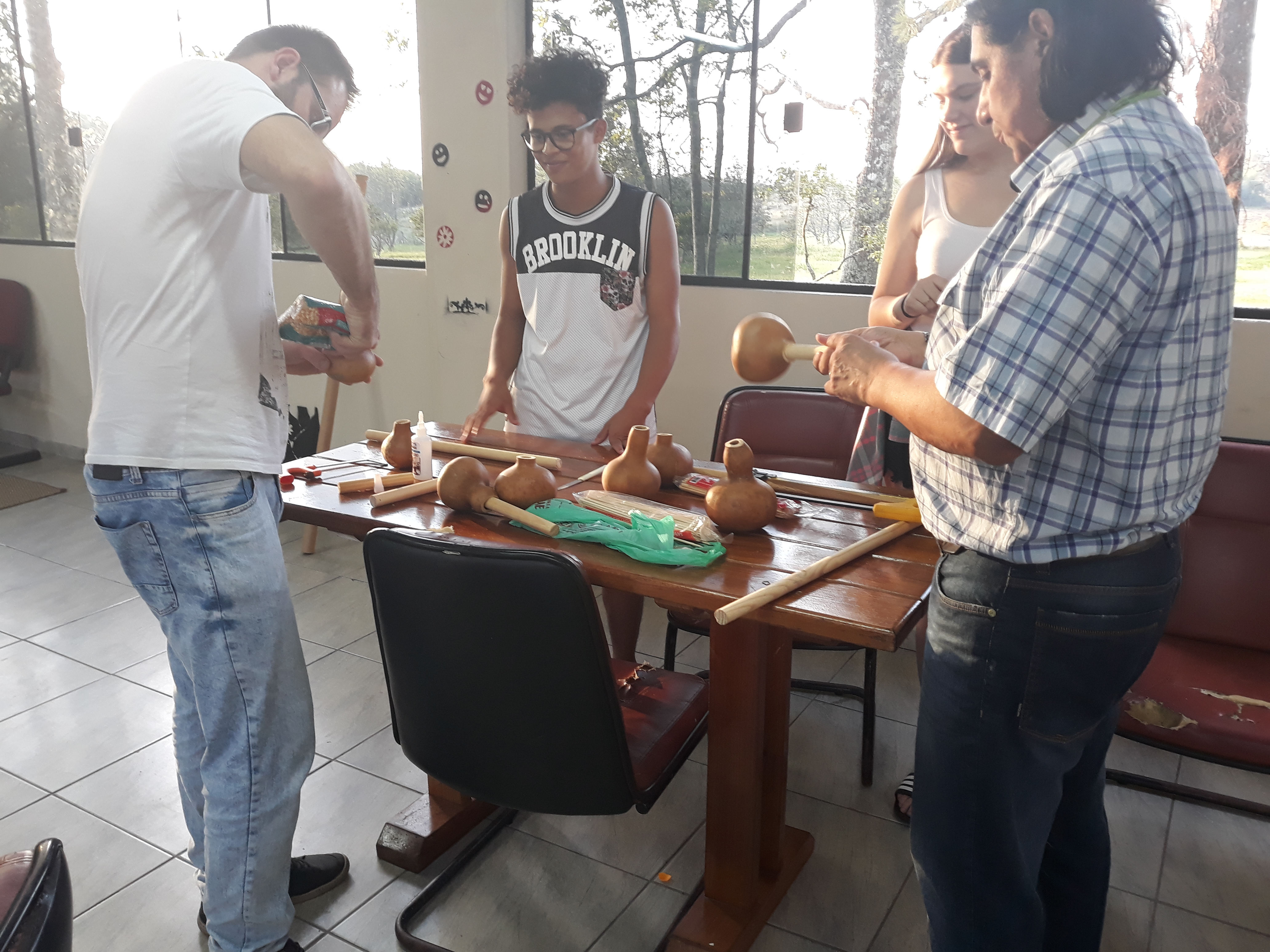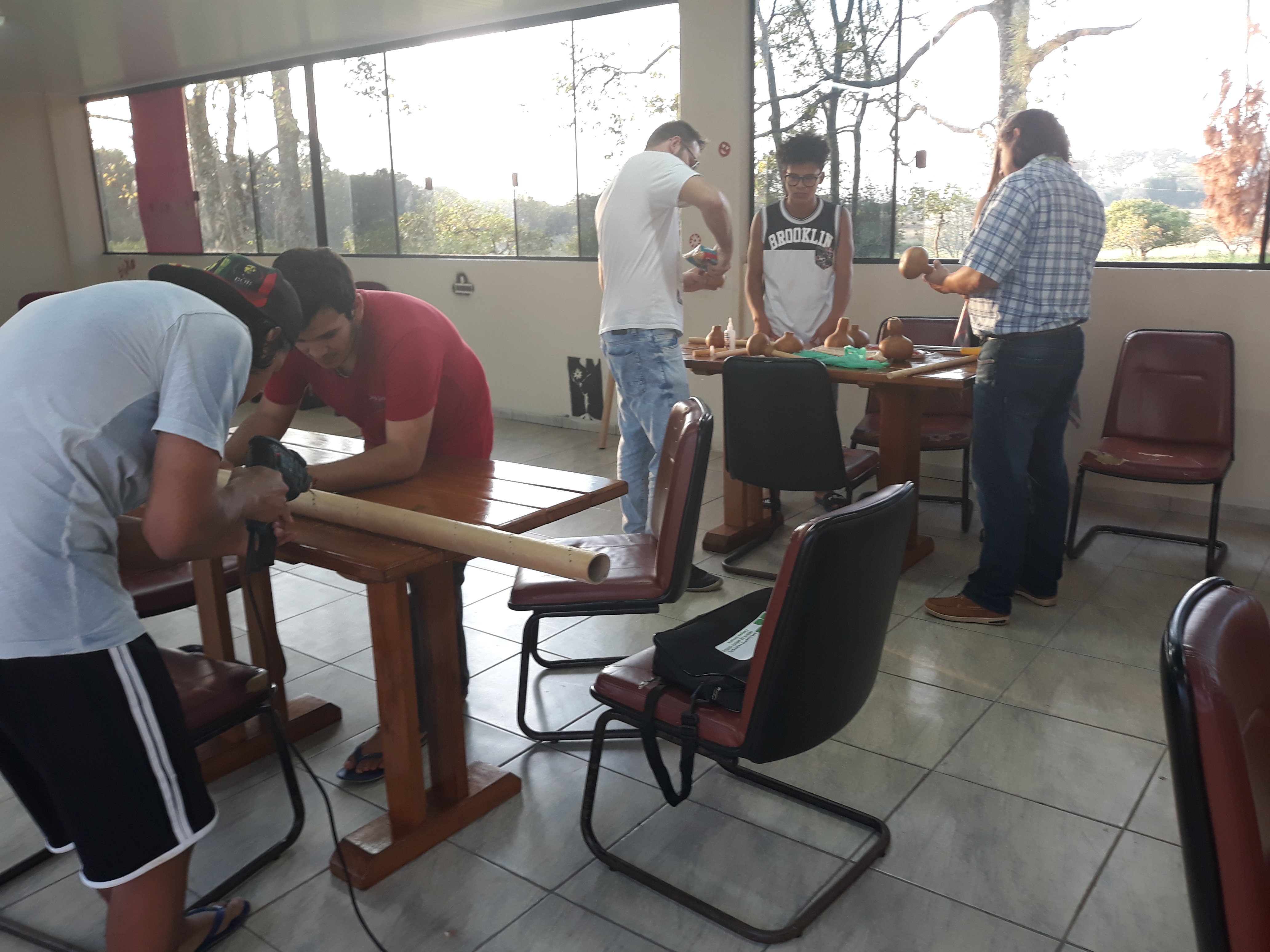 Na tarde de quinta-feira, 26/04/2018, das 17h às 19h, estudantes do ensino médio integrado e servidores do campus Jaguari participaram da oficina sobre instrumentos indígenas, promovida pelo professor Ivan Schwan, no Centro de Convivência do campus. A atividade teve como objetivo evidenciar as influências das tradições indígenas na cultura sul-riograndense. A ação foi promovida pelo NEABI/Jaguari (Núcleo de Estudos Afro-brasileiros e Indígenas), NAC (Núcleo de Arte e Cultura) e, ainda, contou com o apoio da CAE (Coordenação de Assitência Estudantil).