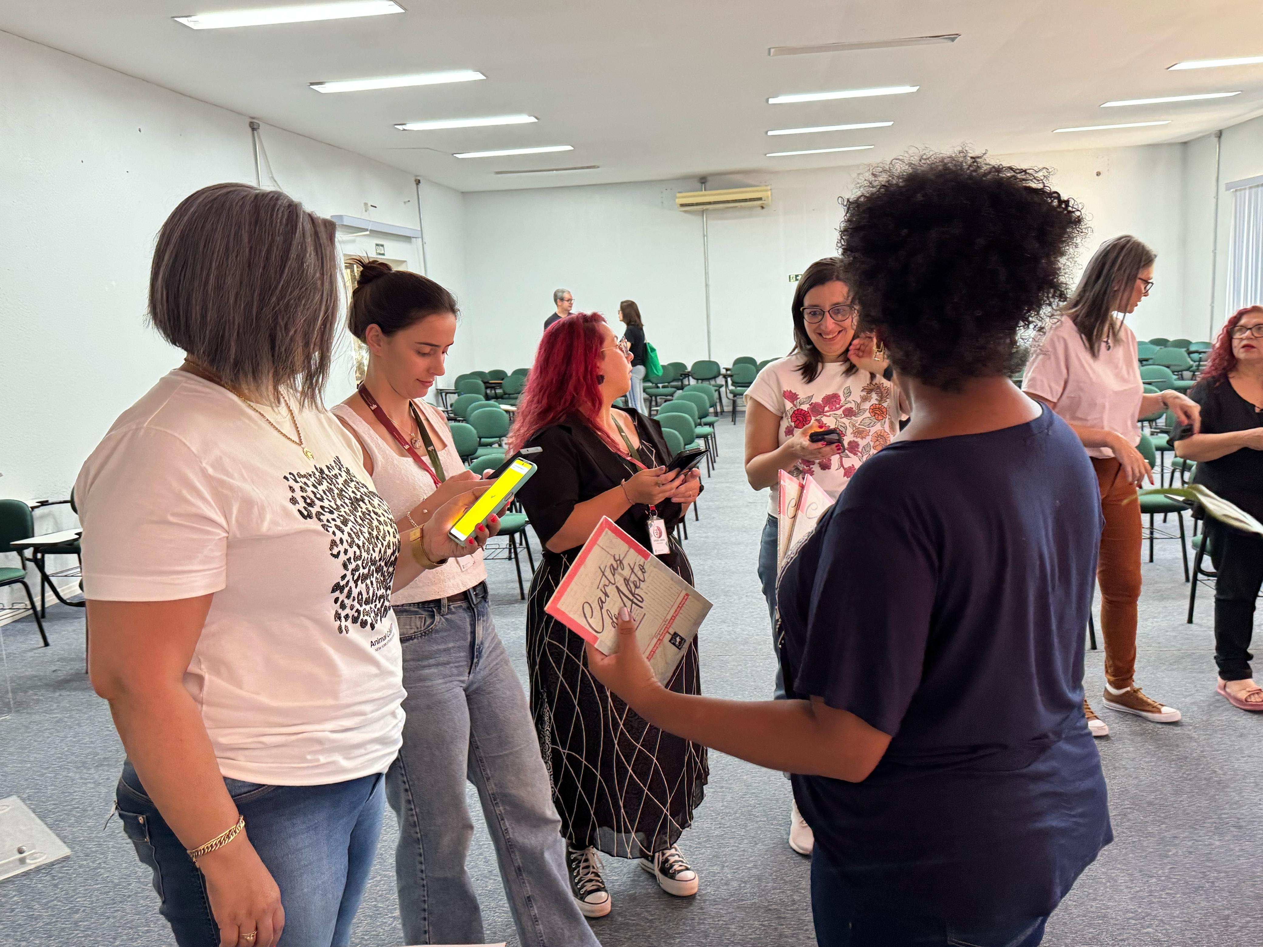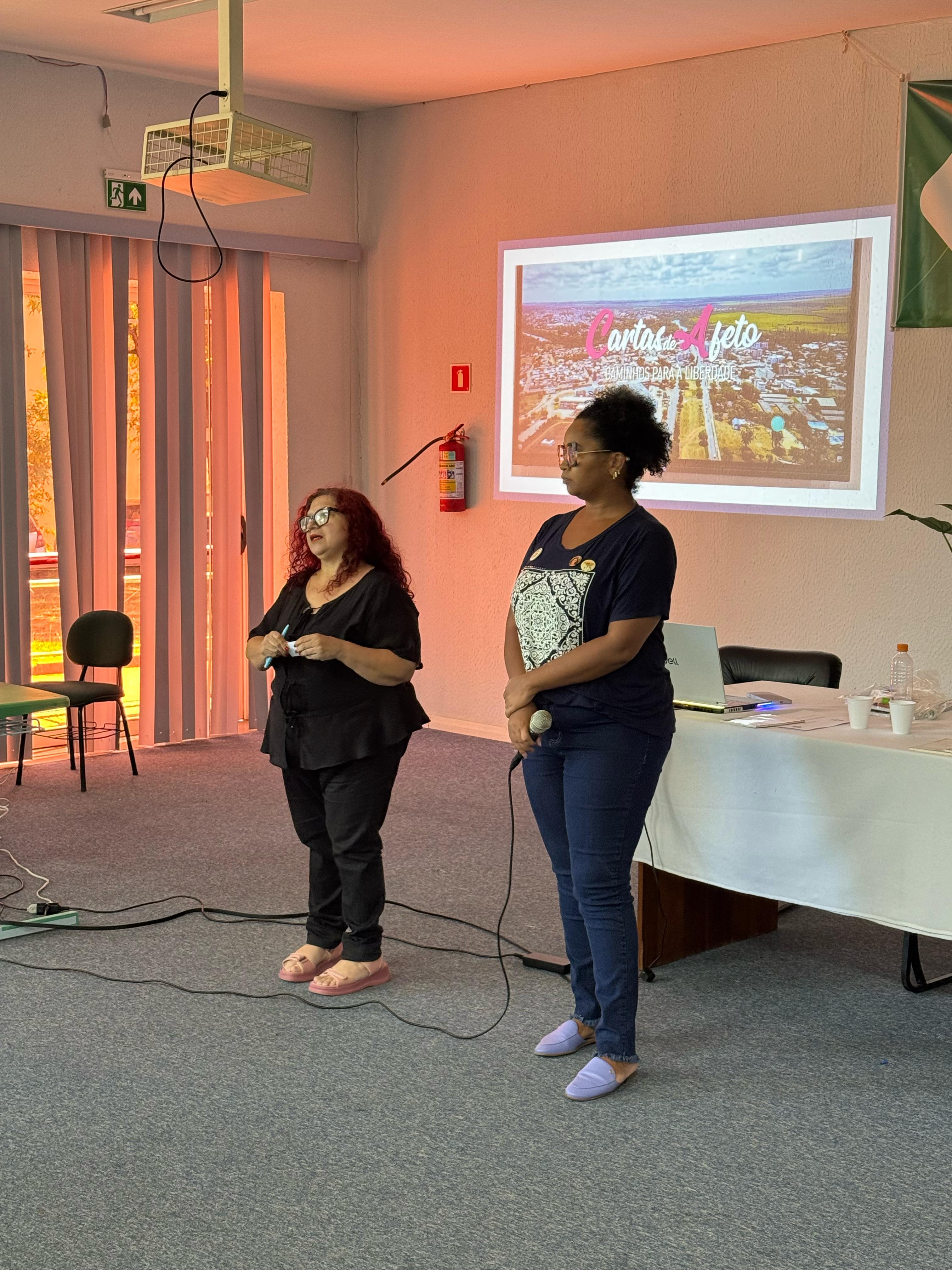 A formação foi conduzida por Ana Lucia Vargas e Merlen Alves, idealizadoras, juntamente com Paulo Amaral, do projeto Cartas de Afeto Caminhos para a Liberdade. Durante suas falas, elas compartilharam a potente experiência desse projeto, que envolveu detentas do Presídio de Alegrete na escrita de cartas como forma de expressão de sentimentos, afetos e vivências.