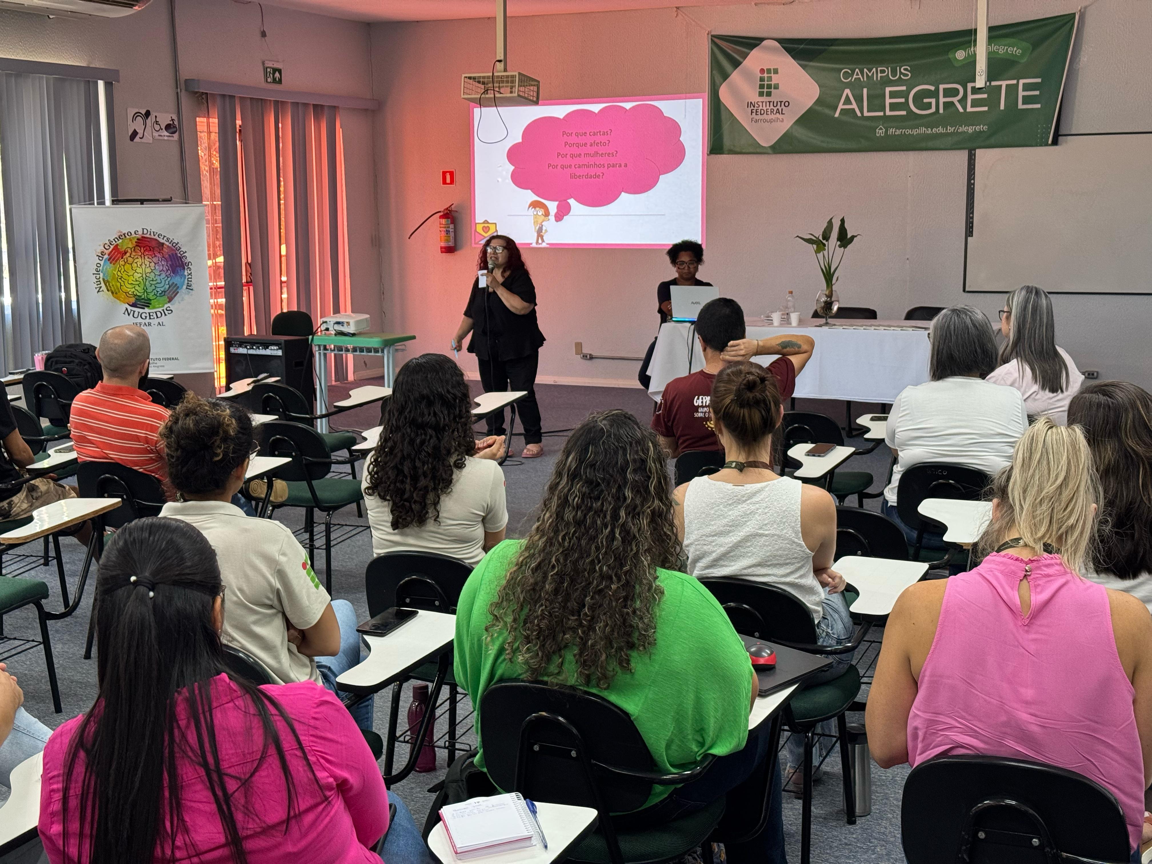 Na tarde da última quarta-feira (19), o Auditório do Instituto Federal Farroupilha – Campus Alegrete foi palco de uma formação pedagógica especial: "Por Elas e Com Elas: Educação como Ato de Resistência", promovida pelo Núcleo de Gênero e Diversidade Sexual (Nugedis), em alusão ao Dia Internacional da Mulher.