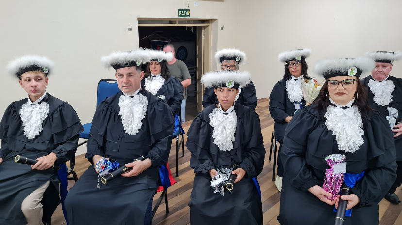 A oradora da turma, Andreia da Vides, transmitiu palavras de agradecimento e reconhecimento pela trajetória percorrida. O paraninfo, Arlei de Jesus, também se dirigiu aos concluintes, seguido das manifestações da coordenadora Cléia Tonin e da representante da Secretaria Municipal de Educação. Em seu pronunciamento final, o diretor Marcelo Bataglin destacou o significado da educação de jovens e adultos e o esforço dos estudantes, que, com dedicação e perseverança, alcançaram uma nova qualificação profissional.