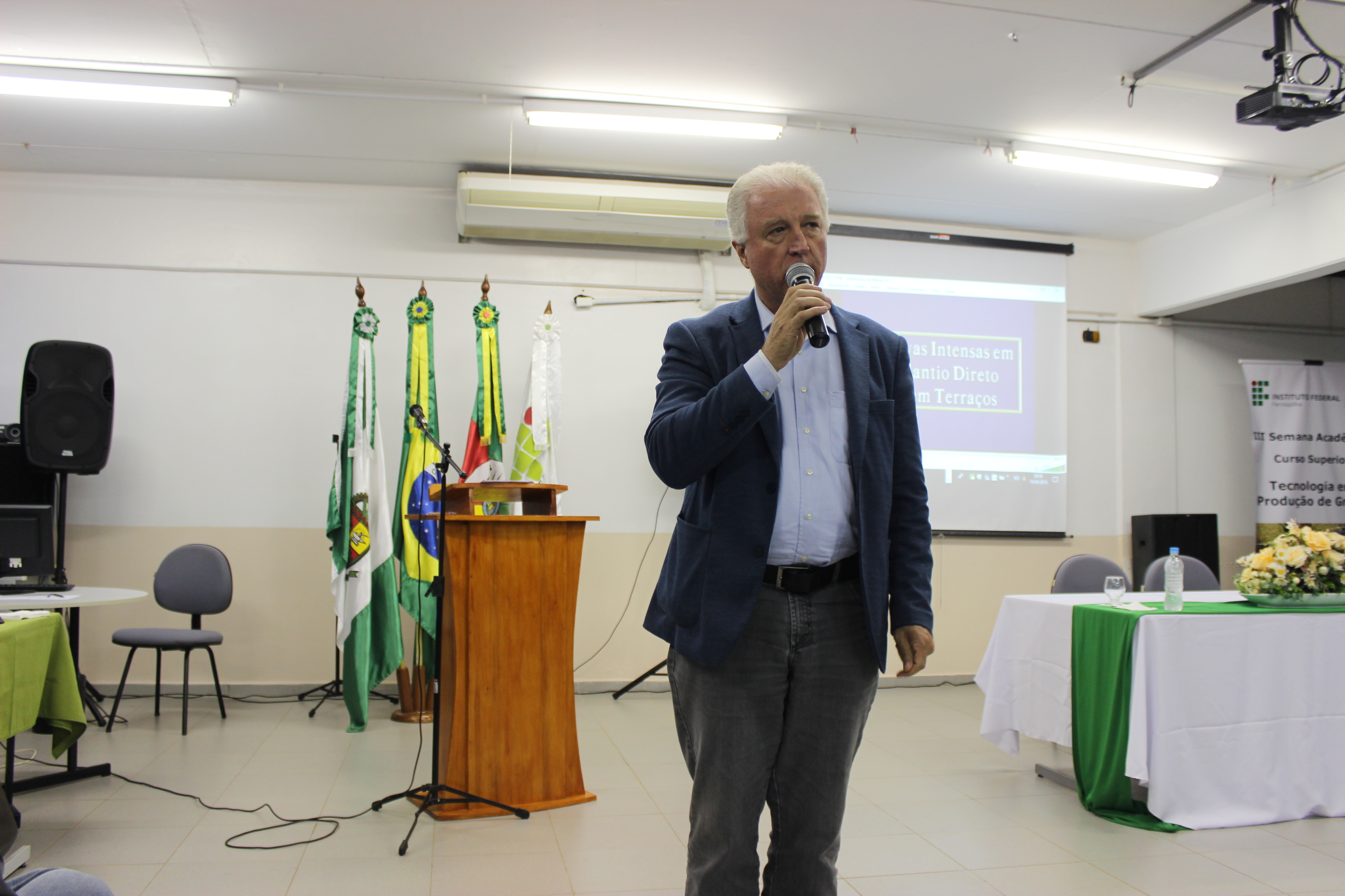 Na noite da sexta-feira, 18/05, os participantes da Semana Acadêmica do Curso de Tecnologia em Produção de Grãos do IFFar – Campus Panambi assistiram uma palestra sobre "manejo de fertilizantes", com Glademir Rodrigues Carpes, da Yara Brasil, e uma palestra com Jorge Lemainski, referência nacional em agricultura conservacionista. A agricultura conservacionista é um conjunto complexo de processos tecnológicos que objetiva preservar, melhorar e otimizar os recursos naturais, mediante o manejo integrado do solo, da água e da biodiversidade, compatibilizado com o uso de insumos externos (Rede de Agricultura Sustentável).