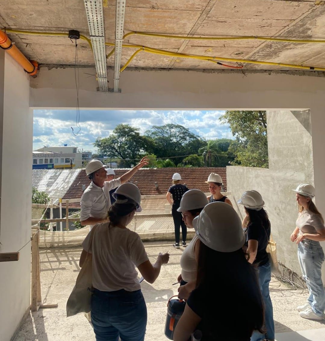 A fim de proporcionar mais vivências em canteiros de obras, os acadêmicos do curso de Bacharelado em Arquitetura e Urbanismo realizaram a visita técnica à obra do Edifício Tower Center, localizada na rua Santos Dumond, Centro, em Santa Rosa, no dia 25 de março de 2026.